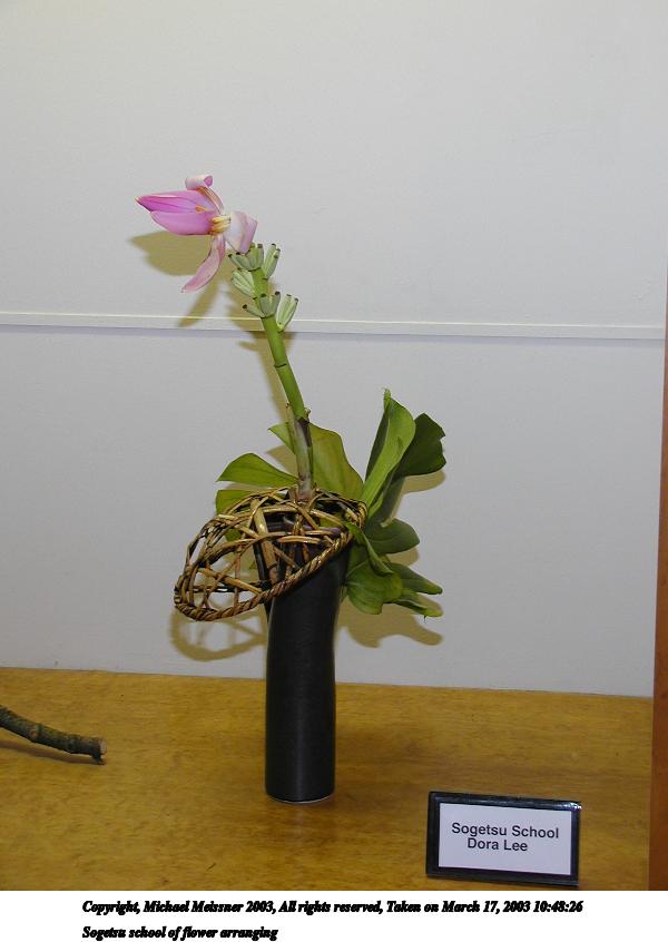 Picture #55: Sogetsu school of flower arranging #4 600x846, 55,759 bytes (55K), (html file) Copyright, Michael Meissner 2003, All rights reserved Olympus C-2100UZ camera f/2.8, ISO 100, 1/50 sec, 10.7mm, auto mode, SHQ, matrix metering 35mm equivalent focal length 59.0mm Taken by Michael Meissner on March 17, 2003 10:48:37 Last modified on March 28, 2003 at 16:02 |