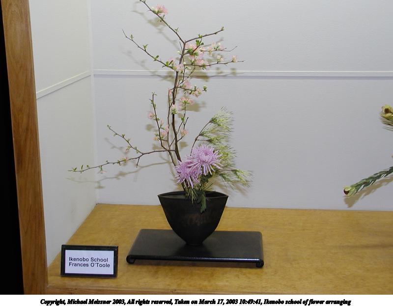 Picture #58: Ohara school of flower arranging #3 800x623, 52,050 bytes (51K), (html file) Copyright, Michael Meissner 2003, All rights reserved Olympus C-2100UZ camera f/2.8, ISO 100, 1/80 sec, 18.6mm, auto mode, SHQ, matrix metering 35mm equivalent focal length 103.0mm Taken by Michael Meissner on March 17, 2003 10:49:09 Last modified on March 28, 2003 at 16:02 |