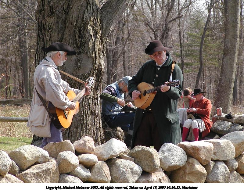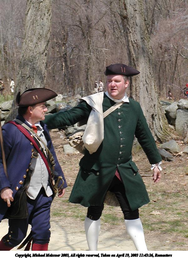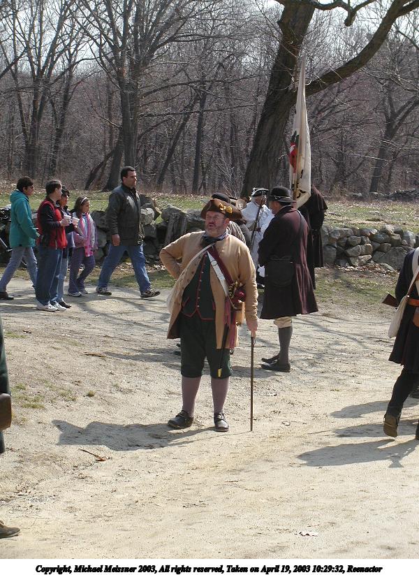 Picture #35: Reenactors #2 600x823, 135,468 bytes (133K), (html file) Copyright, Michael Meissner 2003, All rights reserved Olympus C-2100UZ camera f/5.6, ISO 100, 1/125 sec, 35.7mm, shutter priority, SHQ, matrix metering 35mm equivalent focal length 198.0mm Taken by Michael Meissner on April 19, 2003 11:03:07 Last modified on May 05, 2003 at 23:14 Shutter speed of 1/125 or 1/250 may indicate use of flash |