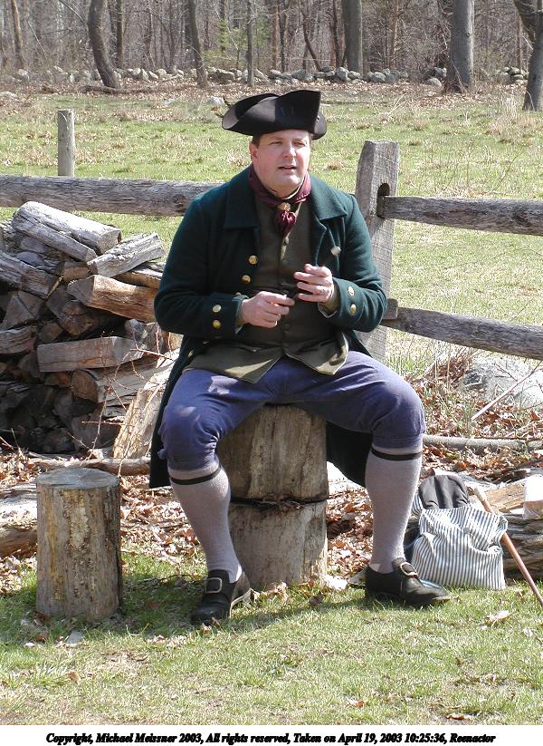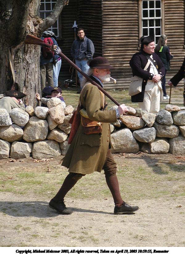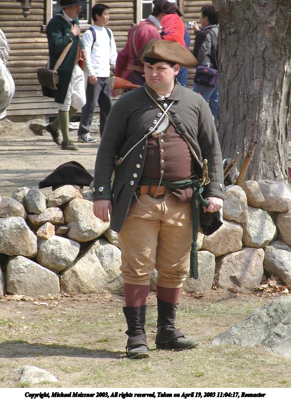 Picture #43: Reenactor #4 600x823, 149,421 bytes (146K), (html file) Copyright, Michael Meissner 2003, All rights reserved Olympus C-2100UZ camera f/4.5, ISO 100, 1/250 sec, 17.9mm, shutter priority, SHQ, matrix metering 35mm equivalent focal length 99.0mm Taken by Michael Meissner on April 19, 2003 10:29:32 Last modified on May 05, 2003 at 23:14 Shutter speed of 1/125 or 1/250 may indicate use of flash |