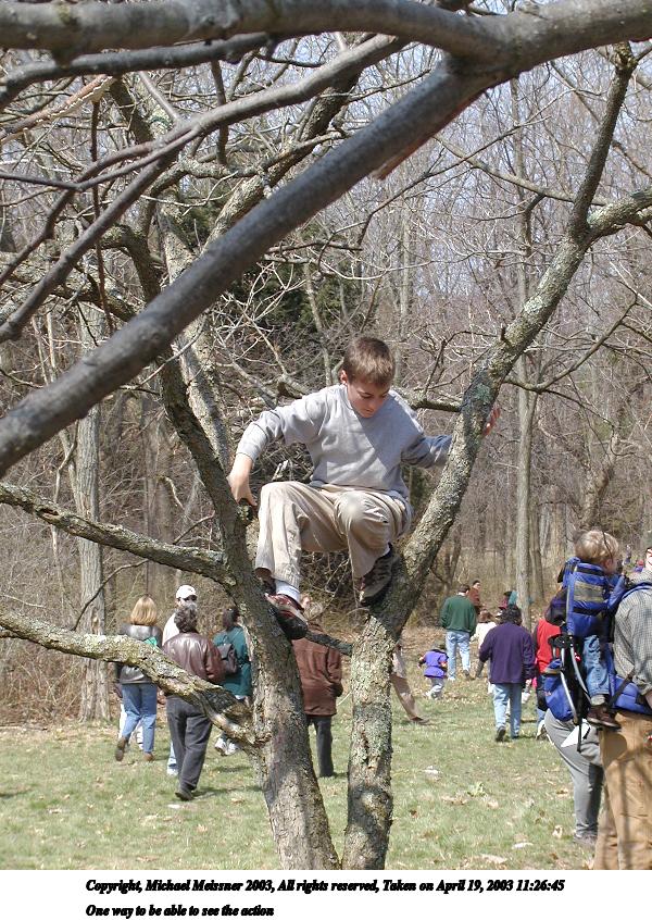 Picture #22: One way to be able to see the action 600x846, 167,882 bytes (164K), (html file) Copyright, Michael Meissner 2003, All rights reserved Olympus C-2100UZ camera f/4.5, ISO 100, 1/200 sec, 19.3mm, shutter priority, SHQ, matrix metering 35mm equivalent focal length 107.0mm Taken by Michael Meissner on April 19, 2003 11:26:45 Last modified on May 05, 2003 at 23:14 |
