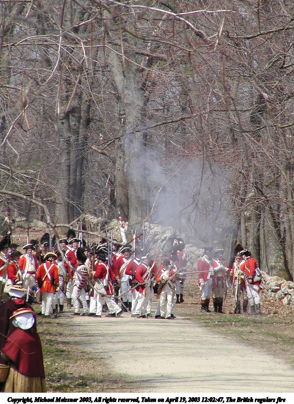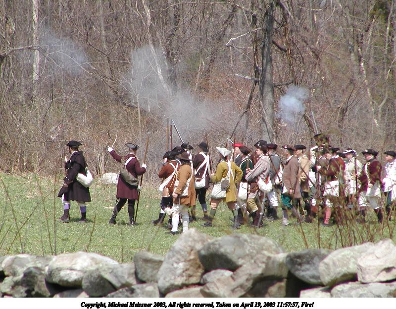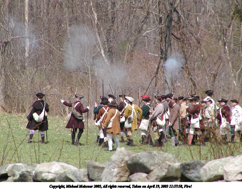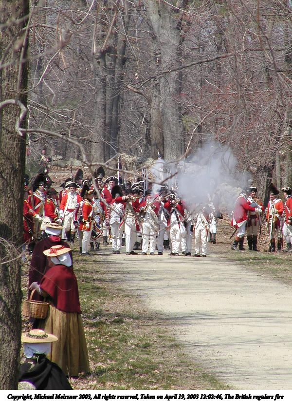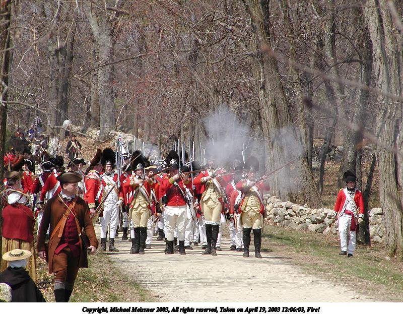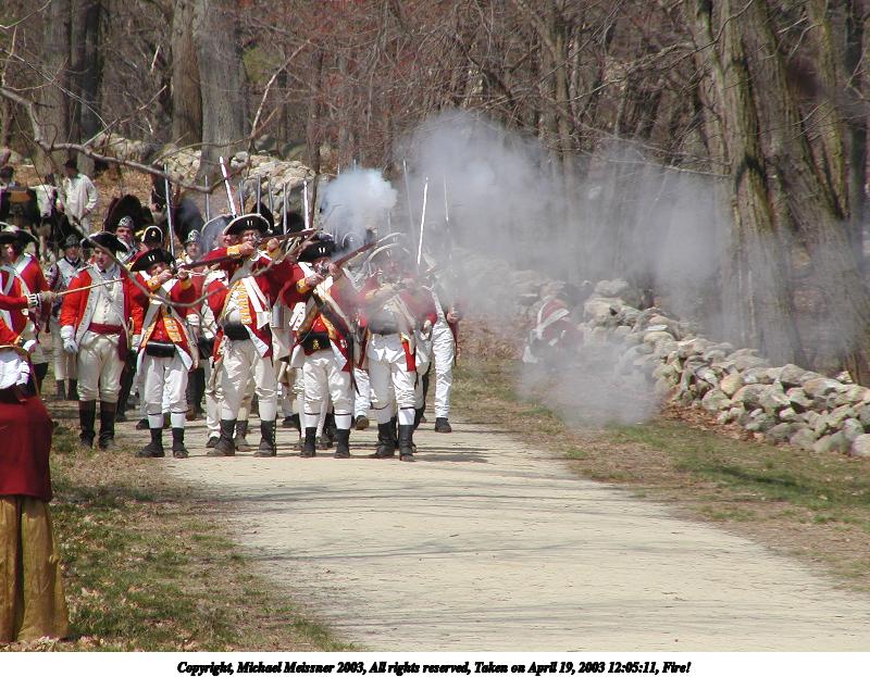 Picture #12: The British regulars fire 600x823, 149,281 bytes (146K), (html file) Copyright, Michael Meissner 2003, All rights reserved Olympus C-2100UZ camera f/5.6, ISO 100, 1/160 sec, 70.0mm, shutter priority, SHQ, matrix metering 35mm equivalent focal length 388.0mm Taken by Michael Meissner on April 19, 2003 12:02:46 Last modified on May 05, 2003 at 23:14 |