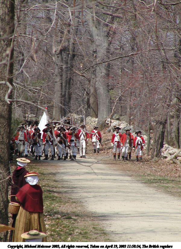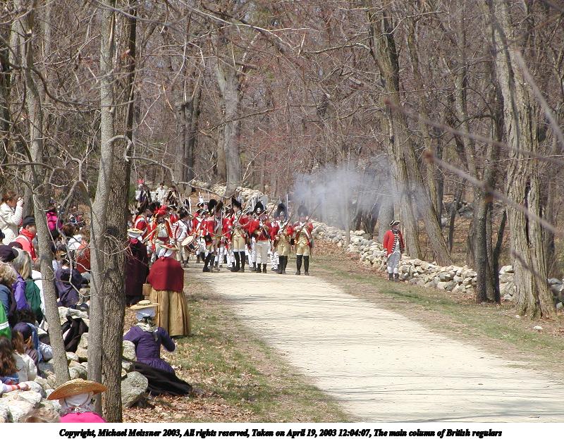 Picture #9: The main column of British regulars 800x623, 162,155 bytes (159K), (html file) Copyright, Michael Meissner 2003, All rights reserved Olympus C-2100UZ camera f/5.0, ISO 100, 1/160 sec, 34.1mm, shutter priority, SHQ, matrix metering 35mm equivalent focal length 189.0mm Taken by Michael Meissner on April 19, 2003 12:04:07 Last modified on May 05, 2003 at 23:14 |