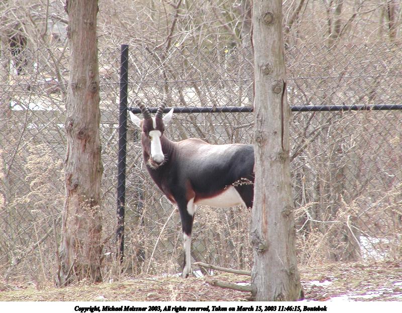 Picture #95: Bontebok 800x623, 140,364 bytes (138K), (html file) Copyright, Michael Meissner 2003, All rights reserved Olympus C-2100UZ camera f/5.6, ISO 100, 1/80 sec, 70.0mm, aperture priority, SHQ, matrix metering 35mm equivalent focal length 388.0mm Taken by Michael Meissner on March 15, 2003 11:46:15 Last modified on March 28, 2003 at 09:10 |