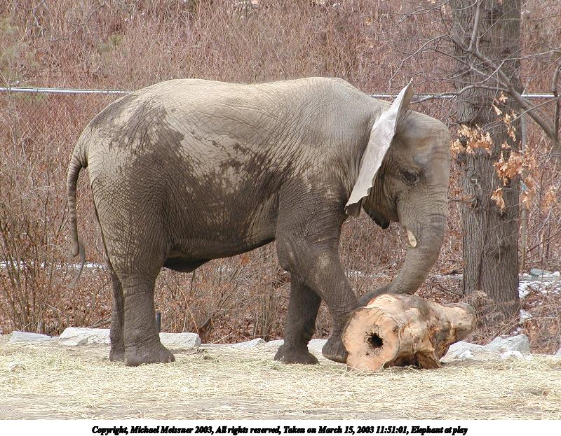 Picture #92: Elephant at play 800x623, 163,999 bytes (161K), (html file) Copyright, Michael Meissner 2003, All rights reserved Olympus C-2100UZ camera f/5.6, ISO 100, 1/100 sec, 37.4mm, aperture priority, SHQ, matrix metering 35mm equivalent focal length 208.0mm Taken by Michael Meissner on March 15, 2003 11:51:01 Last modified on March 28, 2003 at 09:10 |