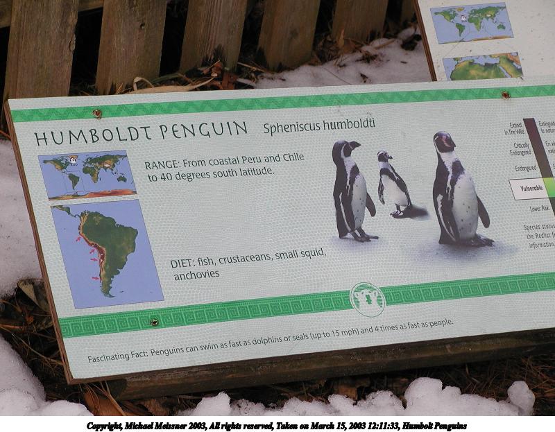 Picture #4: Humbolt Penguin 800x623, 75,770 bytes (74K), (html file) Copyright, Michael Meissner 2003, All rights reserved Olympus C-2100UZ camera f/4.5, ISO 100, 1/650 sec, 70.0mm, auto mode, SHQ, matrix metering 35mm equivalent focal length 388.0mm Taken by Michael Meissner on March 15, 2003 13:42:42 Last modified on March 28, 2003 at 09:10 |
