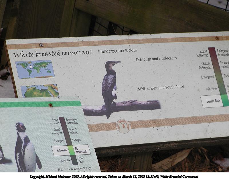 Picture #82: White Breasted Cormorant 800x623, 95,142 bytes (93K), (html file) Copyright, Michael Meissner 2003, All rights reserved Olympus C-2100UZ camera f/2.8, ISO 100, 1/400 sec, 48.3mm, auto mode, SHQ, matrix metering 35mm equivalent focal length 268.0mm Taken by Michael Meissner on March 15, 2003 12:10:57 Last modified on March 28, 2003 at 09:10 |