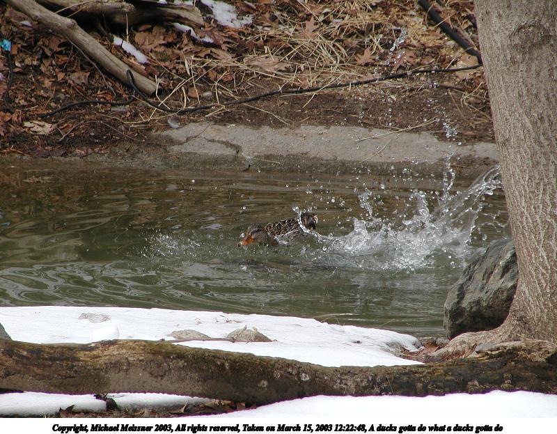 Picture #50: A ducks gotta do what a ducks gotta do 800x623, 131,889 bytes (129K), (html file) Copyright, Michael Meissner 2003, All rights reserved Olympus C-2100UZ camera f/4.0, ISO 100, 1/500 sec, 48.3mm, auto mode, SHQ, matrix metering 35mm equivalent focal length 268.0mm Taken by Michael Meissner on March 15, 2003 12:22:48 Last modified on March 28, 2003 at 09:10 |