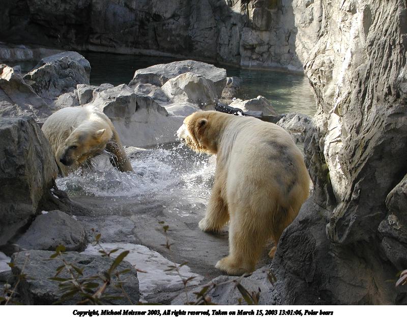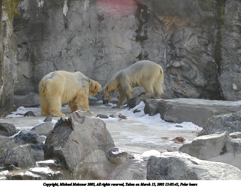 Picture #31: Polar bears #2 800x623, 99,872 bytes (98K), (html file) Copyright, Michael Meissner 2003, All rights reserved Olympus C-2100UZ camera f/3.2, ISO 100, 1/500 sec, 20.0mm, auto mode, SHQ, matrix metering 35mm equivalent focal length 111.0mm Taken by Michael Meissner on March 15, 2003 13:05:41 Last modified on March 28, 2003 at 09:10 |