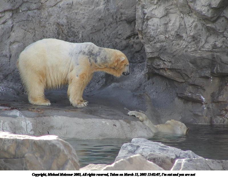 Picture #37: Come on in, the water is nice! 800x623, 87,059 bytes (86K), (html file) Copyright, Michael Meissner 2003, All rights reserved Olympus C-2100UZ camera f/2.8, ISO 100, 1/250 sec, 45.8mm, auto mode, SHQ, matrix metering 35mm equivalent focal length 254.0mm Taken by Michael Meissner on March 15, 2003 13:02:41 Last modified on March 28, 2003 at 09:10 Shutter speed of 1/125 or 1/250 may indicate use of flash |