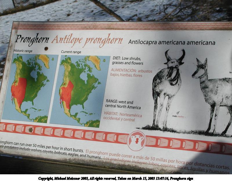 Picture #28: Pronghorn sign 800x623, 95,352 bytes (94K), (html file) Copyright, Michael Meissner 2003, All rights reserved Olympus C-2100UZ camera f/8.0, ISO 100, 1/800 sec, 15.2mm, auto mode, SHQ, matrix metering 35mm equivalent focal length 84.0mm Taken by Michael Meissner on March 15, 2003 13:07:16 Last modified on March 28, 2003 at 09:10 |
