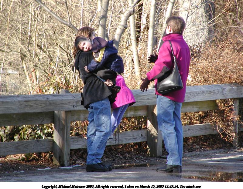 Picture #5: Too much zoo 800x623, 143,746 bytes (141K), (html file) Copyright, Michael Meissner 2003, All rights reserved Olympus C-2100UZ camera f/3.2, ISO 100, 1/400 sec, 57.3mm, auto mode, SHQ, matrix metering 35mm equivalent focal length 318.0mm Taken by Michael Meissner on March 15, 2003 13:39:54 Last modified on March 28, 2003 at 09:10 |