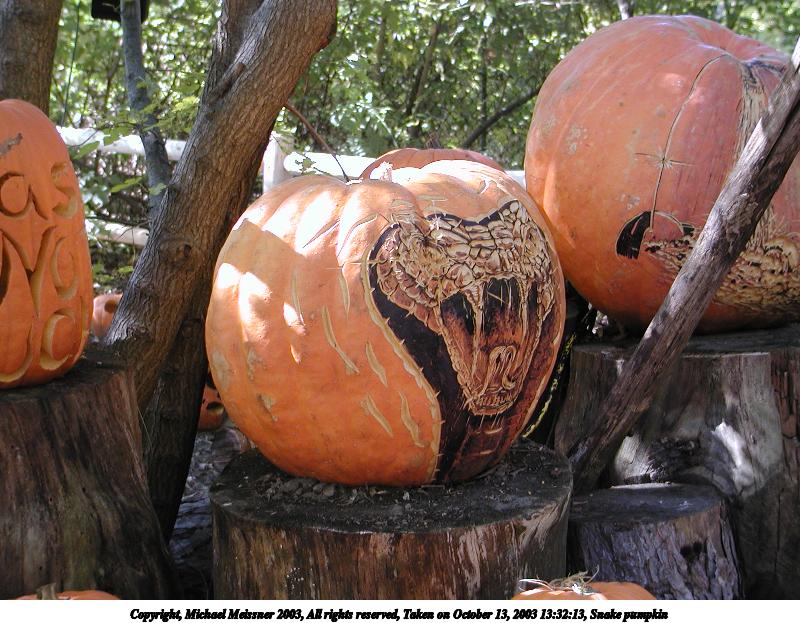 Picture #2: Snake pumpkin 800x623, 112,471 bytes (110K), (html file) Copyright, Michael Meissner 2003, All rights reserved Olympus C-2100UZ camera f/2.8, ISO 100, 1/50 sec, 15.7mm, auto mode, SHQ, matrix metering 35mm equivalent focal length 87.0mm Taken by Michael Meissner on October 13, 2003 13:32:13 Last modified on October 20, 2003 at 12:20 |