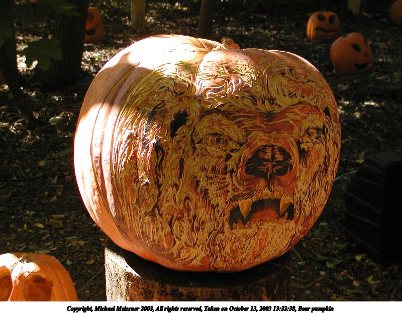 Picture #5: Bear pumpkin 800x623, 106,389 bytes (104K), (html file) Copyright, Michael Meissner 2003, All rights reserved Olympus C-2100UZ camera f/2.8, ISO 100, 1/200 sec, 14.7mm, auto mode, SHQ, matrix metering 35mm equivalent focal length 82.0mm Taken by Michael Meissner on October 13, 2003 13:32:38 Last modified on October 20, 2003 at 12:21 |