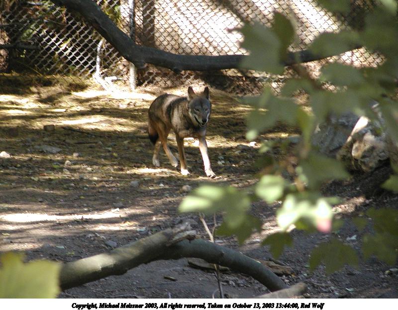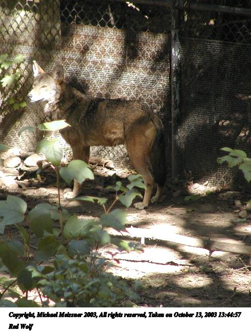 Picture #2: Red Wolf #2 800x623, 122,191 bytes (120K), (html file) Copyright, Michael Meissner 2003, All rights reserved Olympus C-2100UZ camera f/3.2, ISO 200, 1/250 sec, 57.3mm, auto mode, SHQ, matrix metering 35mm equivalent focal length 318.0mm Taken by Michael Meissner on October 13, 2003 13:44:41 Last modified on October 20, 2003 at 12:35 Shutter speed of 1/125 or 1/250 may indicate use of flash |