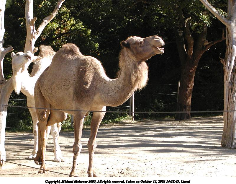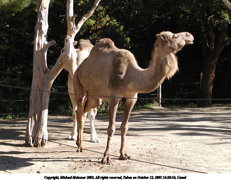 Picture #2: Camel #2 800x623, 141,343 bytes (139K), (html file) Copyright, Michael Meissner 2003, All rights reserved Olympus C-2100UZ camera f/5.0, ISO 200, 1/500 sec, 19.3mm, auto mode, SHQ, matrix metering 35mm equivalent focal length 107.0mm Taken by Michael Meissner on October 13, 2003 14:27:43 Last modified on October 20, 2003 at 12:39 |