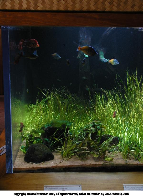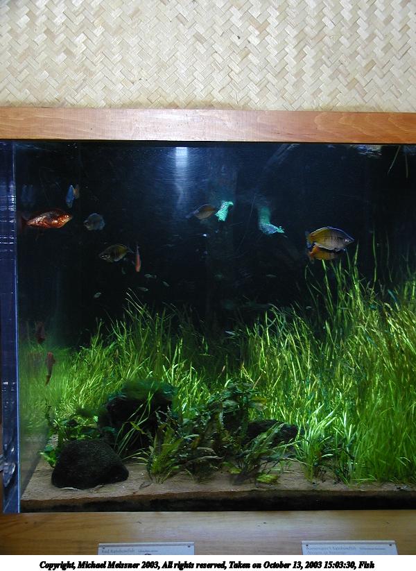 Picture #3: Fish #3 600x823, 96,528 bytes (95K), (html file) Copyright, Michael Meissner 2003, All rights reserved Olympus C-2100UZ camera f/2.8, ISO 100, 1/40 sec, 9.4mm, auto mode, SHQ, matrix metering 35mm equivalent focal length 52.0mm Taken by Michael Meissner on October 13, 2003 15:03:30 Last modified on October 20, 2003 at 12:48 |