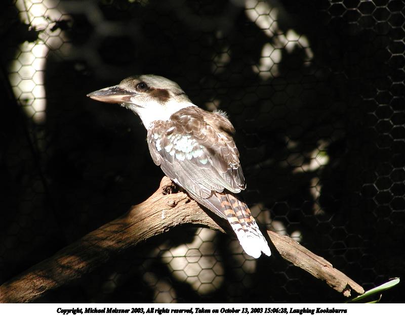 Picture #1: Laughing Kookaburra 800x623, 62,275 bytes (61K), (html file) Copyright, Michael Meissner 2003, All rights reserved Olympus C-2100UZ camera f/2.8, ISO 100, 1/400 sec, 43.5mm, auto mode, SHQ, matrix metering 35mm equivalent focal length 241.0mm Taken by Michael Meissner on October 13, 2003 15:06:28 Last modified on October 21, 2003 at 08:53 |