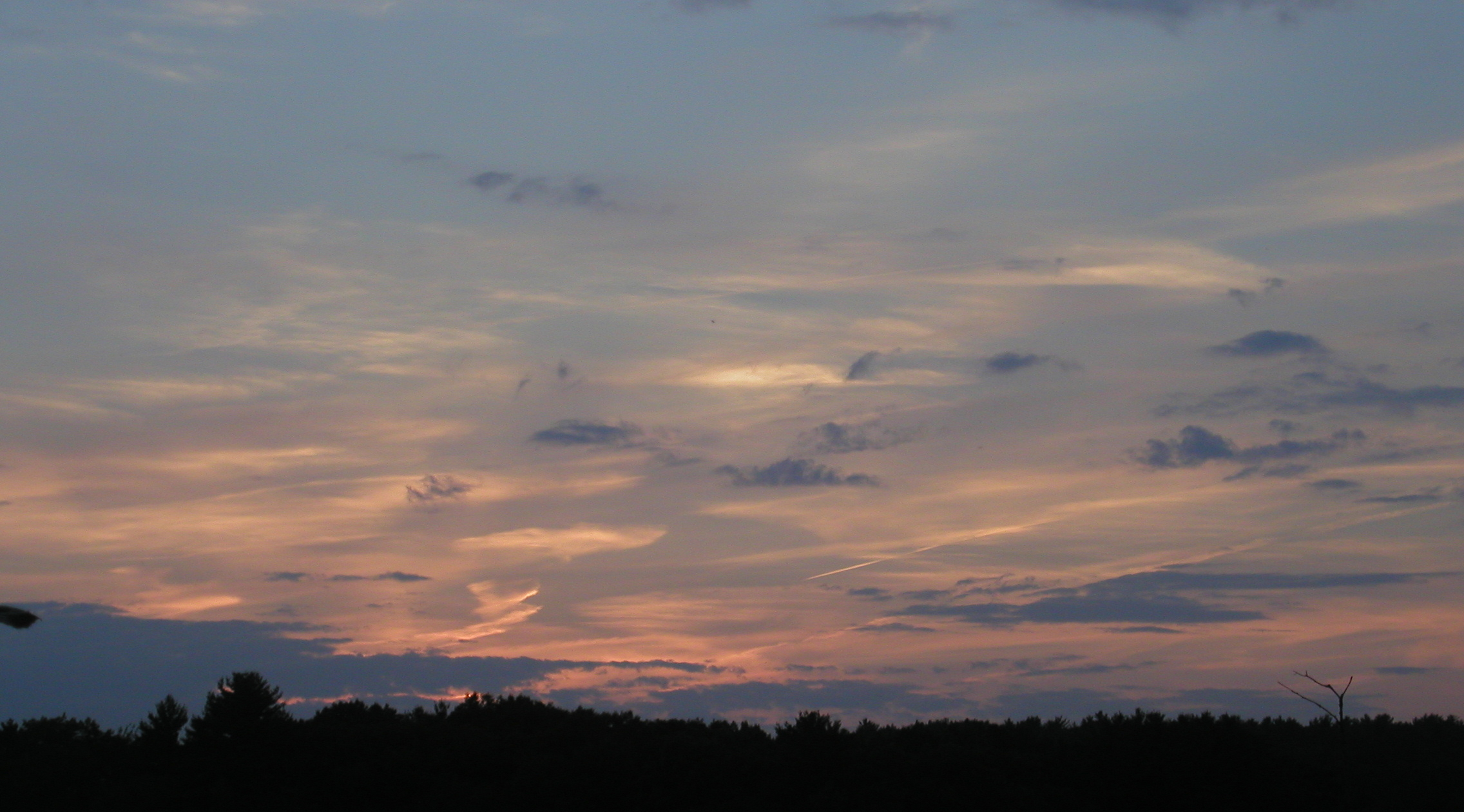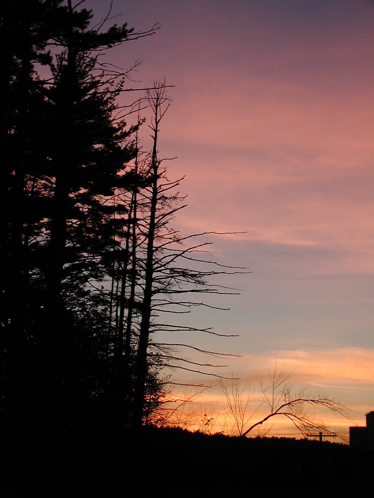 Picture #21: Sunset and trees Small: 600x823, 91,833 bytes (90K), (html file) Large: 1200x1600, 1,136,969 bytes (1.1M), (html file) Copyright, Michael Meissner 2004, All rights reserved Olympus C-2100UZ camera f/2.8, ISO 100, 1/250 sec, 18.6mm, auto mode, SHQ, cloudy, matrix metering 35mm equivalent focal length 103.0mm Taken by Michael Meissner on August 21, 2004 19:36:53 Last modified on September 07, 2004 at 21:19 Shutter speed of 1/125 or 1/250 may indicate use of flash |
