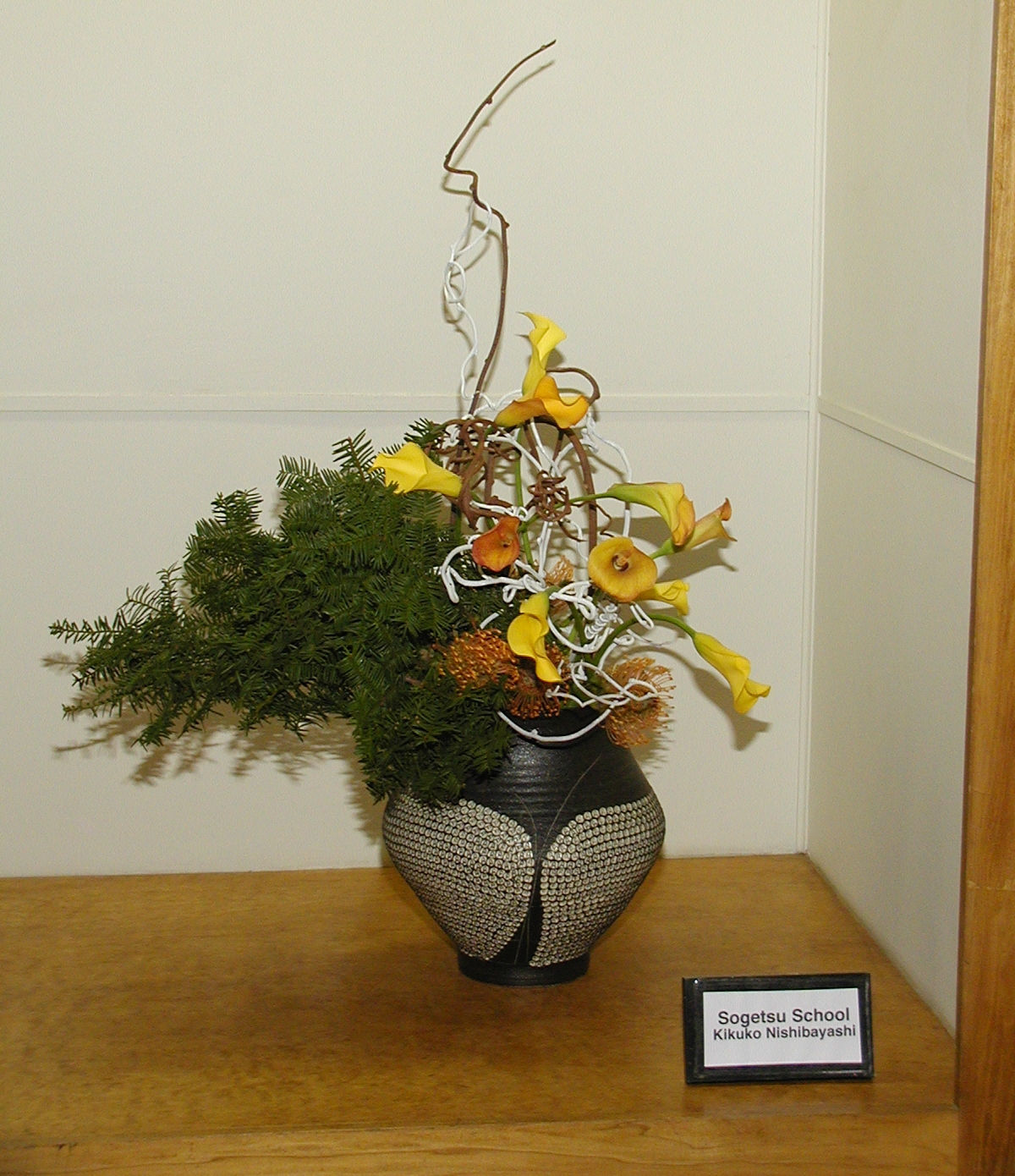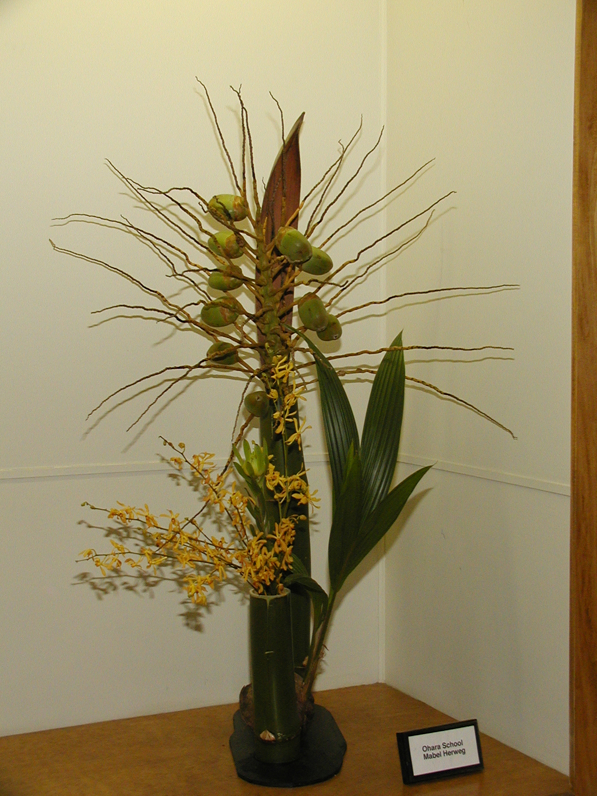 Picture #6: Ikenobo school - Carolyn Flanagan Small: 600x846, 65,636 bytes (65K), (html file) Large: 1200x1600, 1,157,477 bytes (1.1M), (html file) Copyright, Michael Meissner 2004, All rights reserved Olympus C-2100UZ camera f/2.8, ISO 200, 1/250 sec, 14.3mm, shutter priority, SHQ, cloudy, matrix metering 35mm equivalent focal length 79.0mm Taken by Michael Meissner on March 13, 2004 20:08:27 Last modified on March 28, 2004 at 21:29 Shutter speed of 1/125 or 1/250 may indicate use of flash |