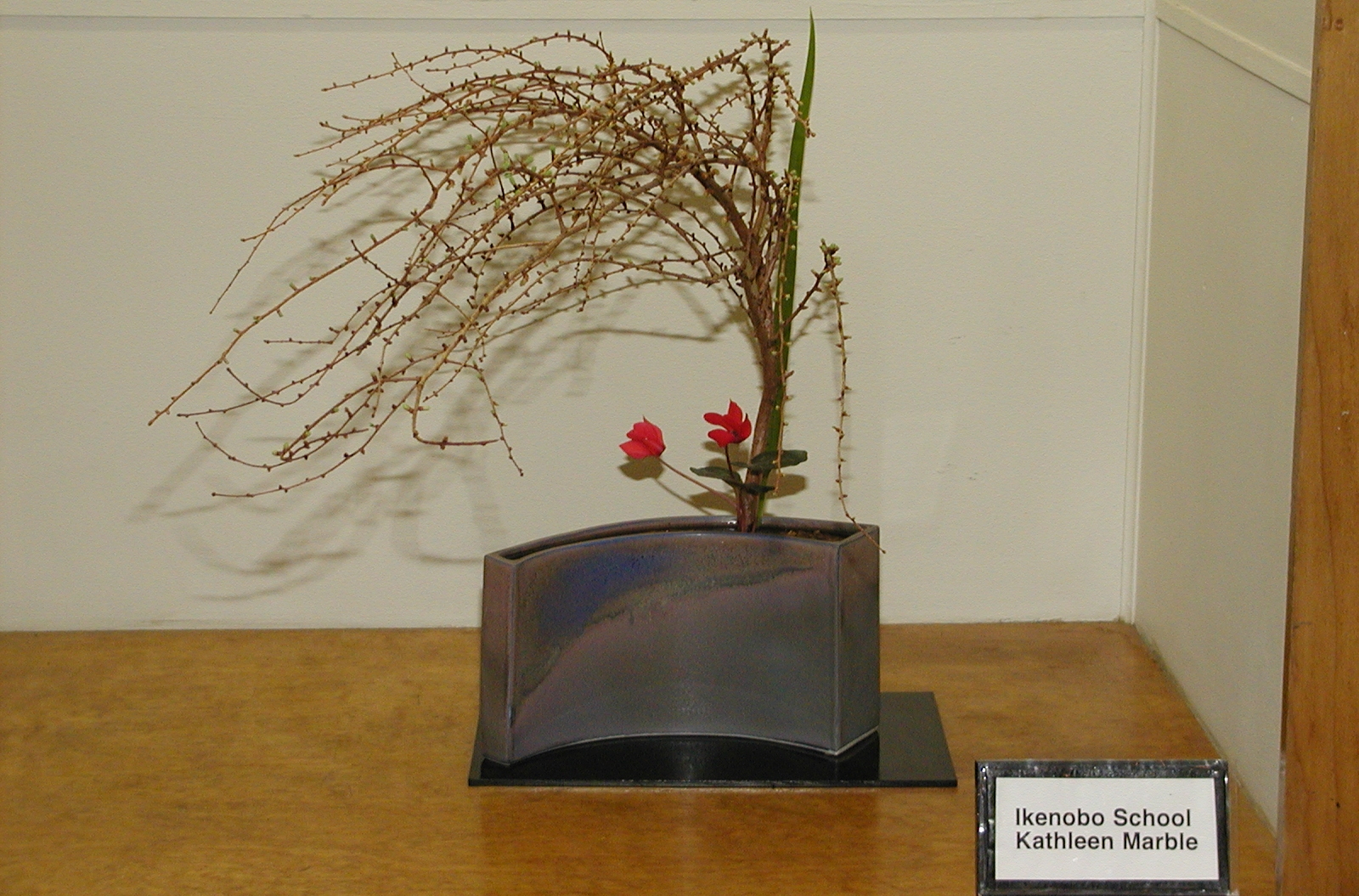 Picture #12: Ikenobo school - Kathleen Marble Small: 800x551, 63,213 bytes (62K), (html file) Large: 1600x1055, 1,088,797 bytes (1.0M), (html file) Copyright, Michael Meissner 2004, All rights reserved Olympus C-2100UZ camera f/2.8, ISO 200, 1/250 sec, 15.2mm, shutter priority, SHQ, cloudy, matrix metering 35mm equivalent focal length 84.0mm Taken by Michael Meissner on March 13, 2004 19:59:01 Last modified on March 28, 2004 at 21:22 Shutter speed of 1/125 or 1/250 may indicate use of flash |