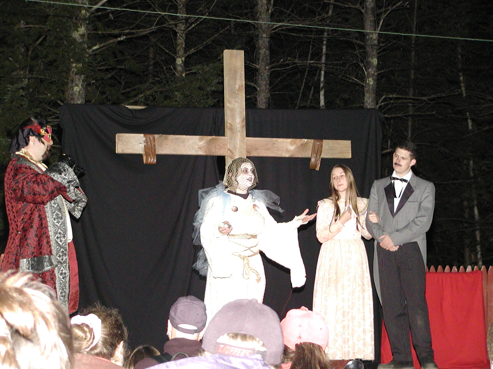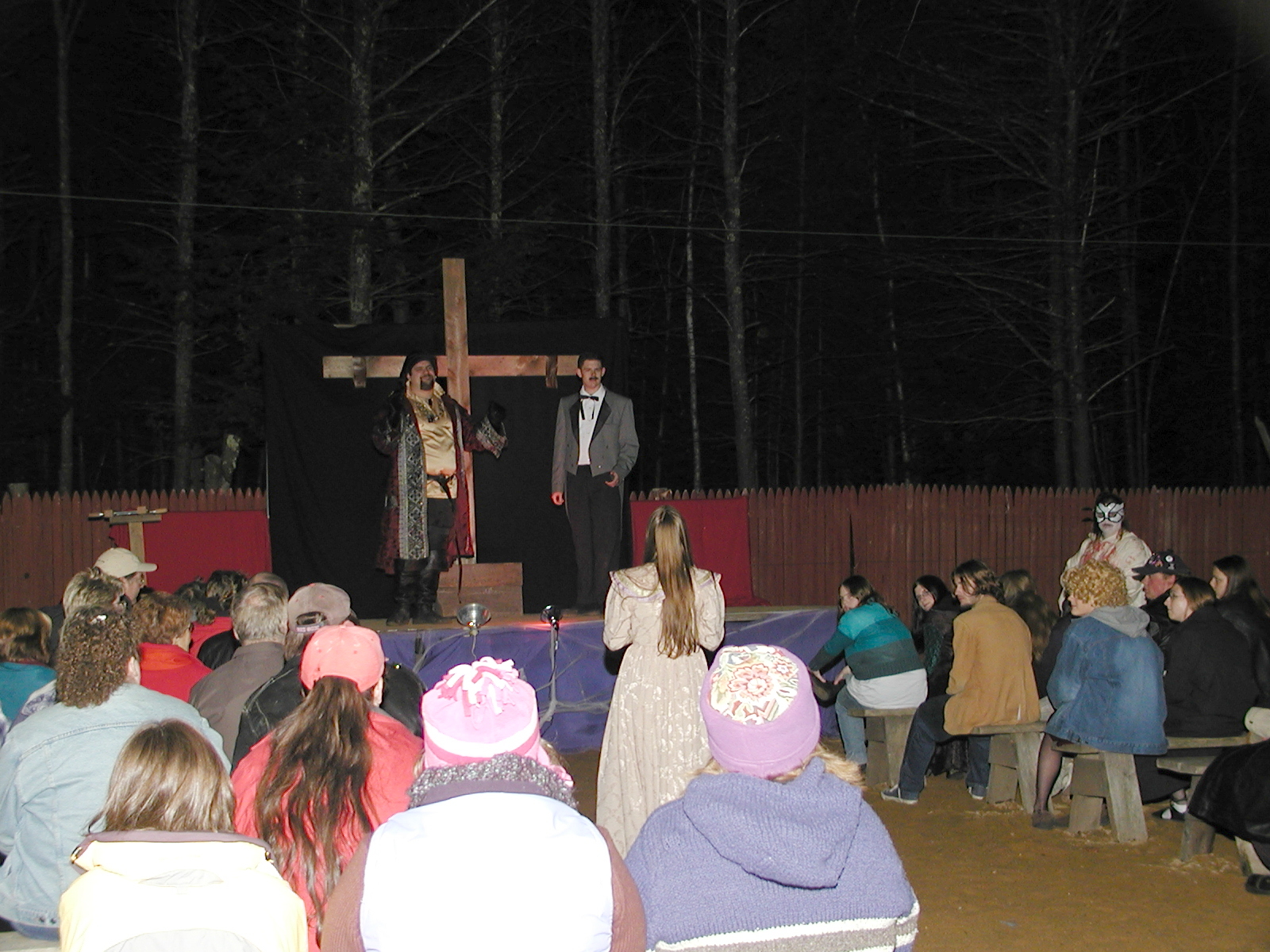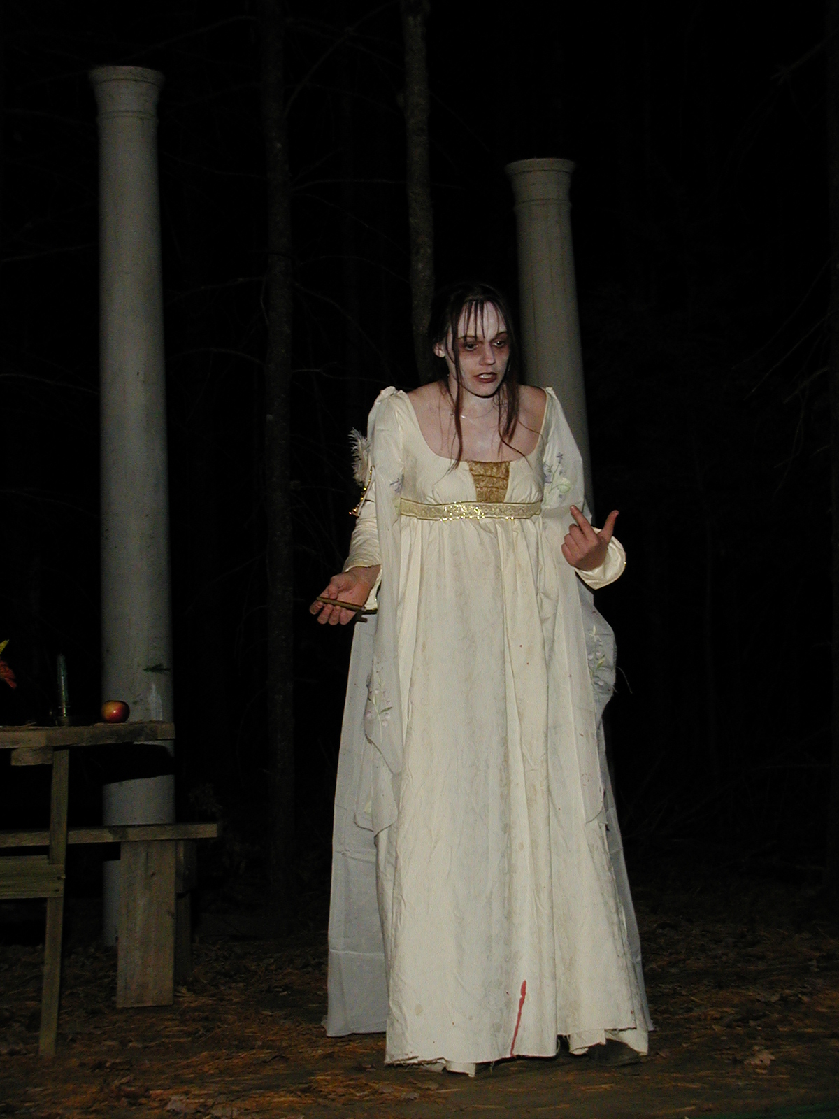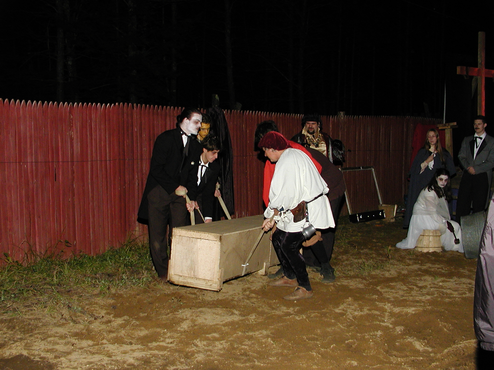 Picture #15: Edgar Allan Poe's Forest of Fright Small: 800x623, 105,100 bytes (103K), (html file) Large: 1600x1200, 1,292,976 bytes (1.2M), (html file) Copyright, Michael Meissner 2004, All rights reserved Olympus C-2100UZ camera f/2.8, ISO 100, 1/2 sec, 7.0mm, auto mode, SHQ, cloudy, matrix metering 35mm equivalent focal length 39.0mm Extra equipment used: Promaster 5750DX flash Taken by Michael Meissner on October 23, 2004 19:15:11 Last modified on November 03, 2004 at 13:29 |