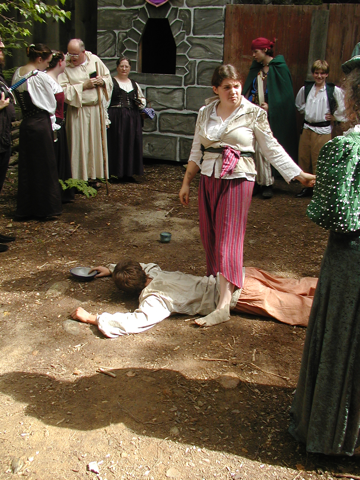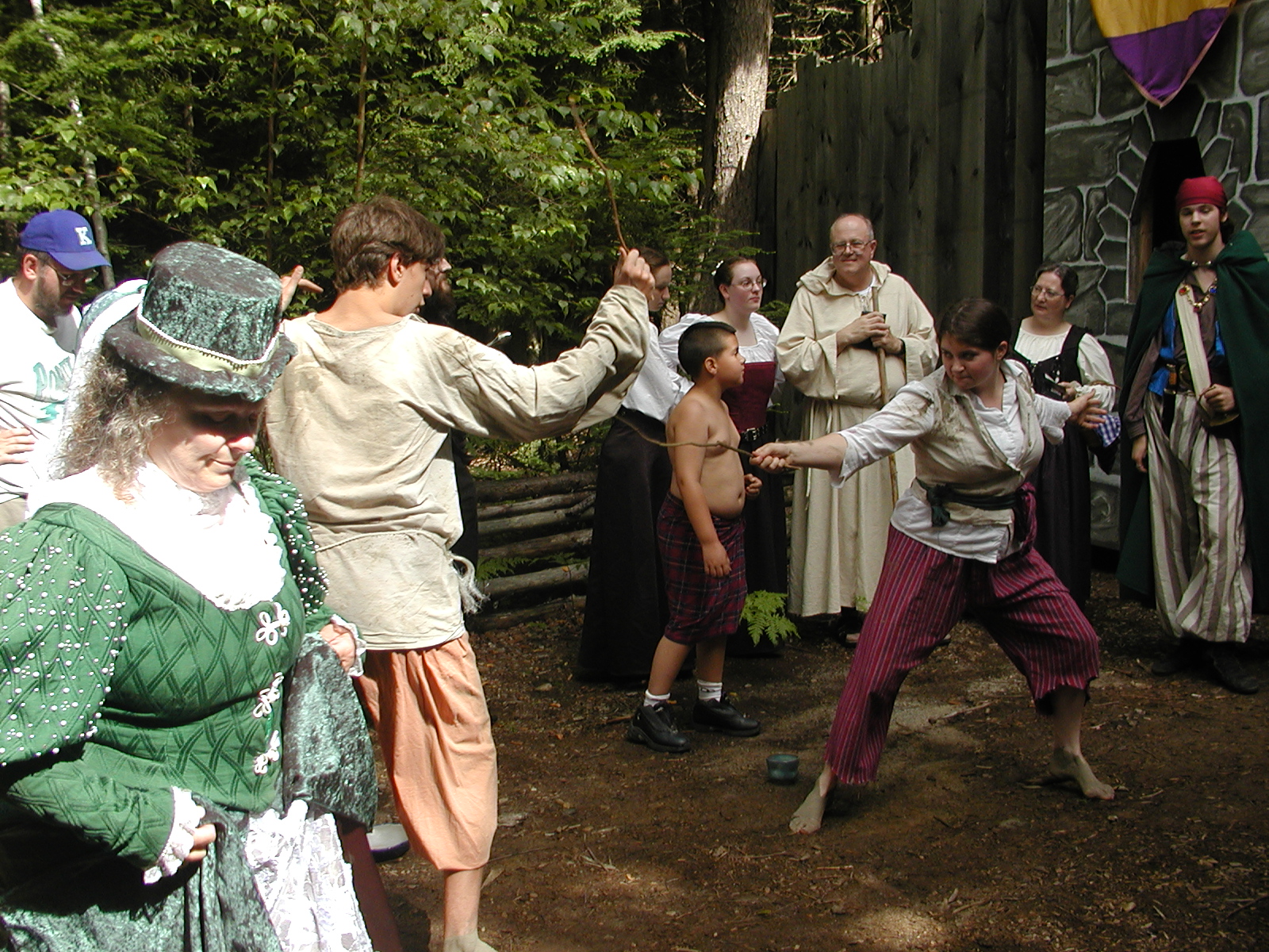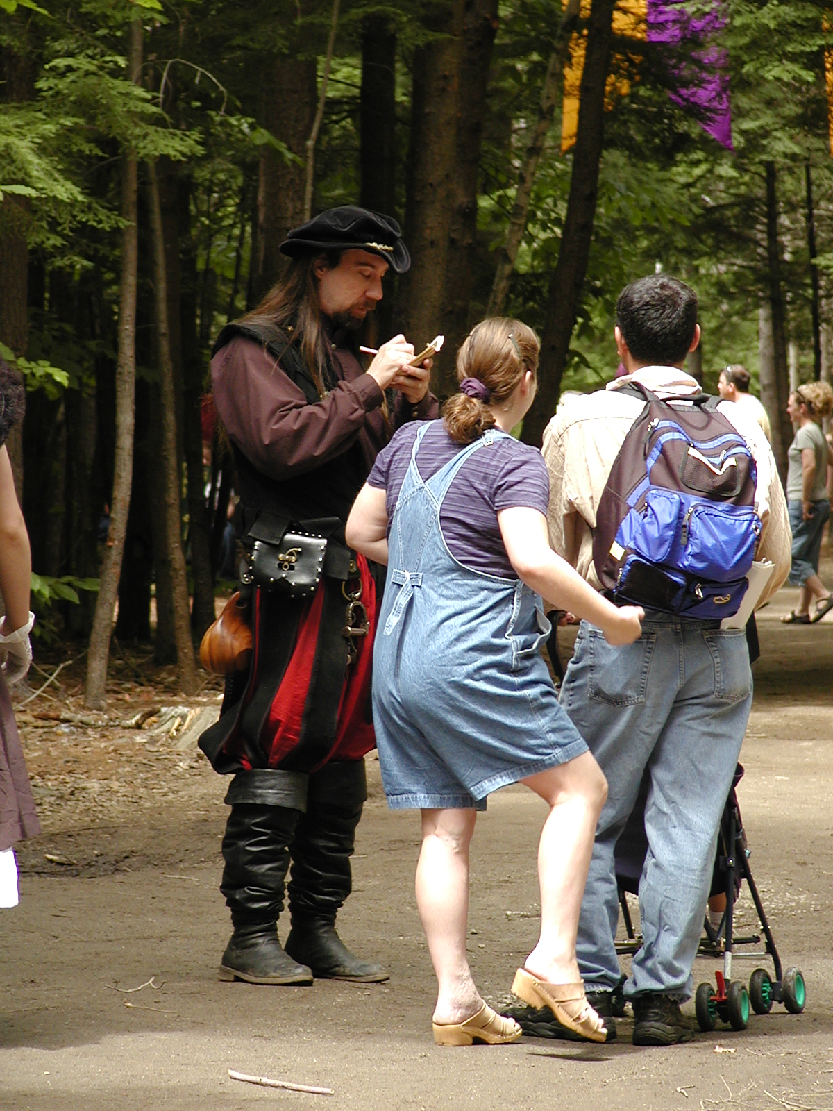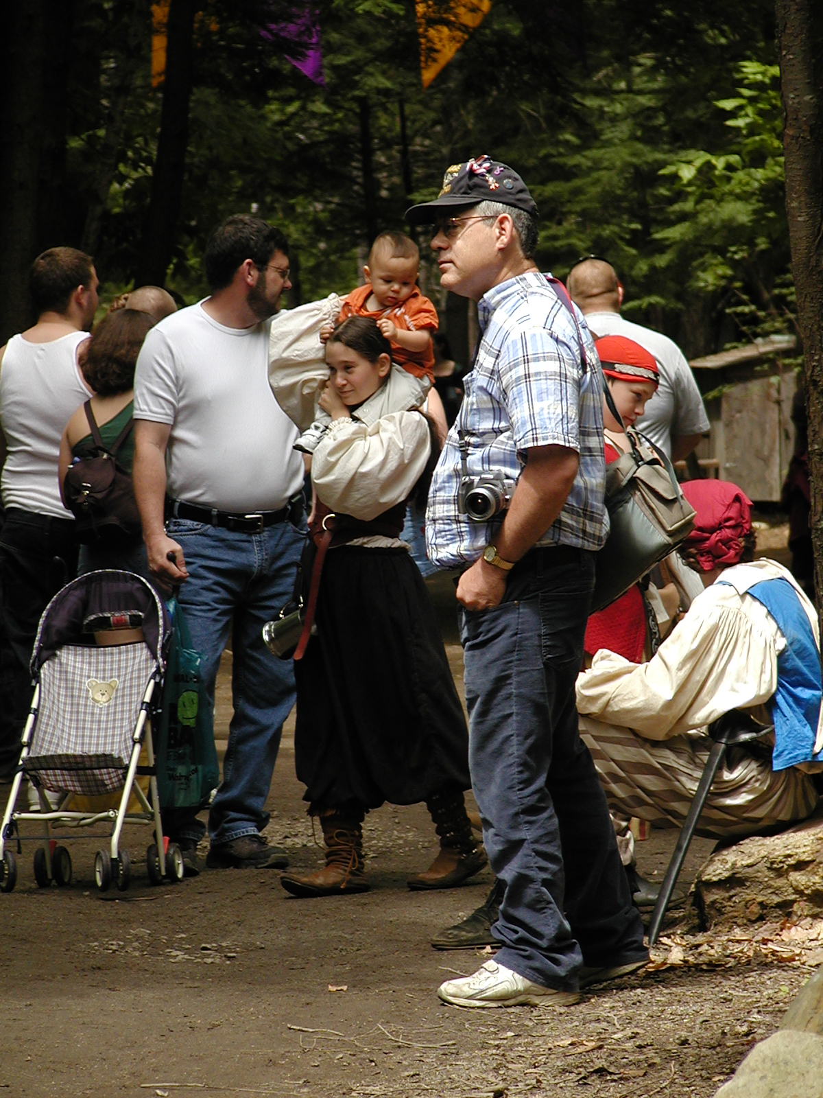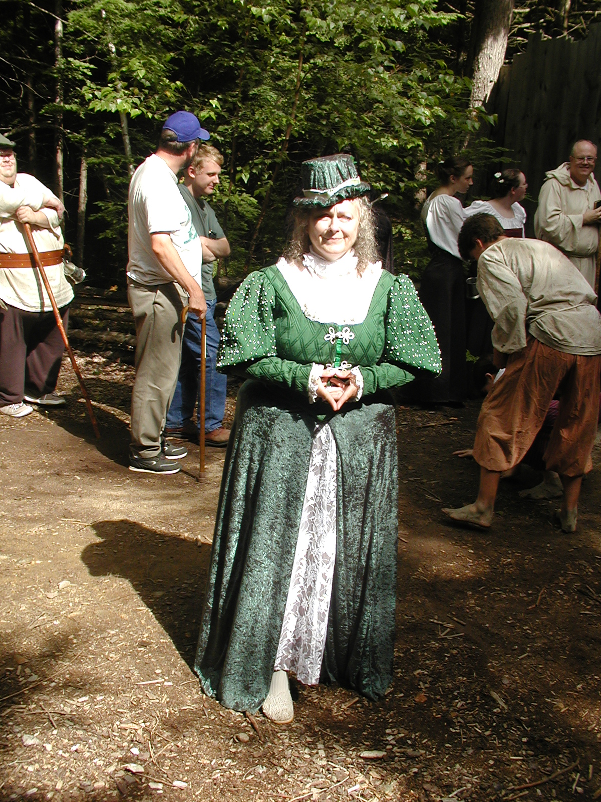 Picture #8: Faire folk Small: 600x823, 87,315 bytes (86K), (html file) Large: 1200x1600, 1,169,592 bytes (1.1M), (html file) Copyright, Michael Meissner 2004, All rights reserved Olympus C-2100UZ camera f/2.8, ISO 100, 1/160 sec, 14.7mm, auto mode, SHQ, sunny, matrix metering 35mm equivalent focal length 82.0mm Extra equipment used: Promaster 5750DX flash Taken by Michael Meissner on July 11, 2004 10:22:57 Last modified on July 14, 2004 at 23:12 This is picture MERF-2004-CAST-02. |