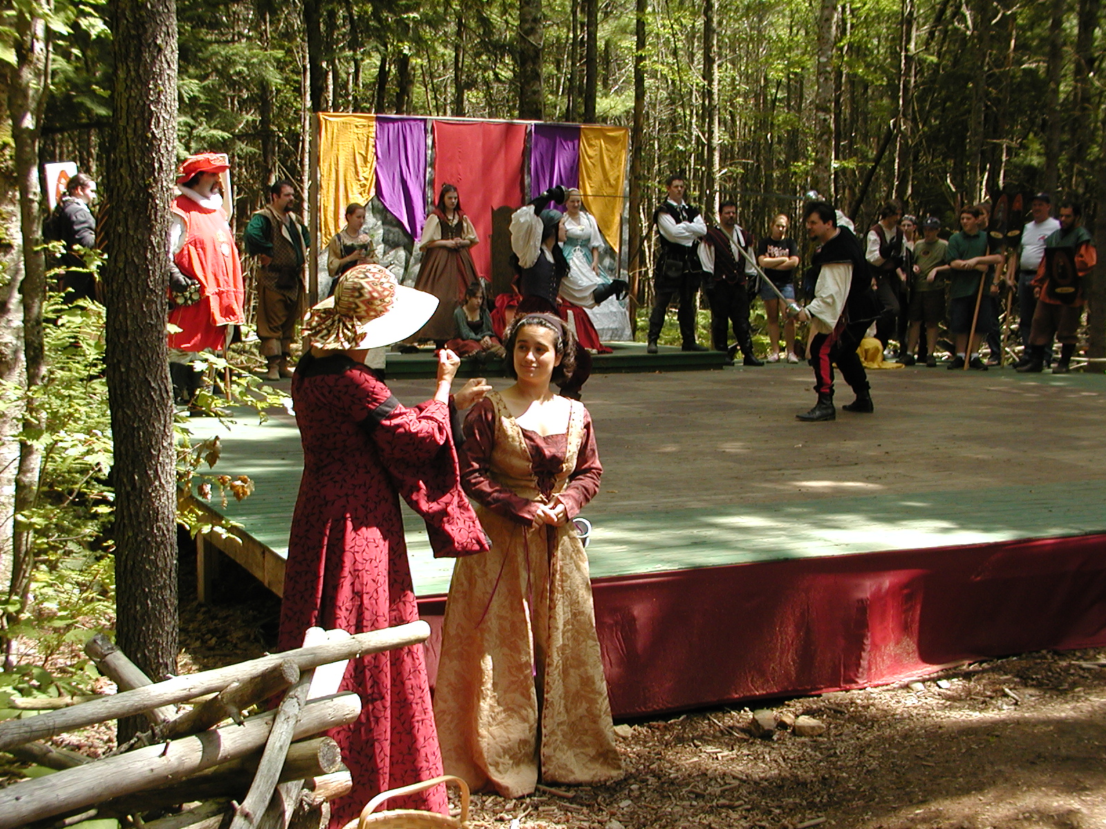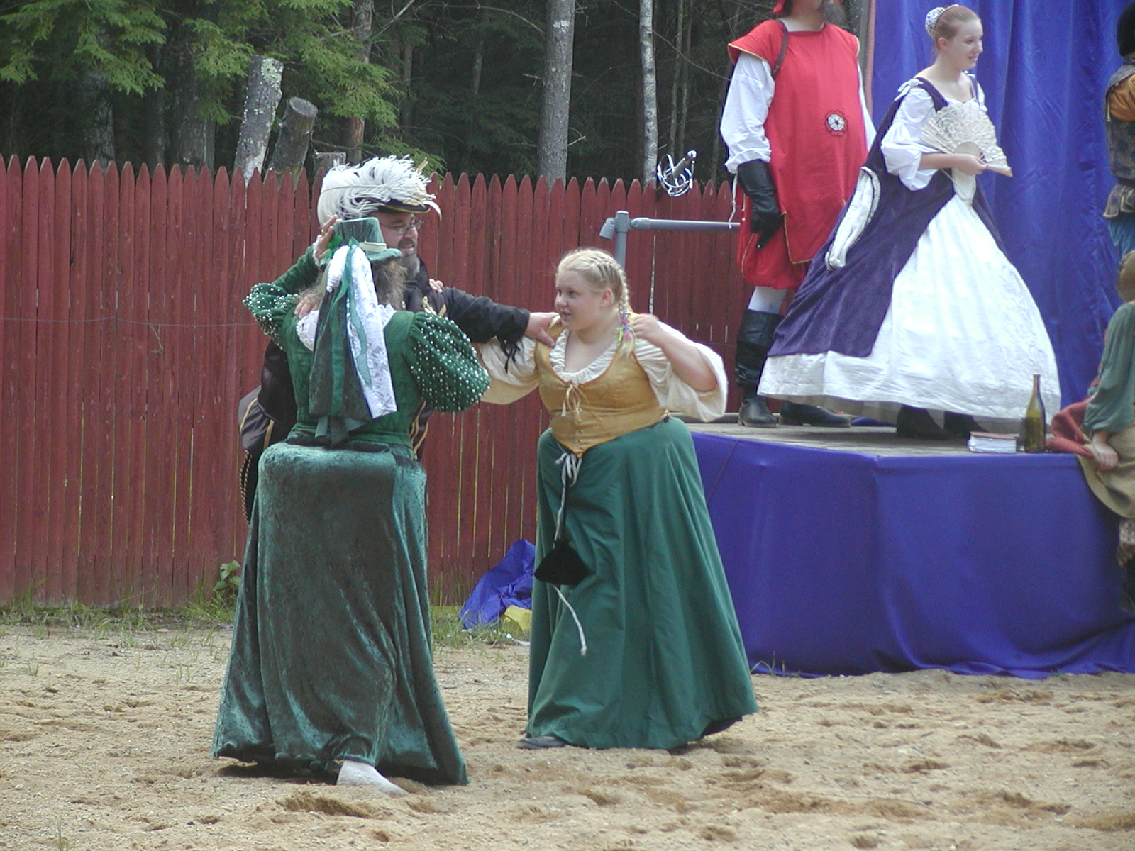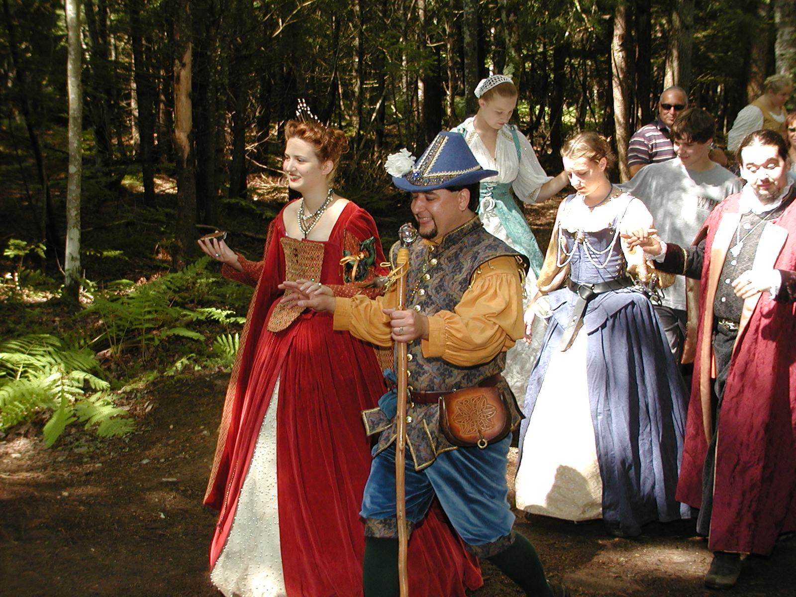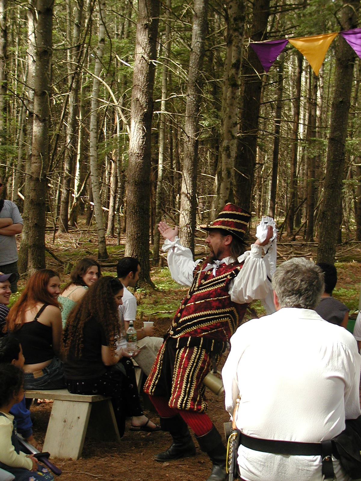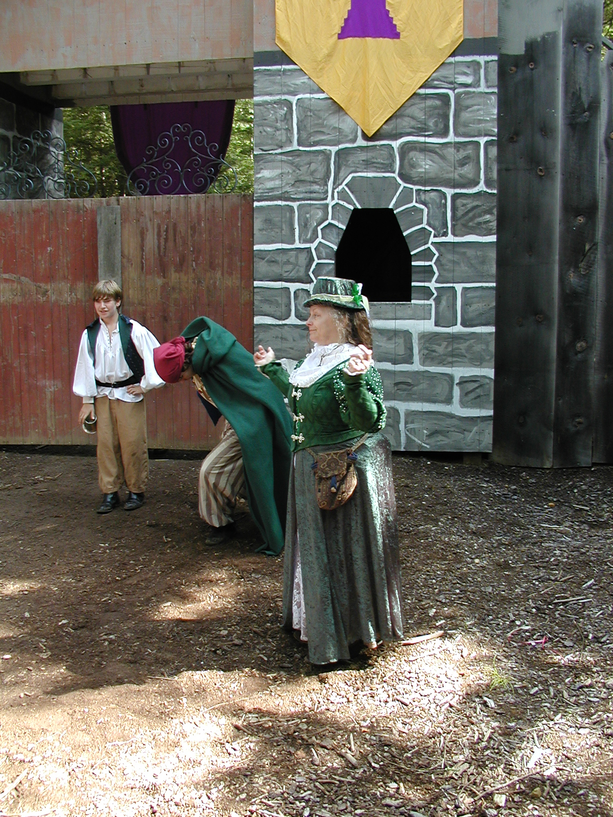 Picture #8: Faire folk Small: 600x823, 87,315 bytes (86K), (html file) Large: 1200x1600, 1,169,592 bytes (1.1M), (html file) Copyright, Michael Meissner 2004, All rights reserved Olympus C-2100UZ camera f/2.8, ISO 100, 1/160 sec, 14.7mm, auto mode, SHQ, sunny, matrix metering 35mm equivalent focal length 82.0mm Extra equipment used: Promaster 5750DX flash Taken by Michael Meissner on July 11, 2004 10:22:57 Last modified on July 14, 2004 at 23:12 This is picture MERF-2004-CAST-02. |