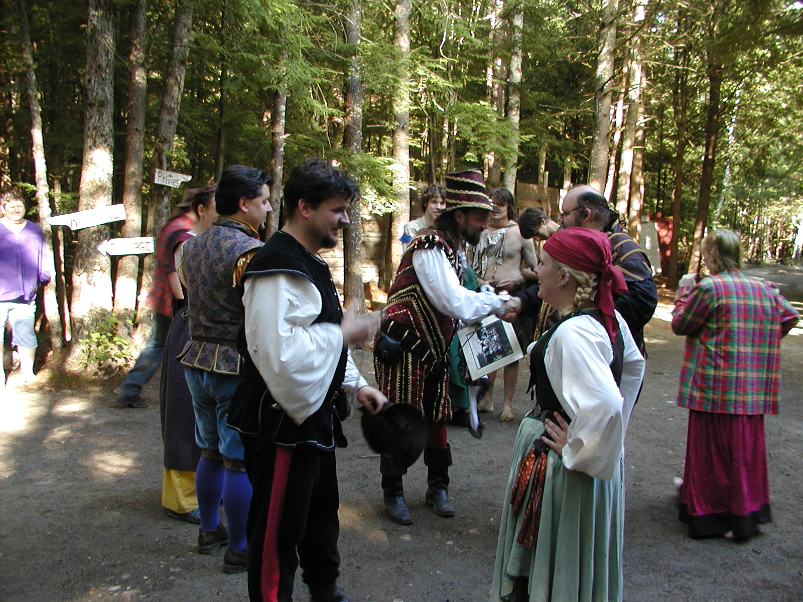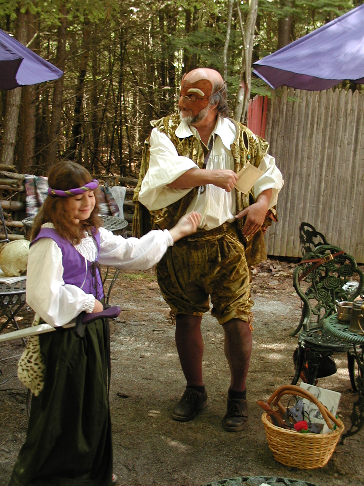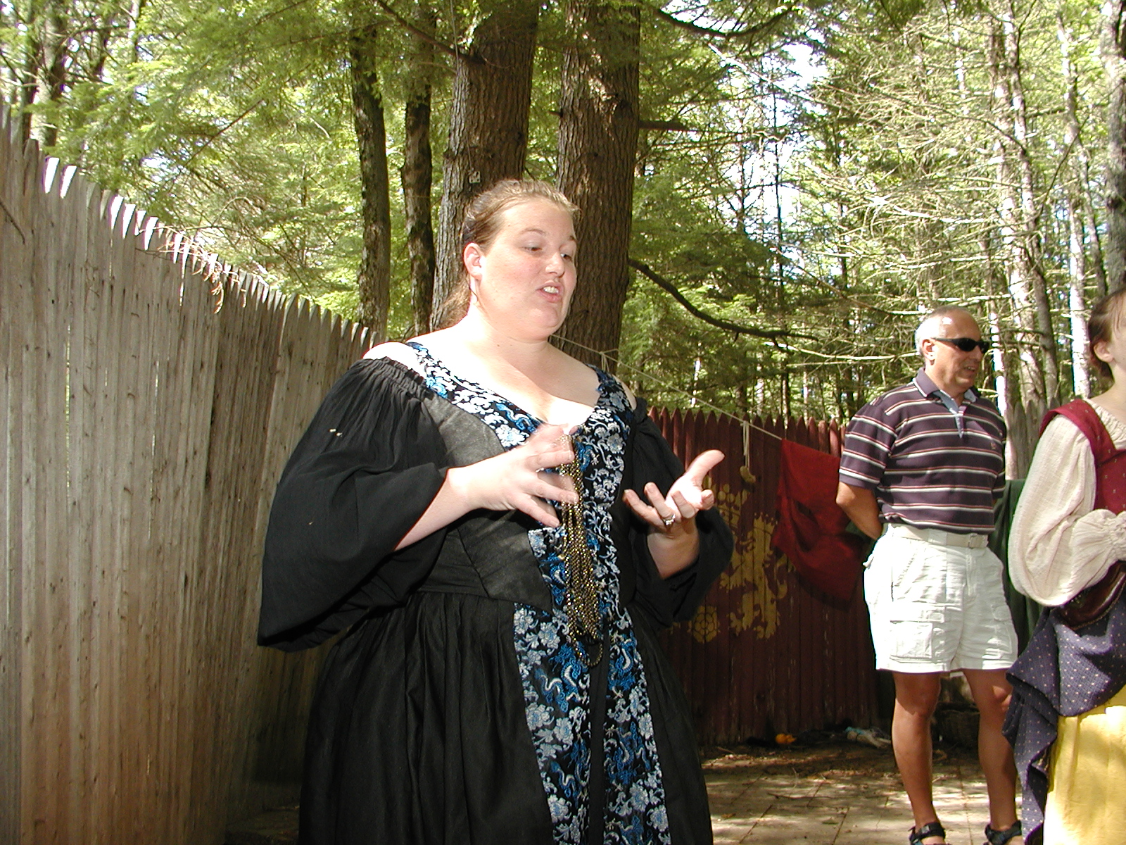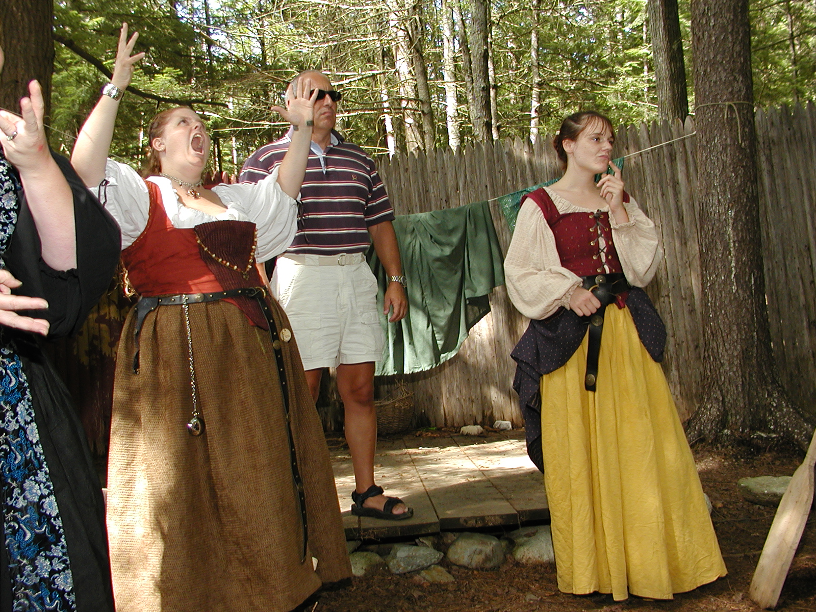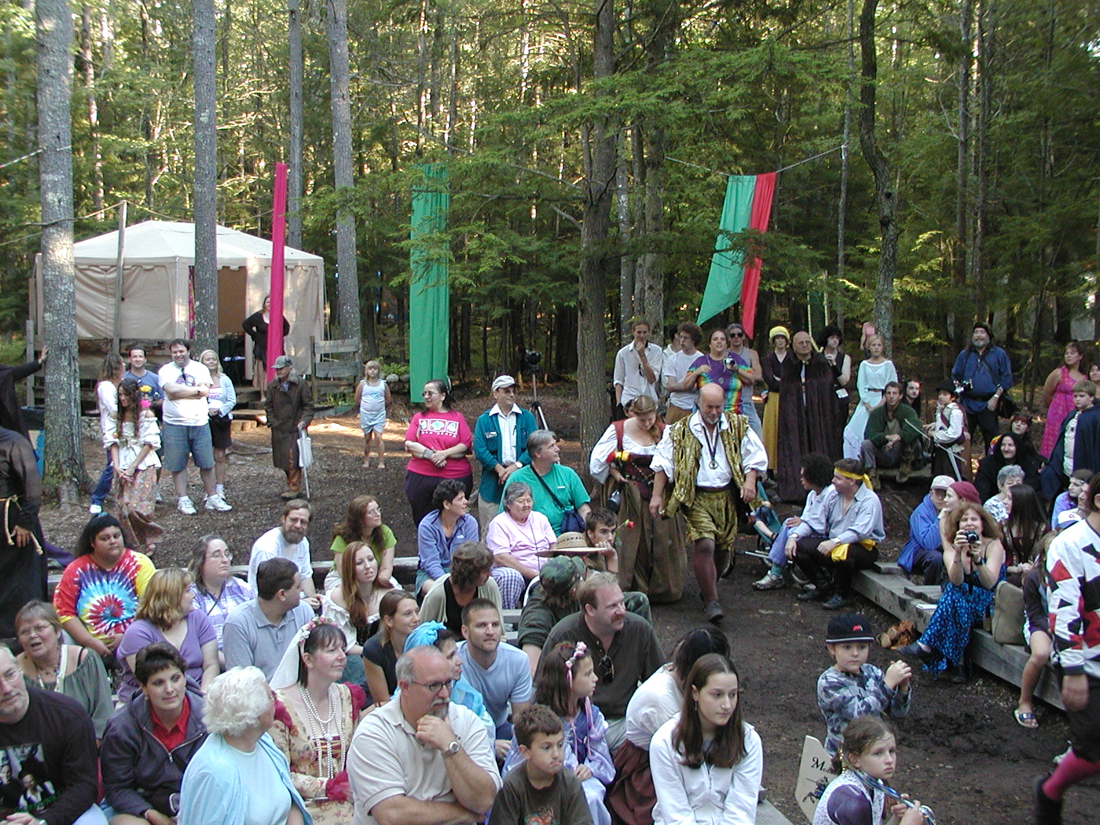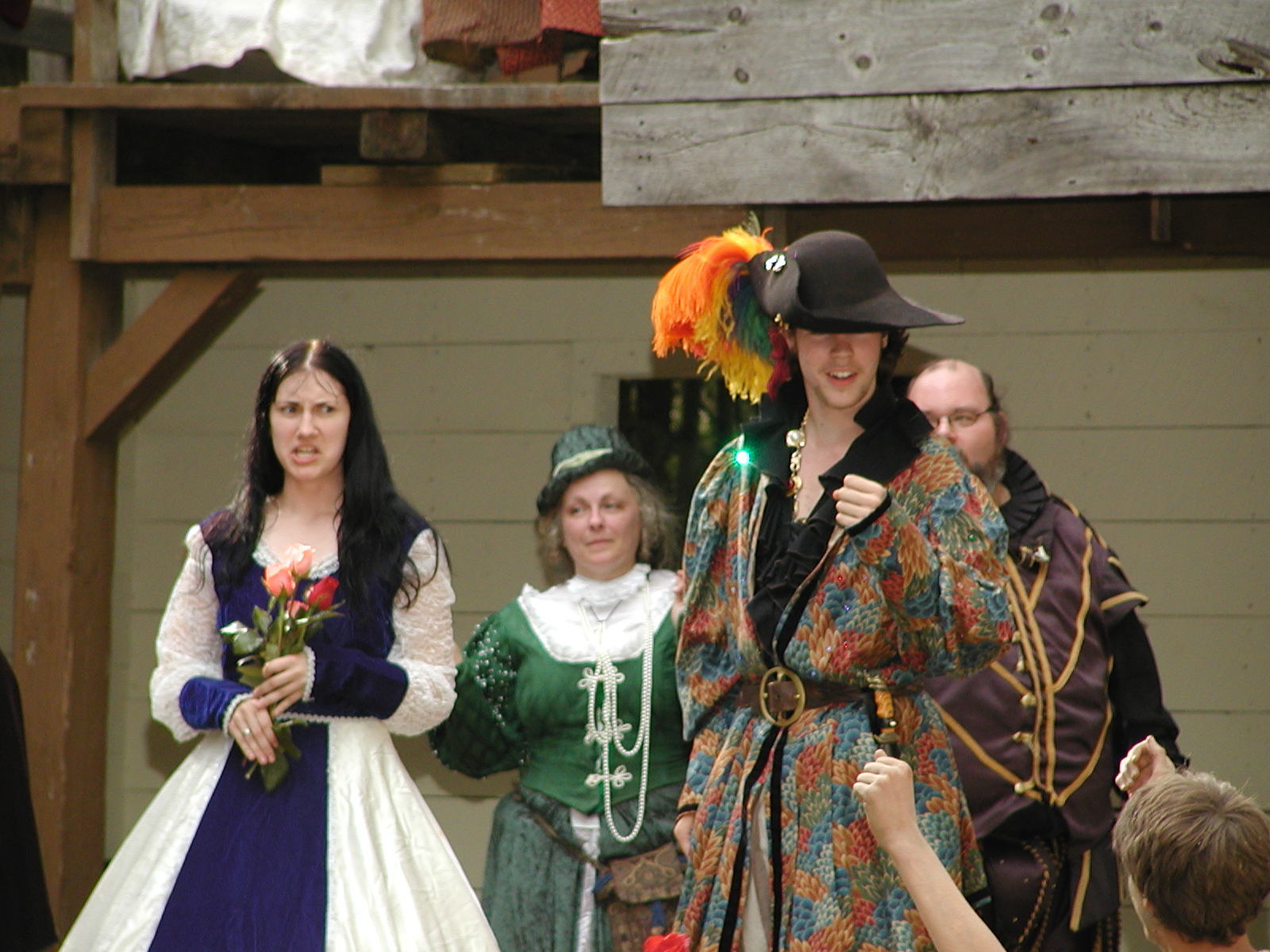 Picture #8: Faire folk Small: 600x823, 87,315 bytes (86K), (html file) Large: 1200x1600, 1,169,592 bytes (1.1M), (html file) Copyright, Michael Meissner 2004, All rights reserved Olympus C-2100UZ camera f/2.8, ISO 100, 1/160 sec, 14.7mm, auto mode, SHQ, sunny, matrix metering 35mm equivalent focal length 82.0mm Extra equipment used: Promaster 5750DX flash Taken by Michael Meissner on July 11, 2004 10:22:57 Last modified on July 14, 2004 at 23:12 This is picture MERF-2004-CAST-02. |