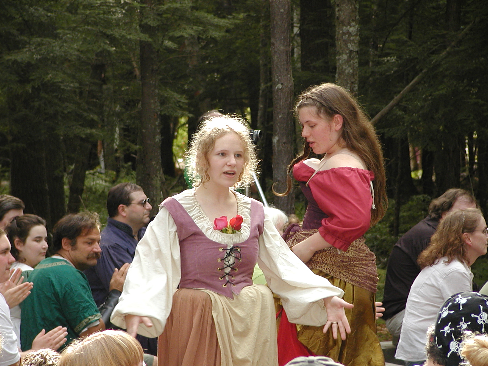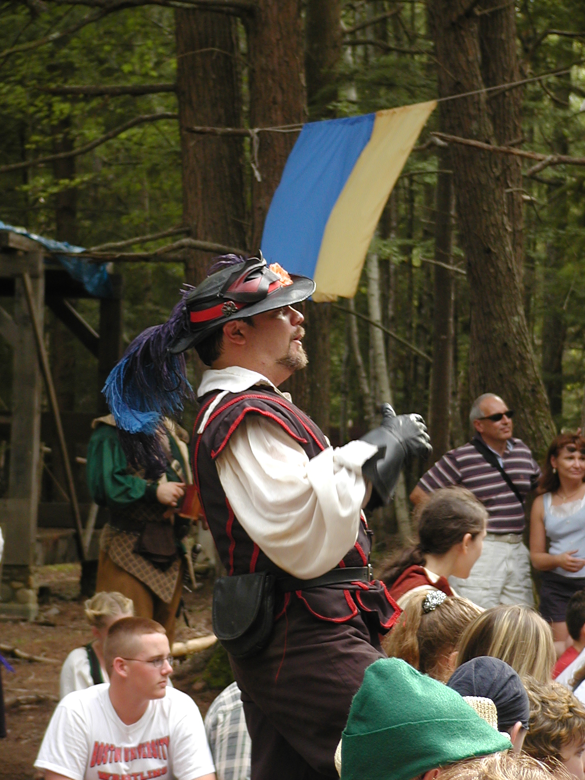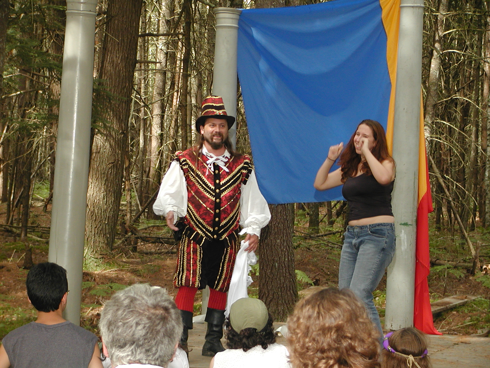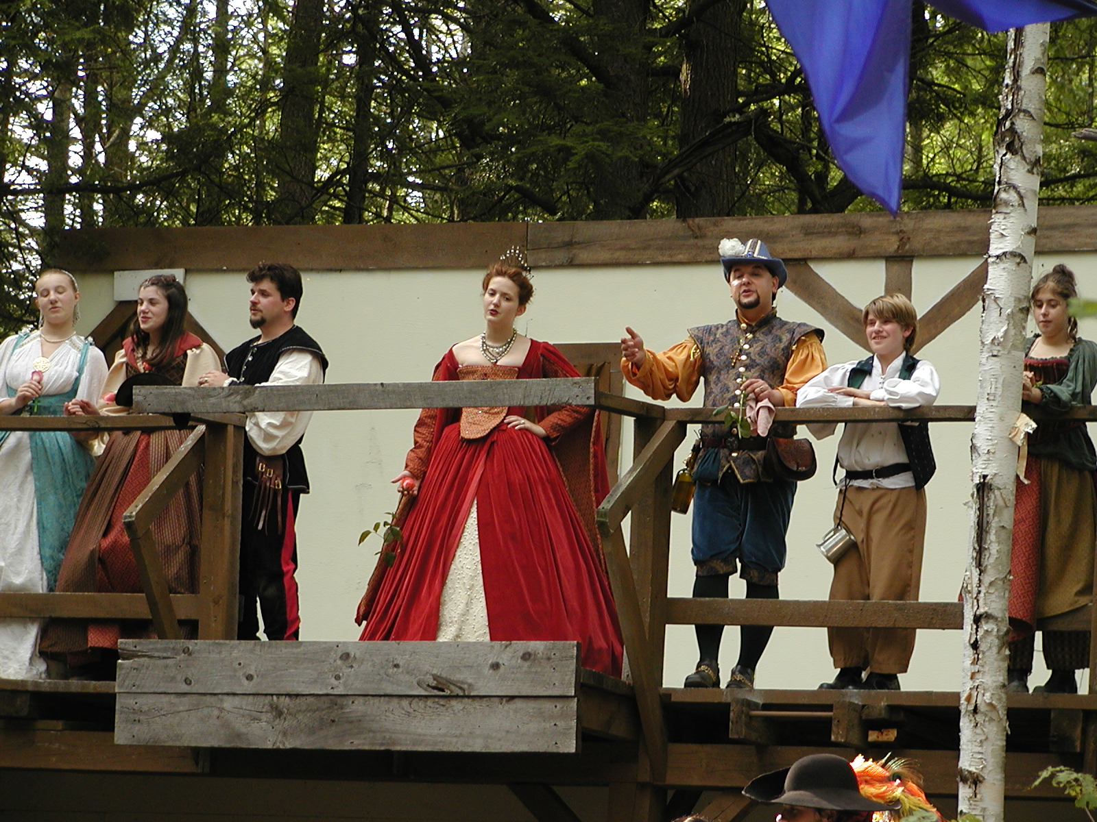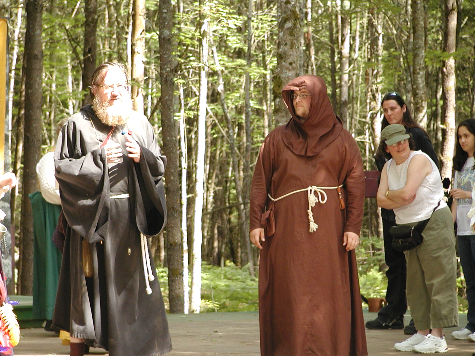 Picture #8: Faire folk Small: 600x823, 87,315 bytes (86K), (html file) Large: 1200x1600, 1,169,592 bytes (1.1M), (html file) Copyright, Michael Meissner 2004, All rights reserved Olympus C-2100UZ camera f/2.8, ISO 100, 1/160 sec, 14.7mm, auto mode, SHQ, sunny, matrix metering 35mm equivalent focal length 82.0mm Extra equipment used: Promaster 5750DX flash Taken by Michael Meissner on July 11, 2004 10:22:57 Last modified on July 14, 2004 at 23:12 This is picture MERF-2004-CAST-02. |