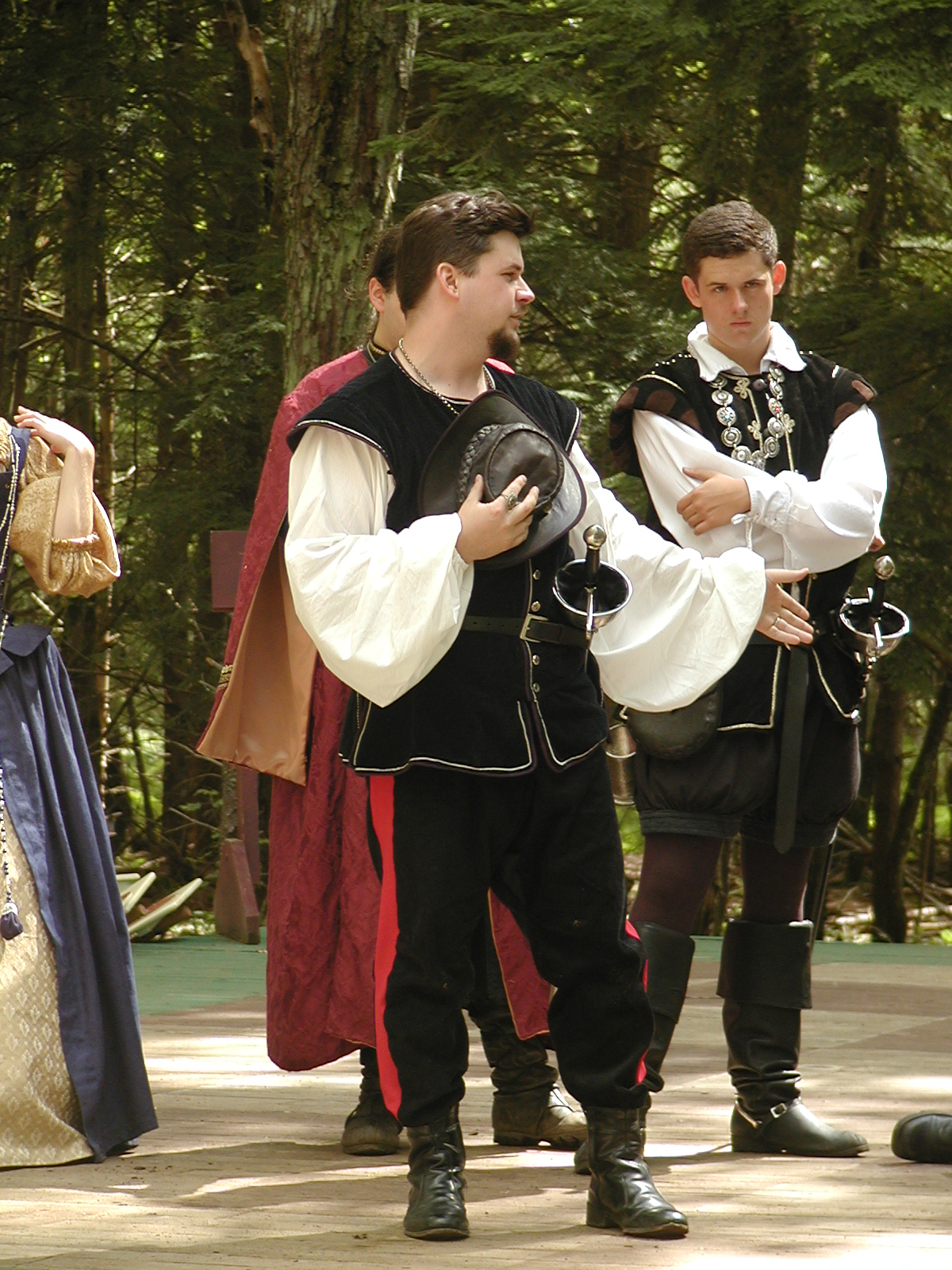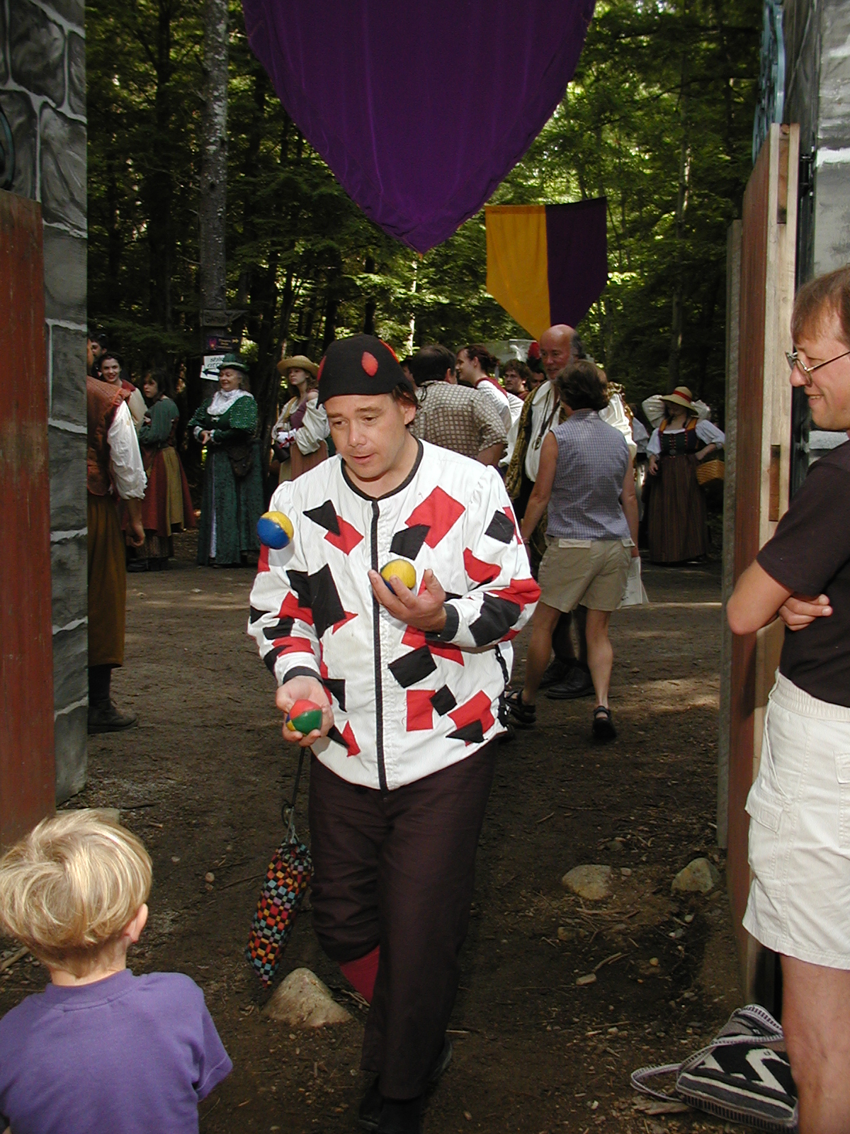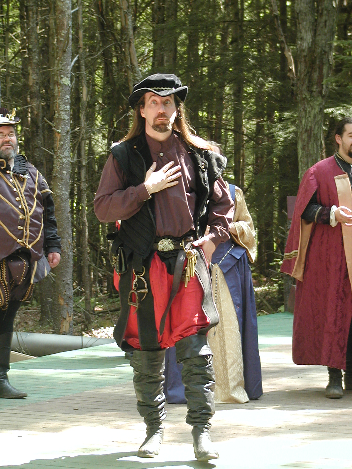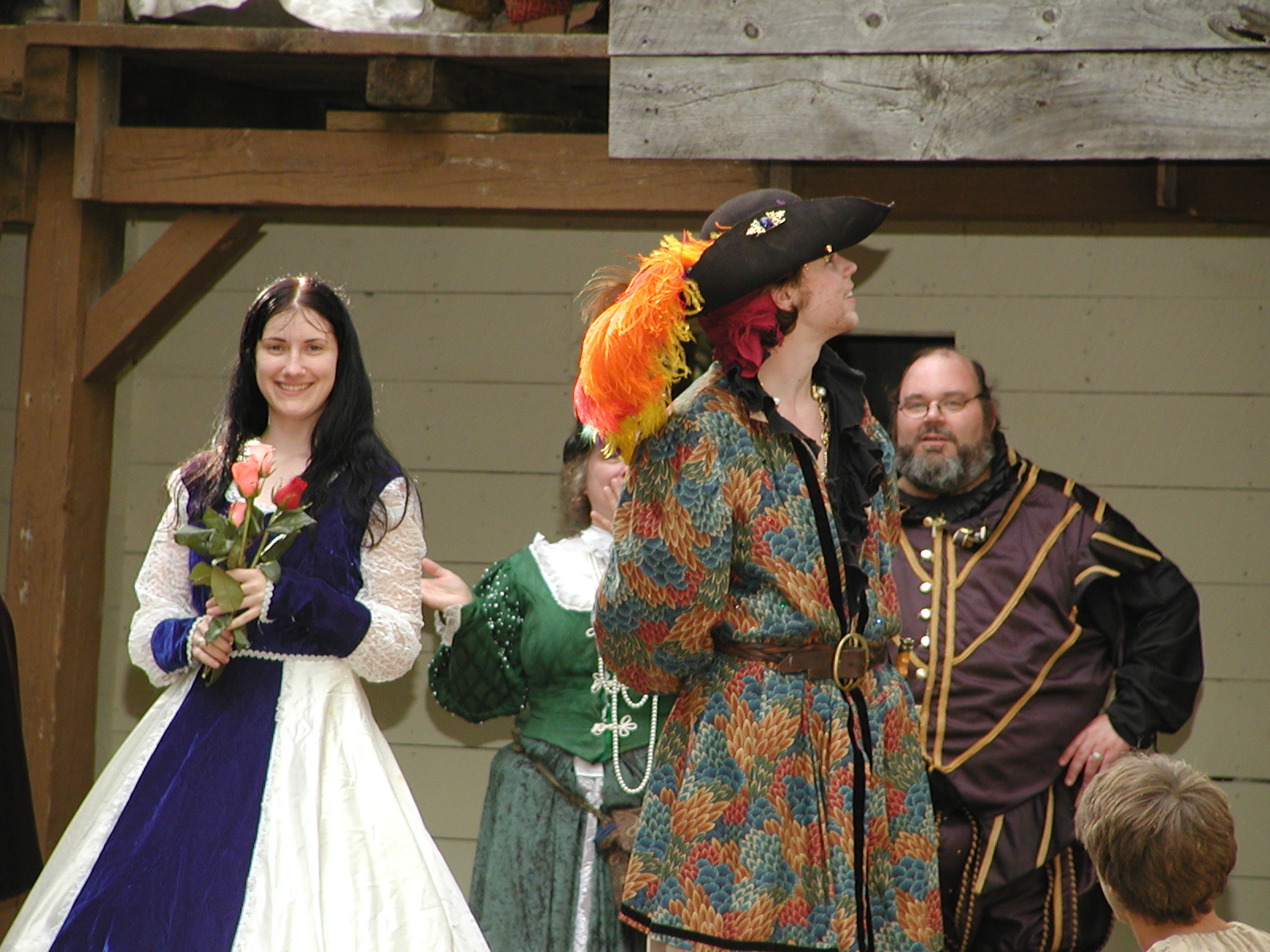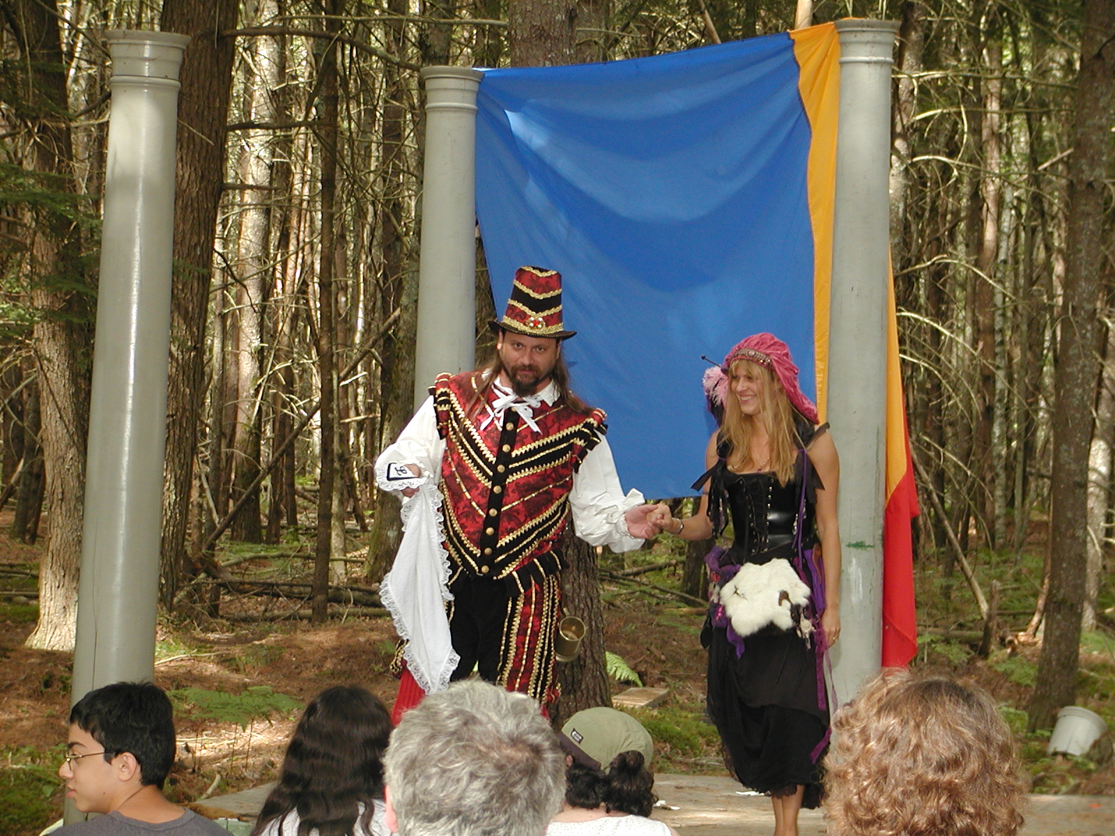 Picture #8: Faire folk Small: 600x823, 87,315 bytes (86K), (html file) Large: 1200x1600, 1,169,592 bytes (1.1M), (html file) Copyright, Michael Meissner 2004, All rights reserved Olympus C-2100UZ camera f/2.8, ISO 100, 1/160 sec, 14.7mm, auto mode, SHQ, sunny, matrix metering 35mm equivalent focal length 82.0mm Extra equipment used: Promaster 5750DX flash Taken by Michael Meissner on July 11, 2004 10:22:57 Last modified on July 14, 2004 at 23:12 This is picture MERF-2004-CAST-02. |