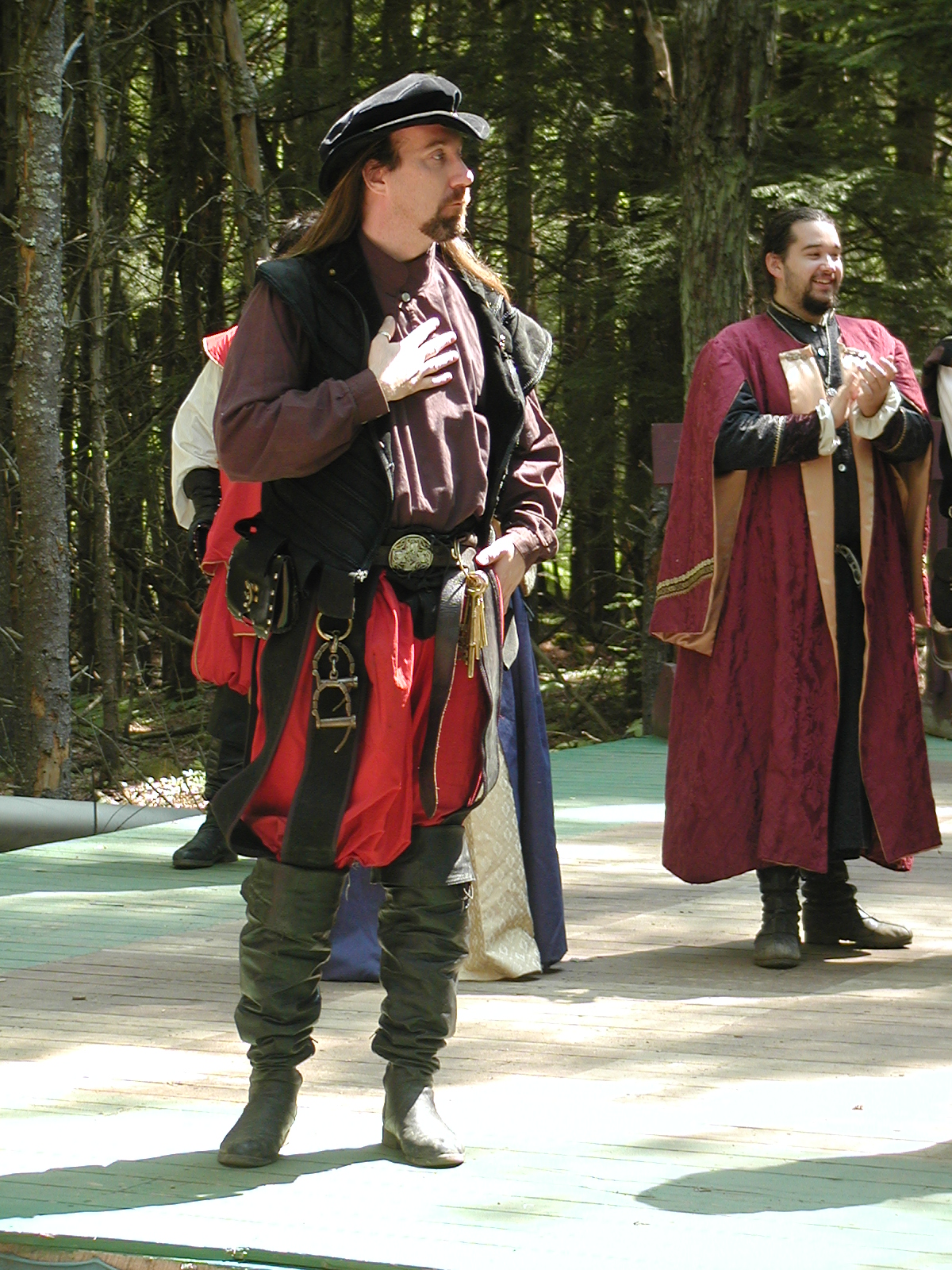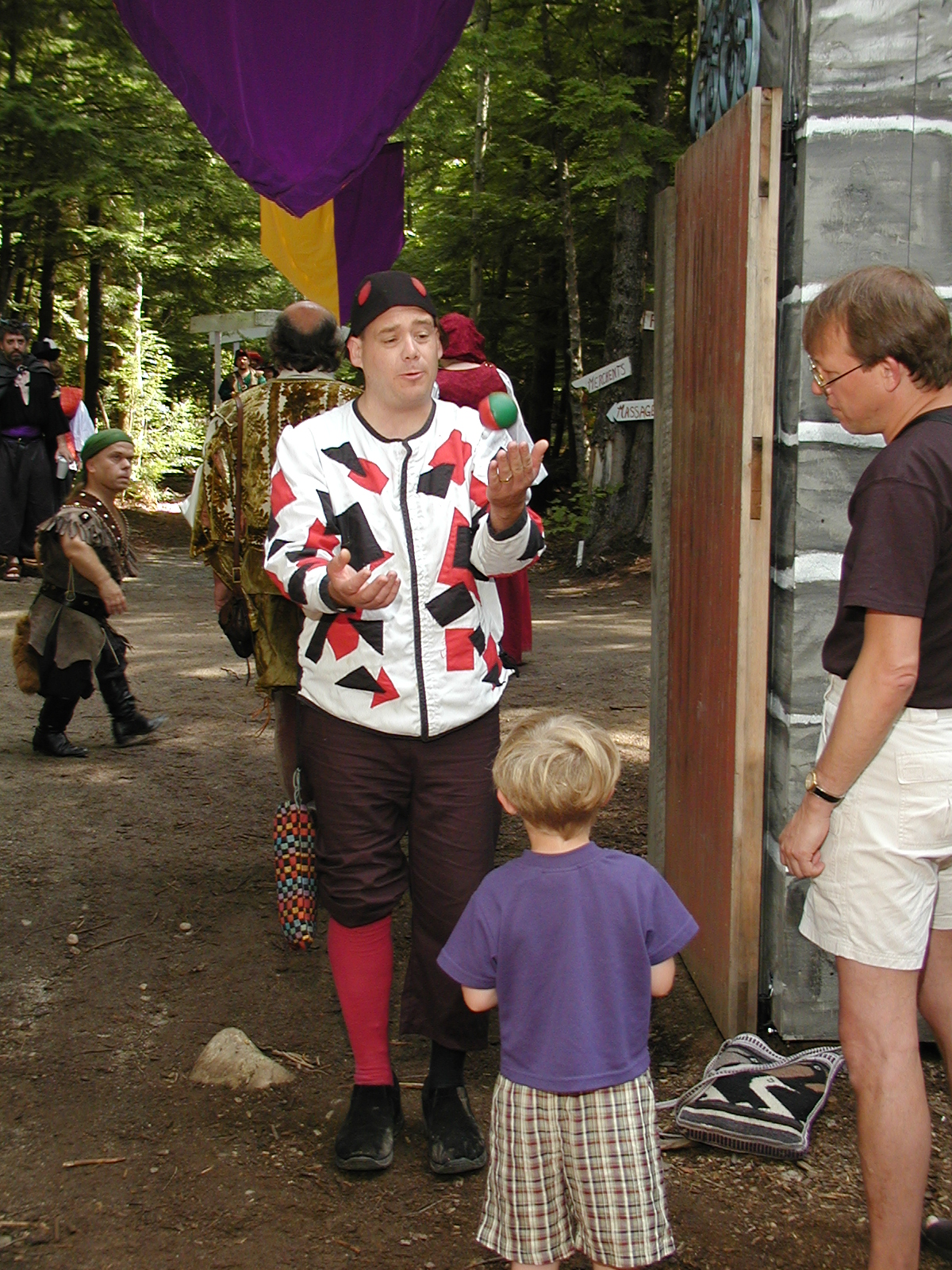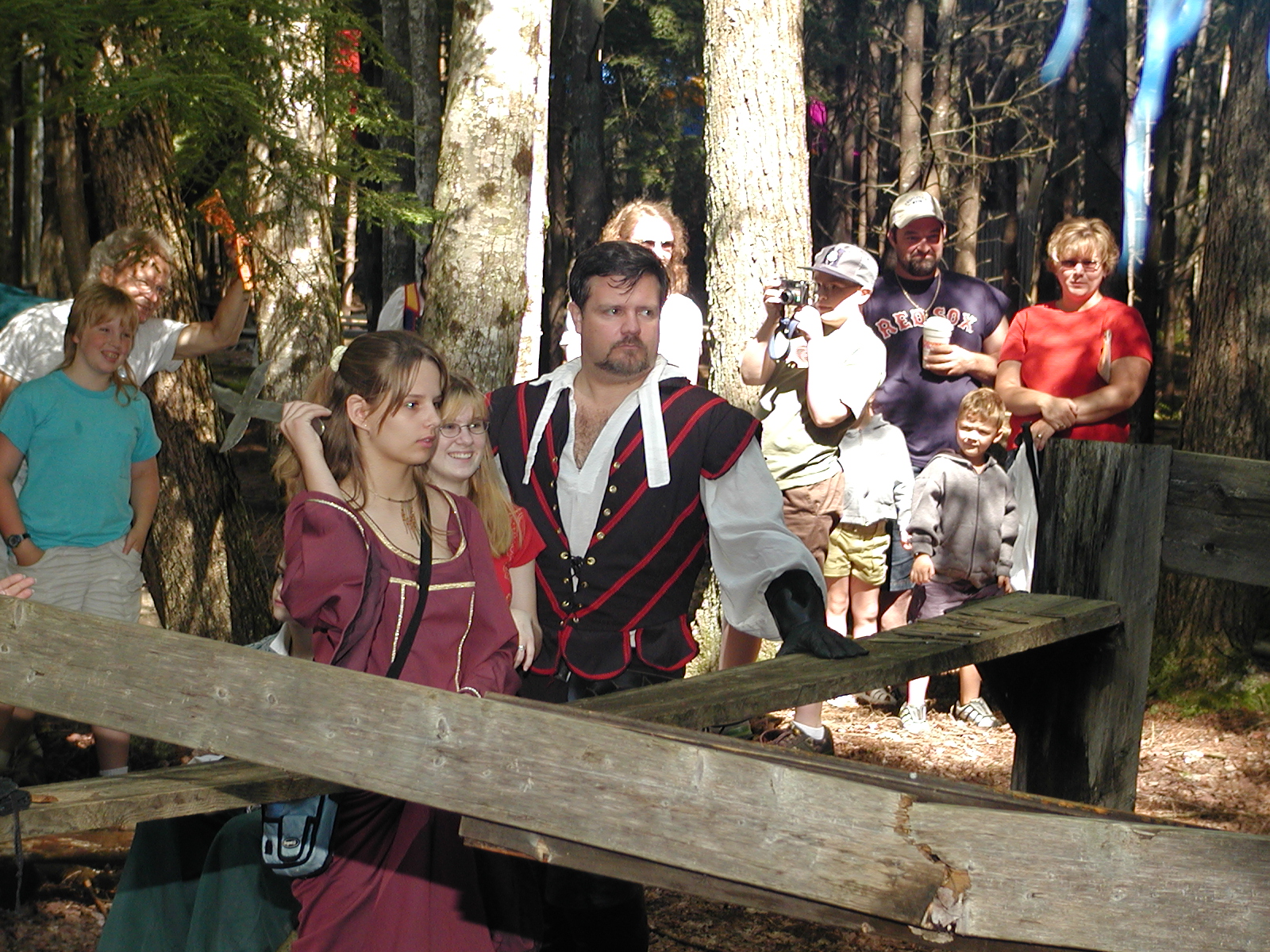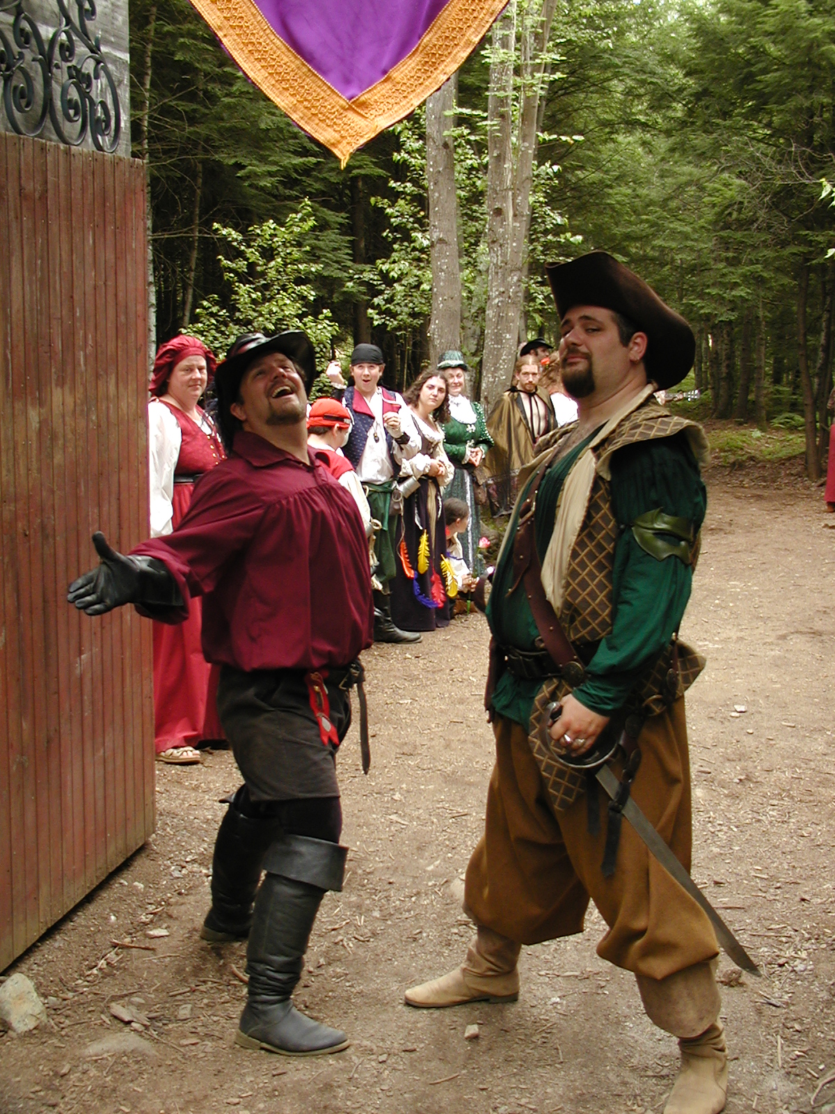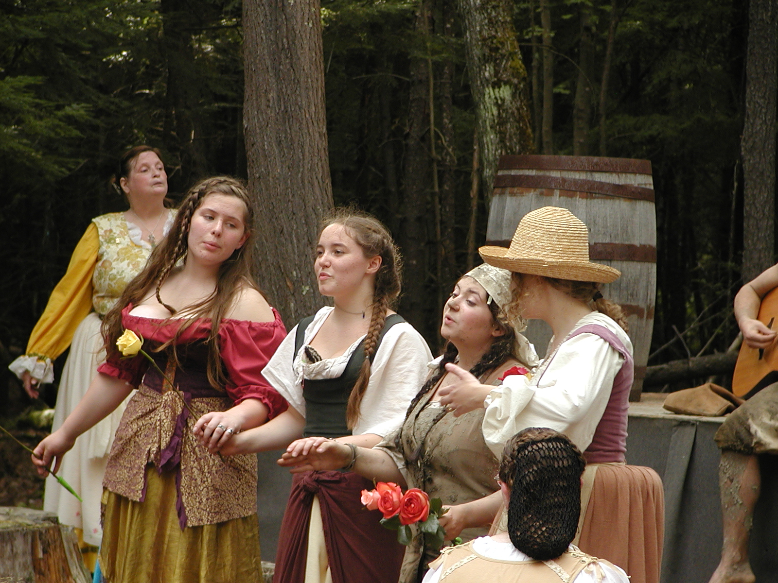 Picture #8: Faire folk Small: 600x823, 87,315 bytes (86K), (html file) Large: 1200x1600, 1,169,592 bytes (1.1M), (html file) Copyright, Michael Meissner 2004, All rights reserved Olympus C-2100UZ camera f/2.8, ISO 100, 1/160 sec, 14.7mm, auto mode, SHQ, sunny, matrix metering 35mm equivalent focal length 82.0mm Extra equipment used: Promaster 5750DX flash Taken by Michael Meissner on July 11, 2004 10:22:57 Last modified on July 14, 2004 at 23:12 This is picture MERF-2004-CAST-02. |