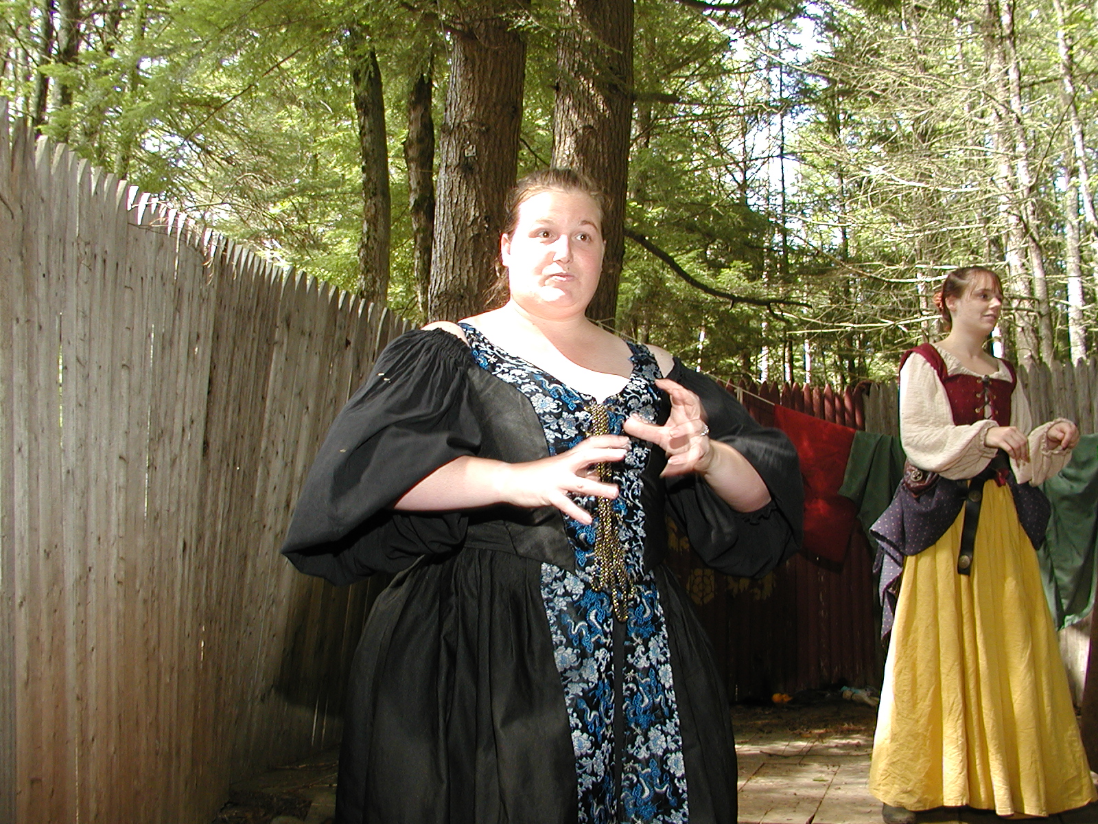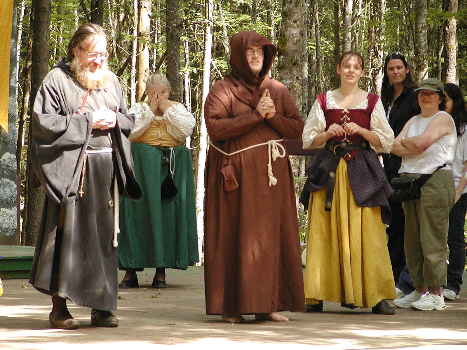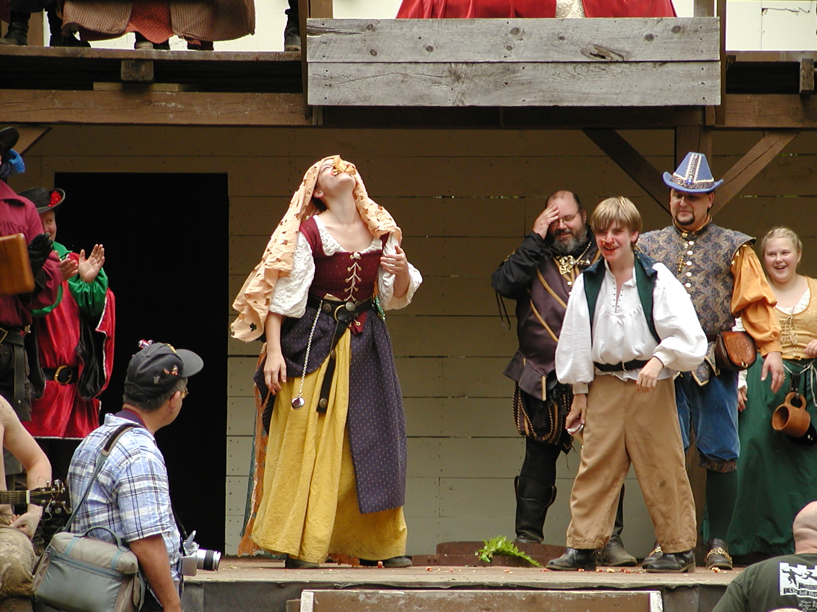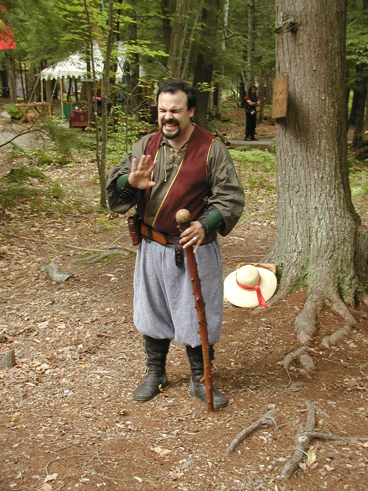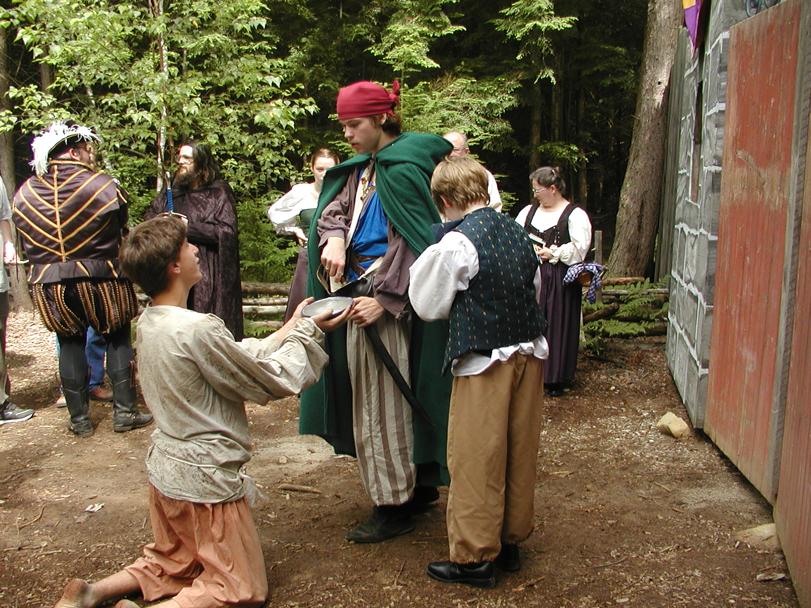 Picture #8: Faire folk Small: 600x823, 87,315 bytes (86K), (html file) Large: 1200x1600, 1,169,592 bytes (1.1M), (html file) Copyright, Michael Meissner 2004, All rights reserved Olympus C-2100UZ camera f/2.8, ISO 100, 1/160 sec, 14.7mm, auto mode, SHQ, sunny, matrix metering 35mm equivalent focal length 82.0mm Extra equipment used: Promaster 5750DX flash Taken by Michael Meissner on July 11, 2004 10:22:57 Last modified on July 14, 2004 at 23:12 This is picture MERF-2004-CAST-02. |