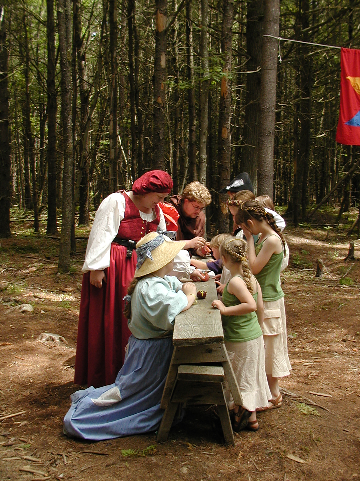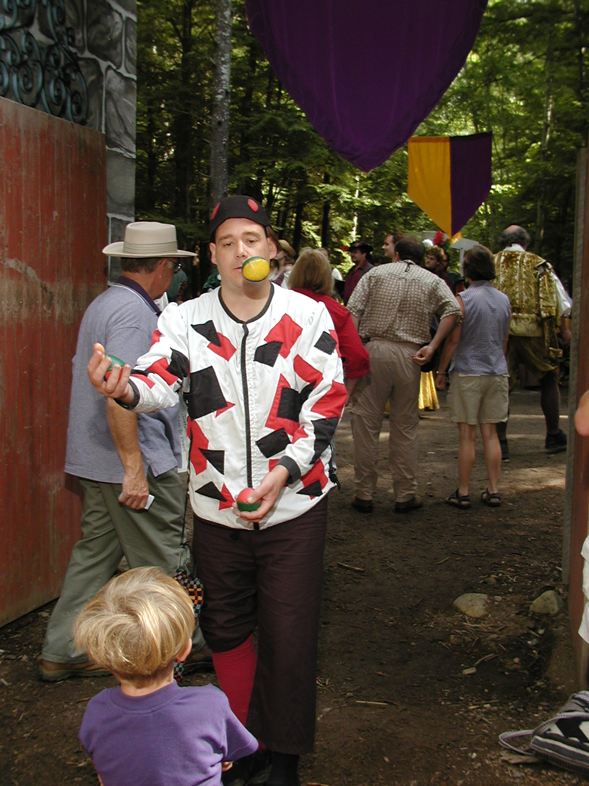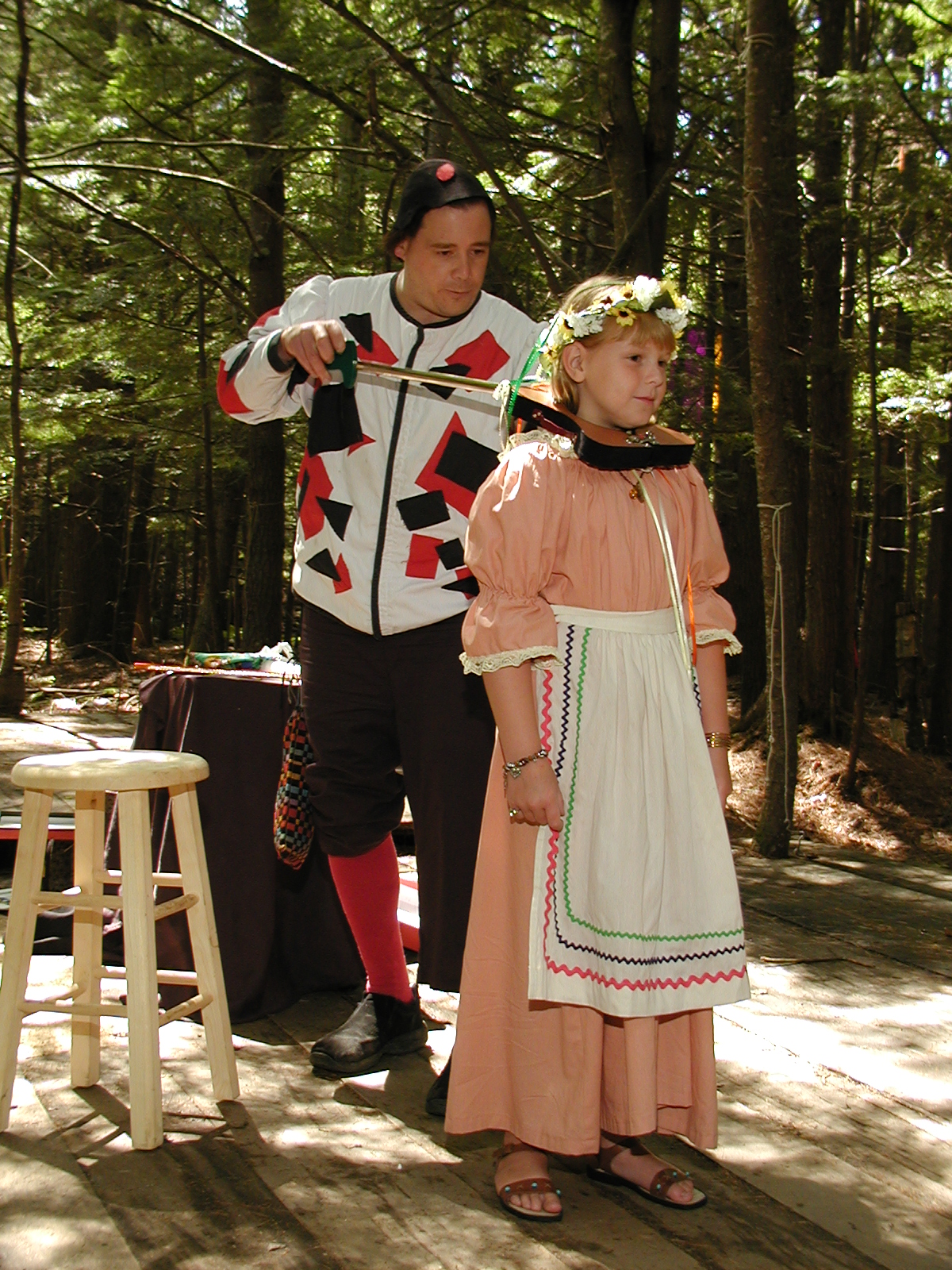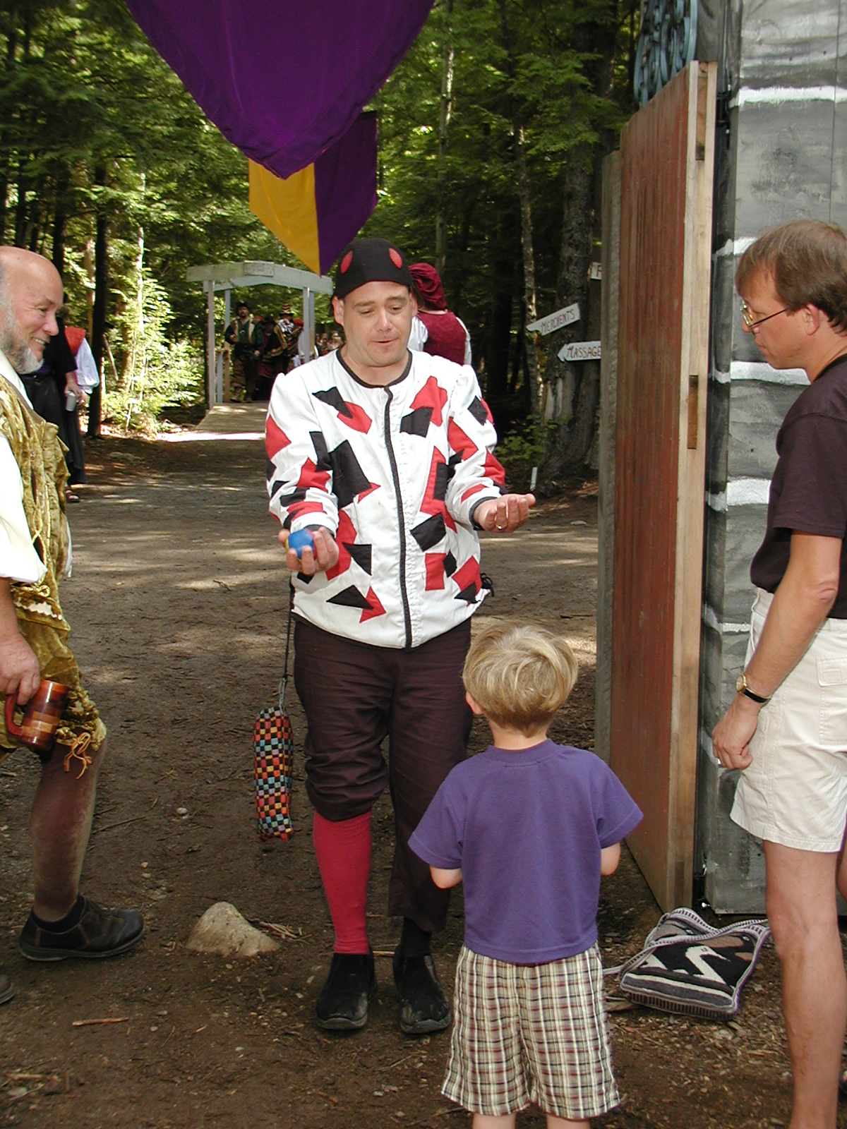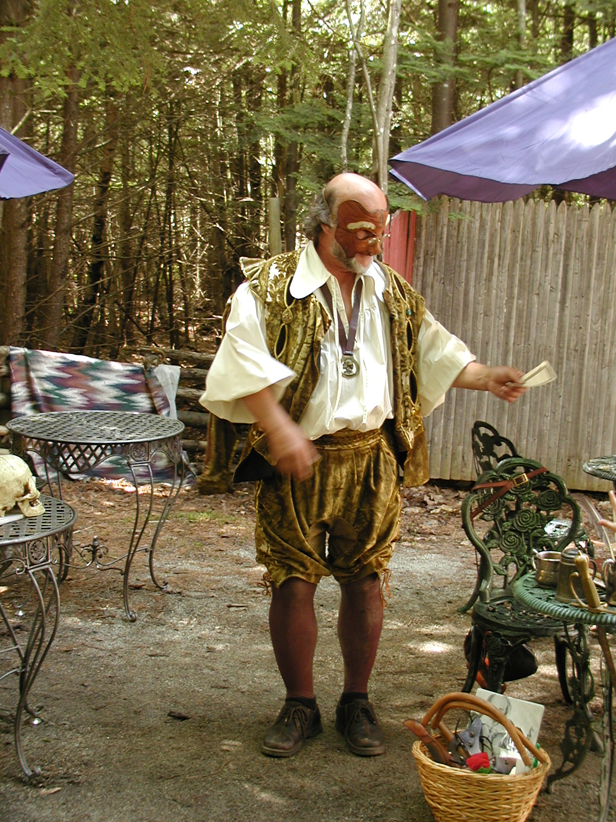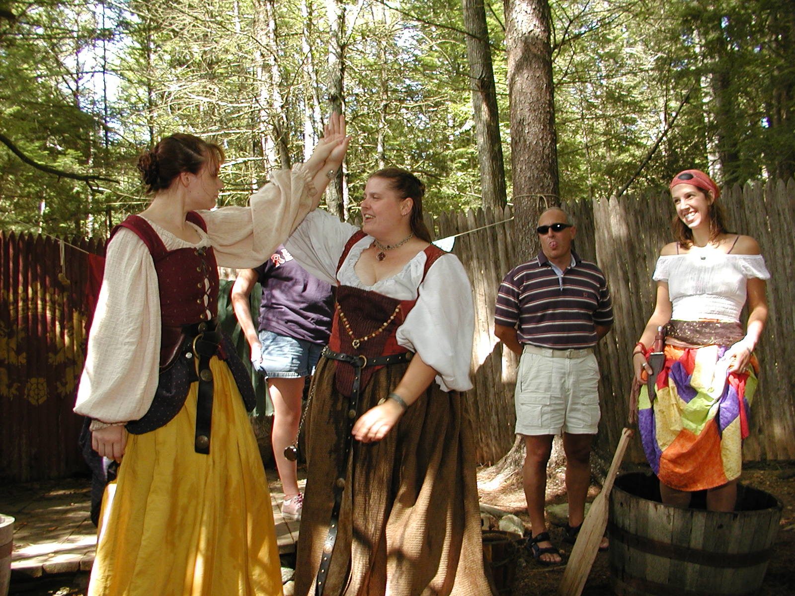 Picture #8: Faire folk Small: 600x823, 87,315 bytes (86K), (html file) Large: 1200x1600, 1,169,592 bytes (1.1M), (html file) Copyright, Michael Meissner 2004, All rights reserved Olympus C-2100UZ camera f/2.8, ISO 100, 1/160 sec, 14.7mm, auto mode, SHQ, sunny, matrix metering 35mm equivalent focal length 82.0mm Extra equipment used: Promaster 5750DX flash Taken by Michael Meissner on July 11, 2004 10:22:57 Last modified on July 14, 2004 at 23:12 This is picture MERF-2004-CAST-02. |