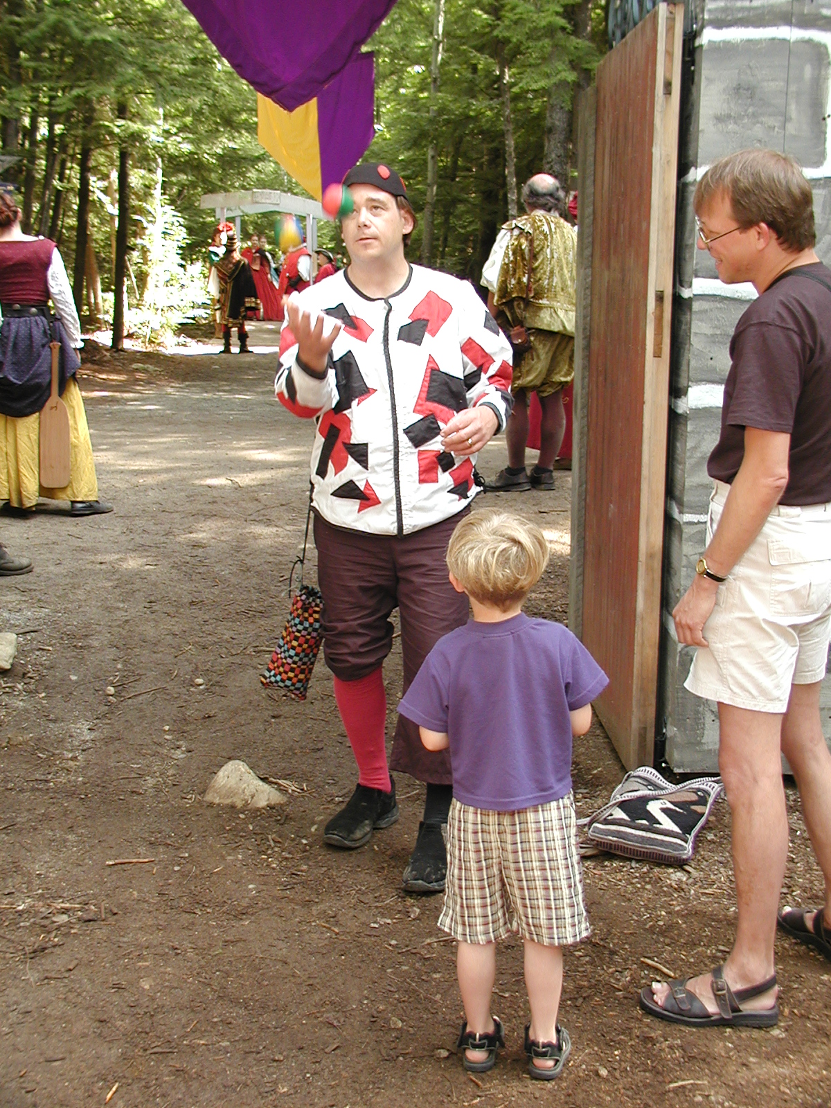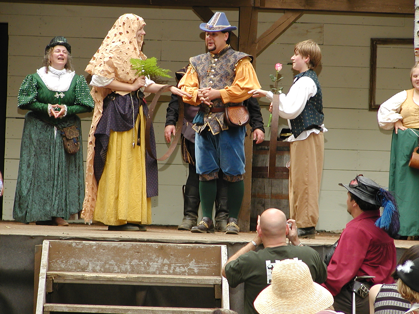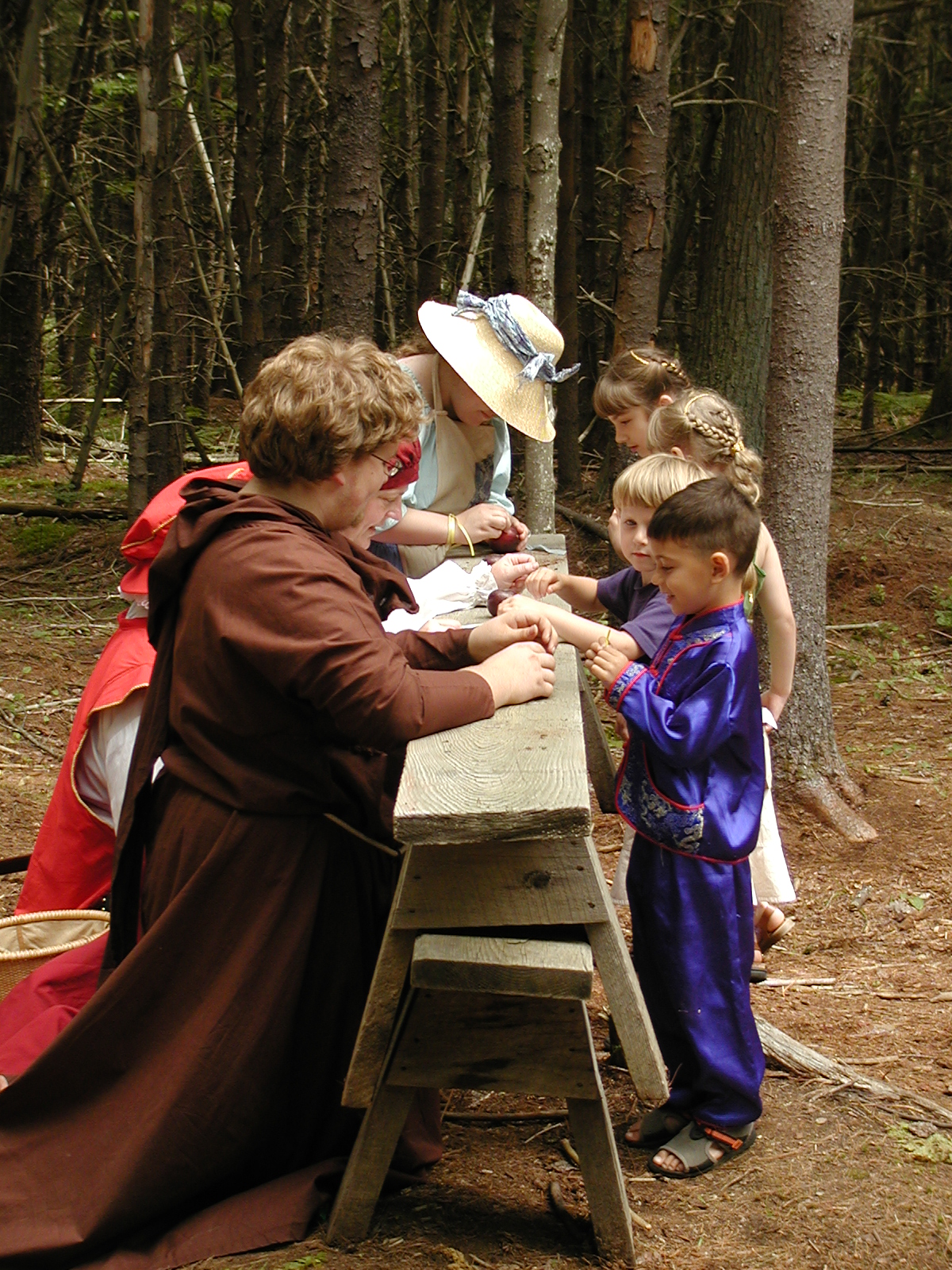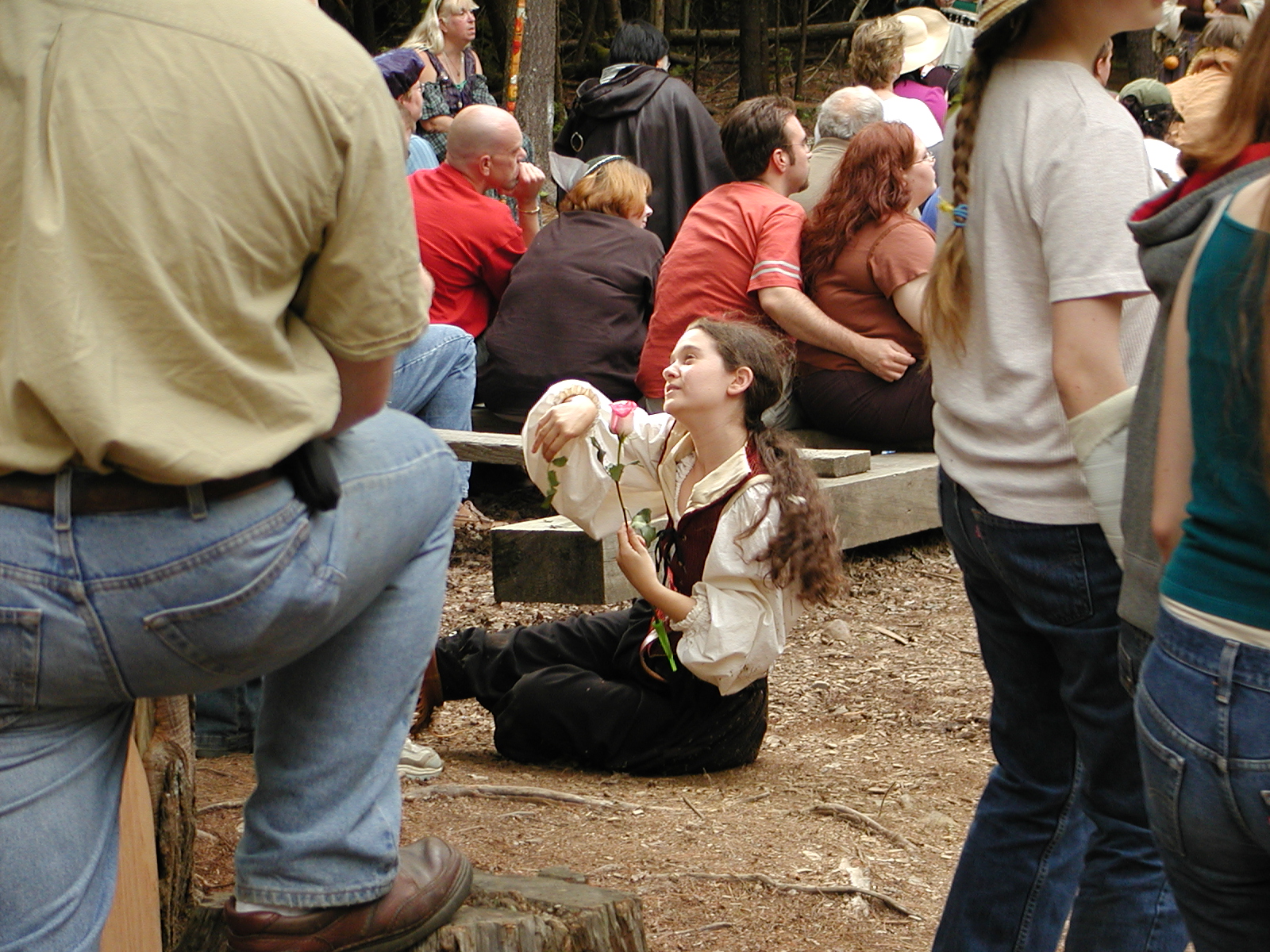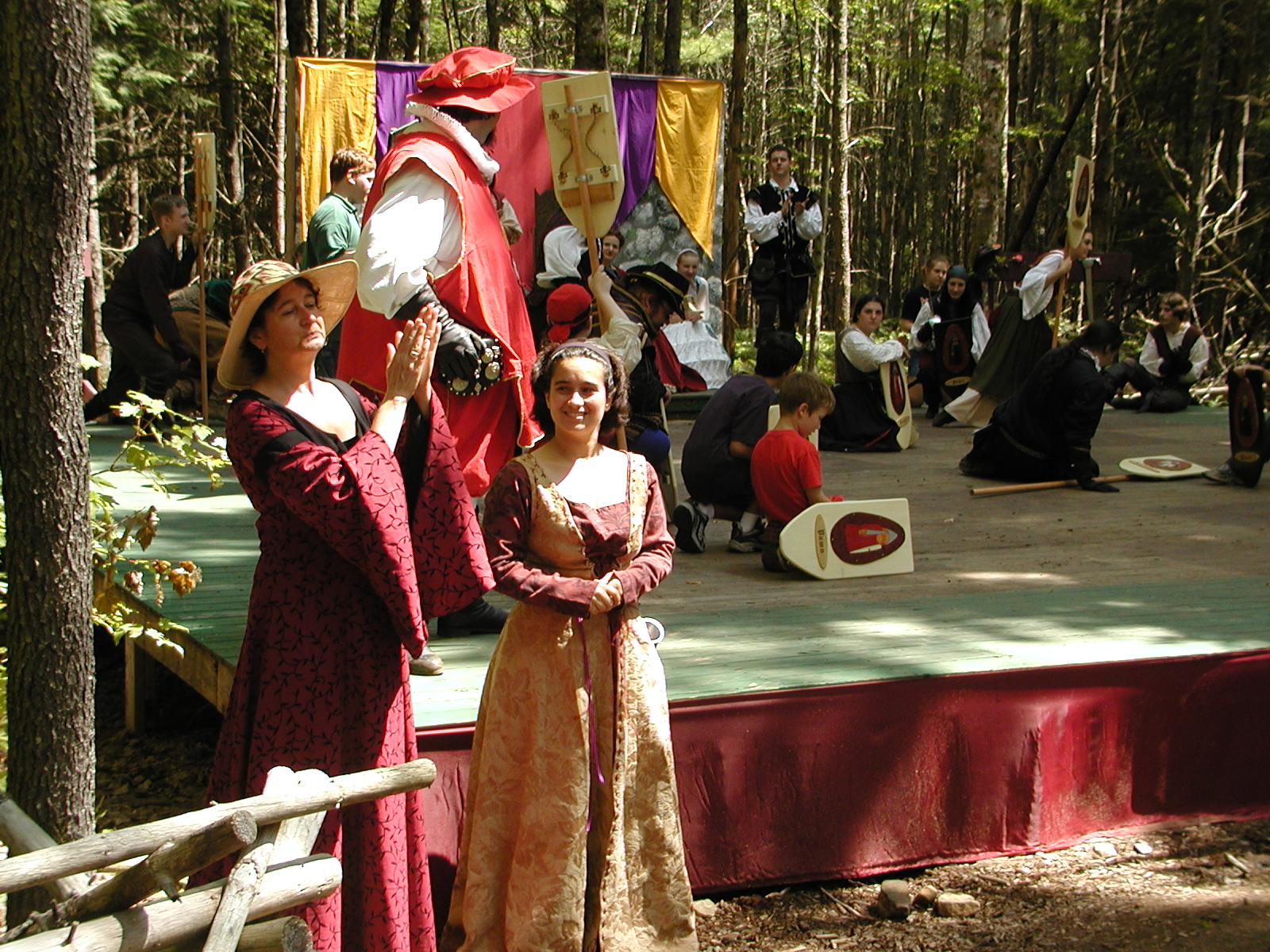 Picture #8: Faire folk Small: 600x823, 87,315 bytes (86K), (html file) Large: 1200x1600, 1,169,592 bytes (1.1M), (html file) Copyright, Michael Meissner 2004, All rights reserved Olympus C-2100UZ camera f/2.8, ISO 100, 1/160 sec, 14.7mm, auto mode, SHQ, sunny, matrix metering 35mm equivalent focal length 82.0mm Extra equipment used: Promaster 5750DX flash Taken by Michael Meissner on July 11, 2004 10:22:57 Last modified on July 14, 2004 at 23:12 This is picture MERF-2004-CAST-02. |