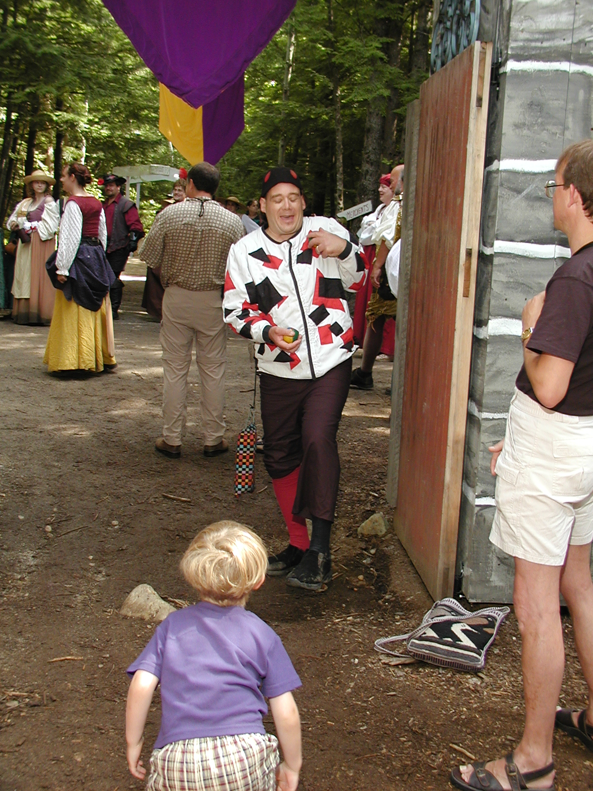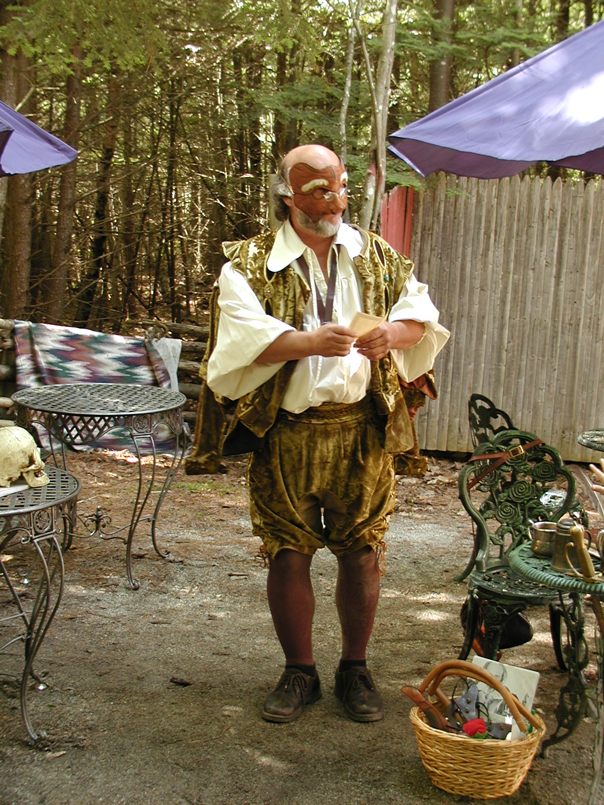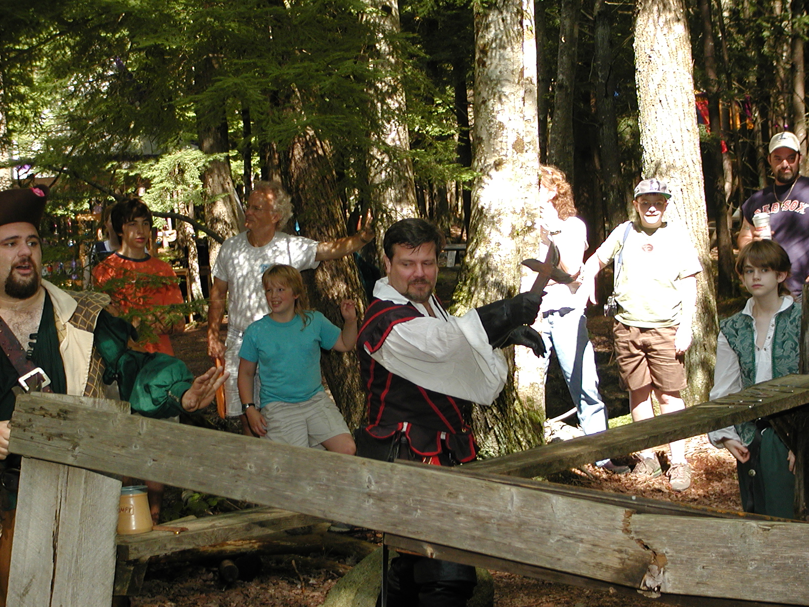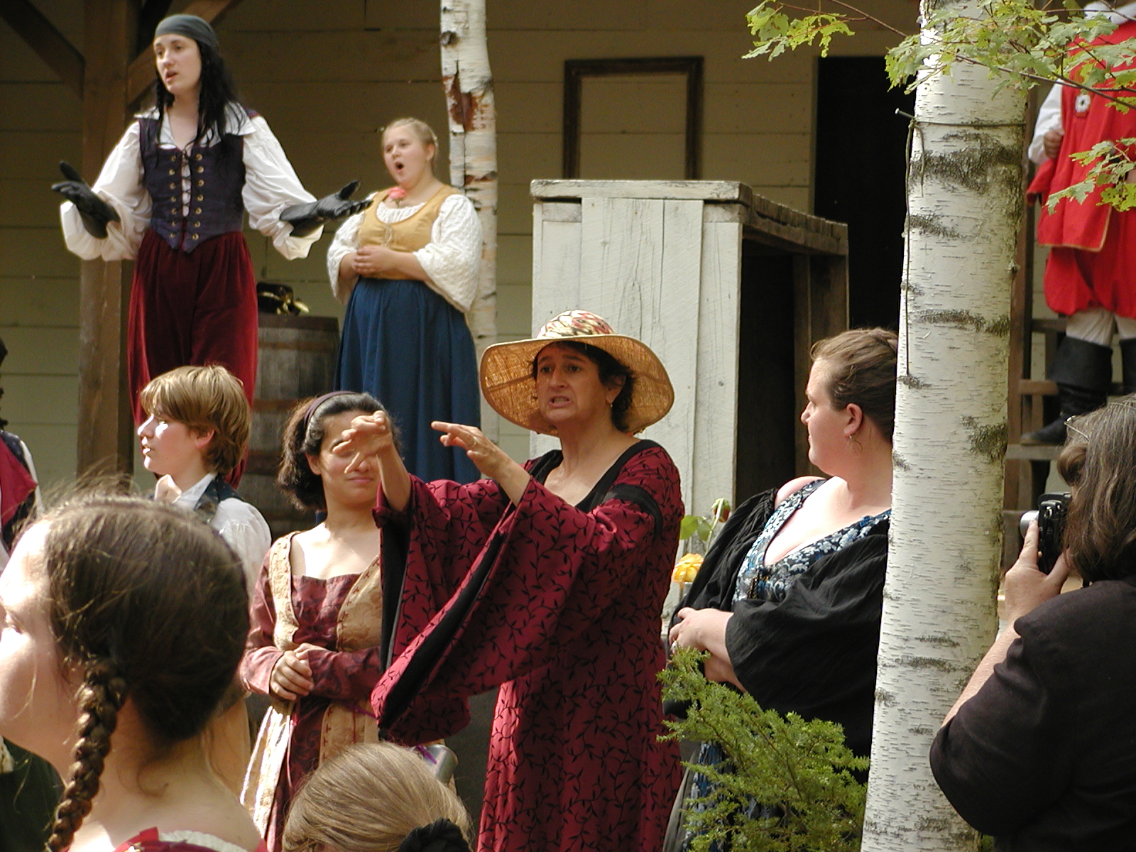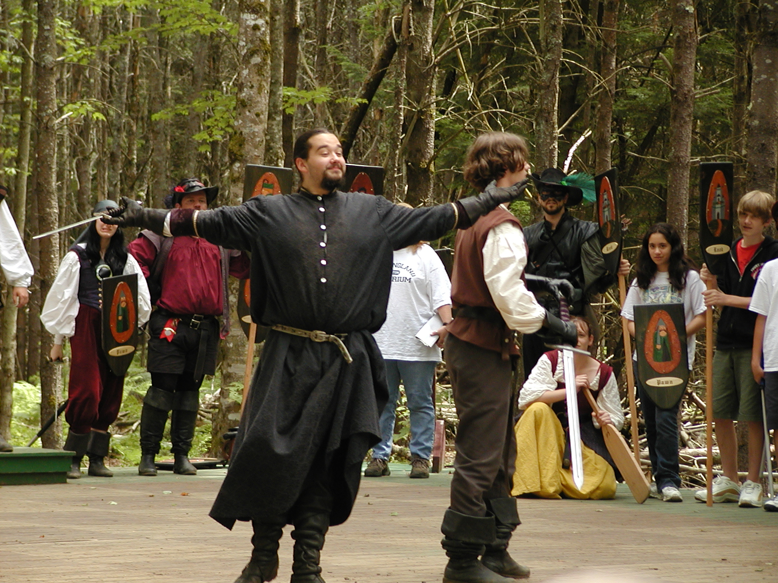 Picture #8: Faire folk Small: 600x823, 87,315 bytes (86K), (html file) Large: 1200x1600, 1,169,592 bytes (1.1M), (html file) Copyright, Michael Meissner 2004, All rights reserved Olympus C-2100UZ camera f/2.8, ISO 100, 1/160 sec, 14.7mm, auto mode, SHQ, sunny, matrix metering 35mm equivalent focal length 82.0mm Extra equipment used: Promaster 5750DX flash Taken by Michael Meissner on July 11, 2004 10:22:57 Last modified on July 14, 2004 at 23:12 This is picture MERF-2004-CAST-02. |