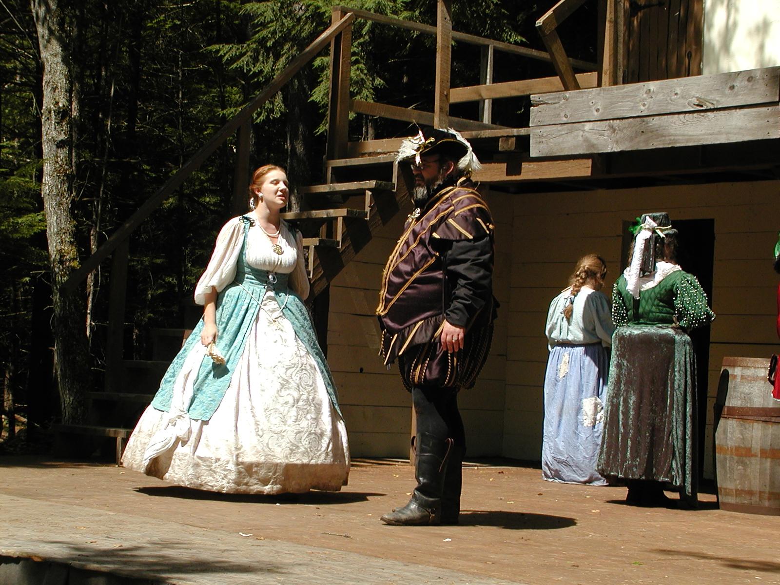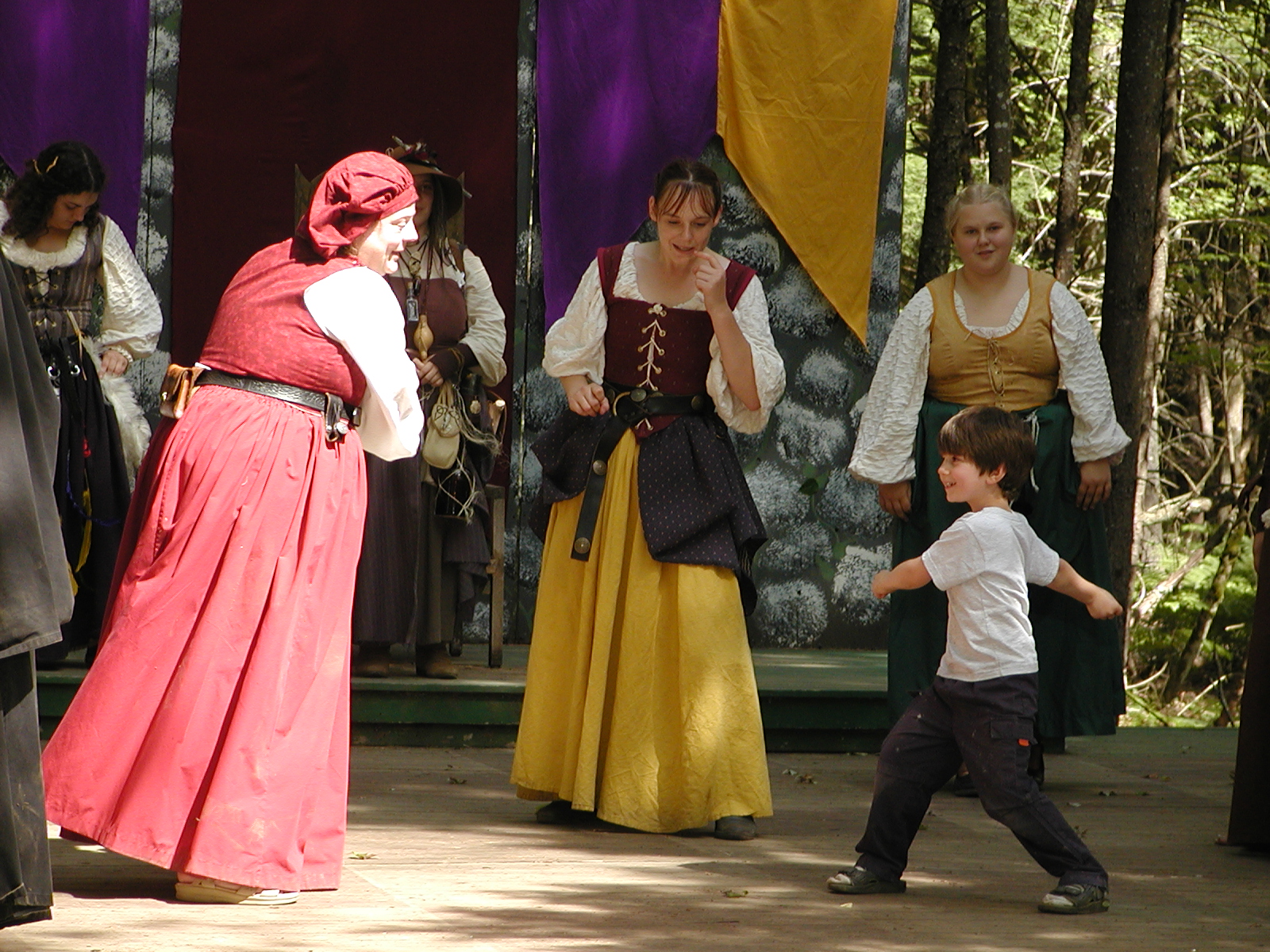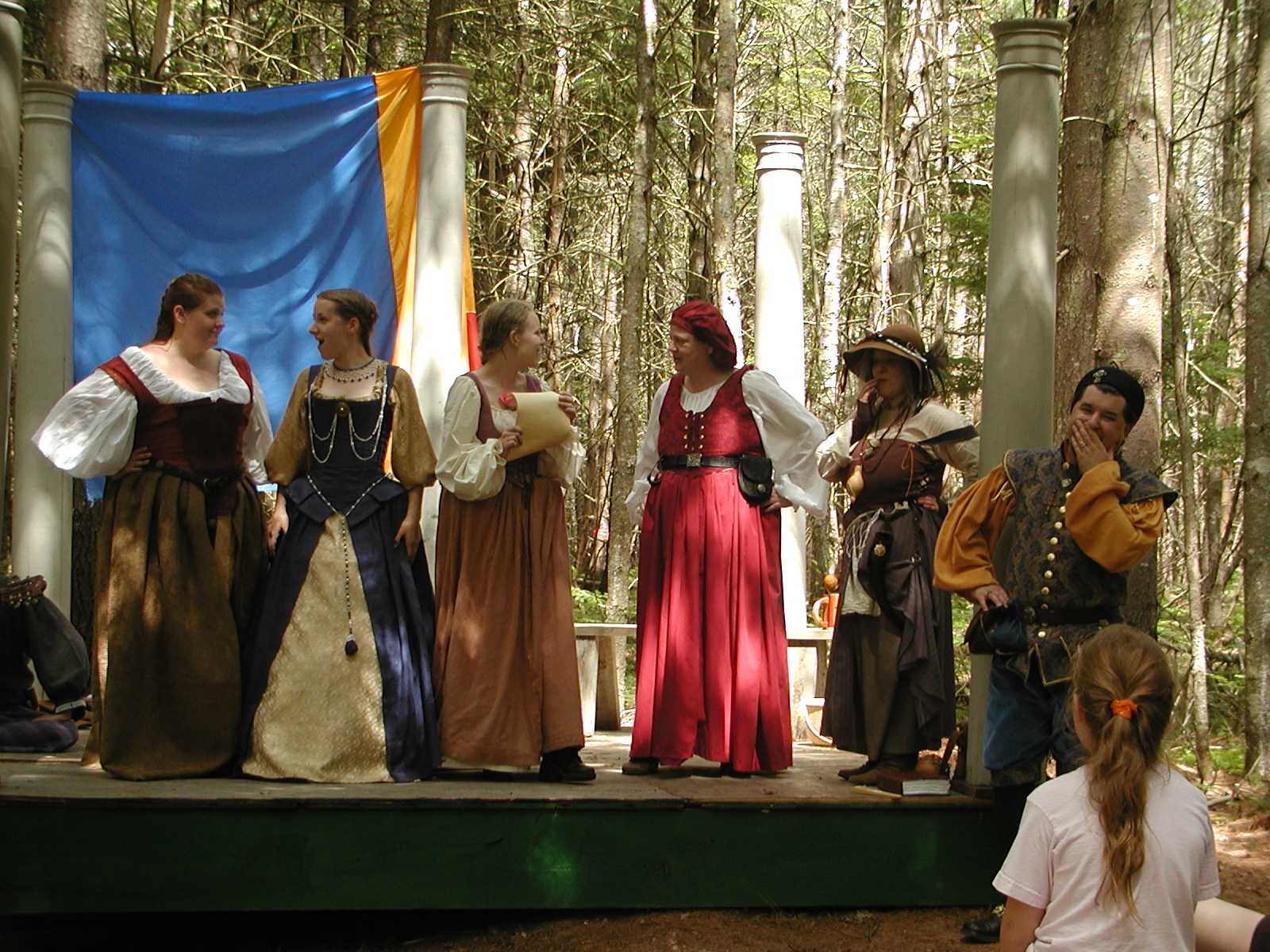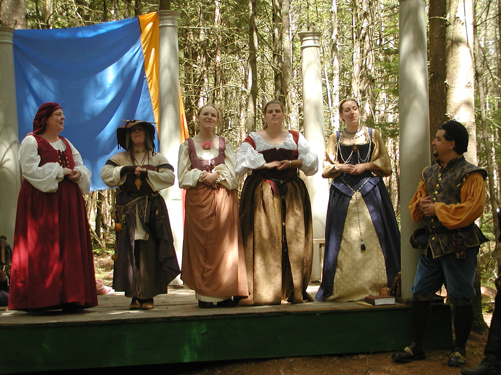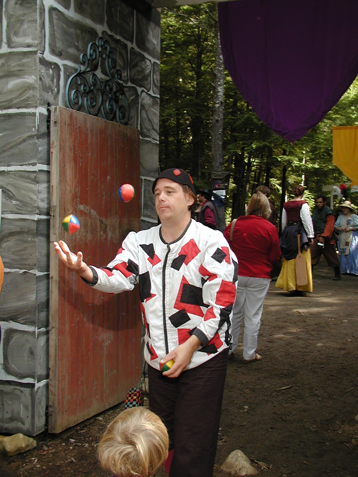 Picture #8: Faire folk Small: 600x823, 87,315 bytes (86K), (html file) Large: 1200x1600, 1,169,592 bytes (1.1M), (html file) Copyright, Michael Meissner 2004, All rights reserved Olympus C-2100UZ camera f/2.8, ISO 100, 1/160 sec, 14.7mm, auto mode, SHQ, sunny, matrix metering 35mm equivalent focal length 82.0mm Extra equipment used: Promaster 5750DX flash Taken by Michael Meissner on July 11, 2004 10:22:57 Last modified on July 14, 2004 at 23:12 This is picture MERF-2004-CAST-02. |
