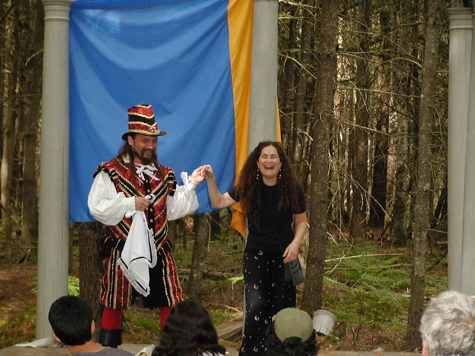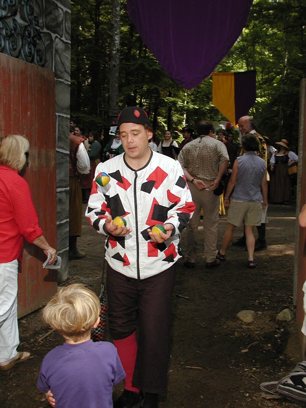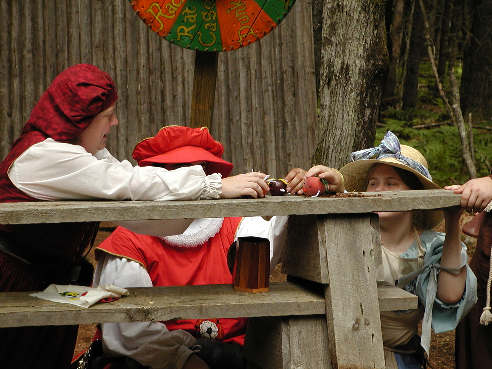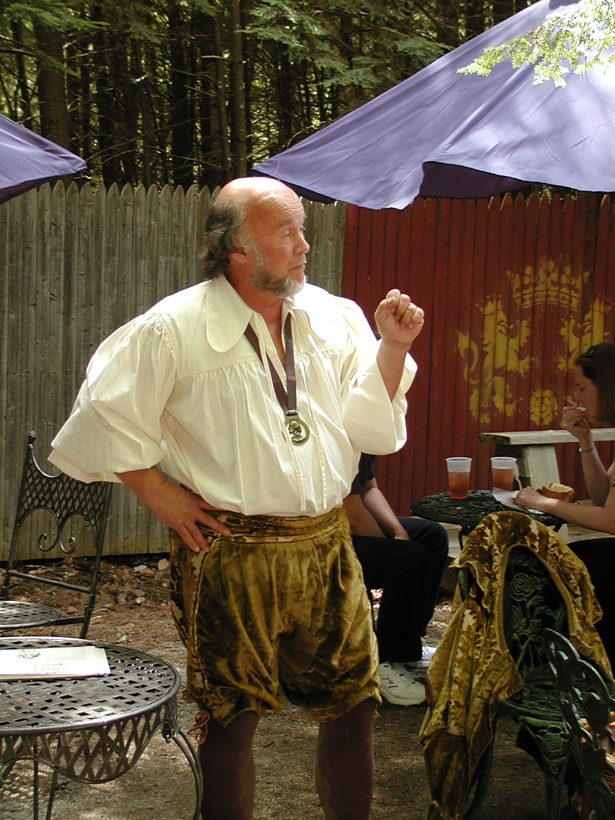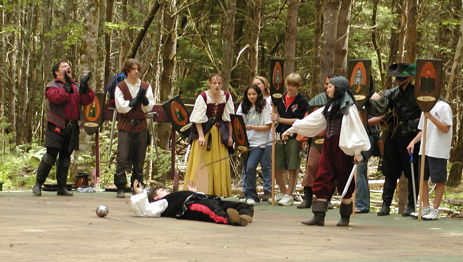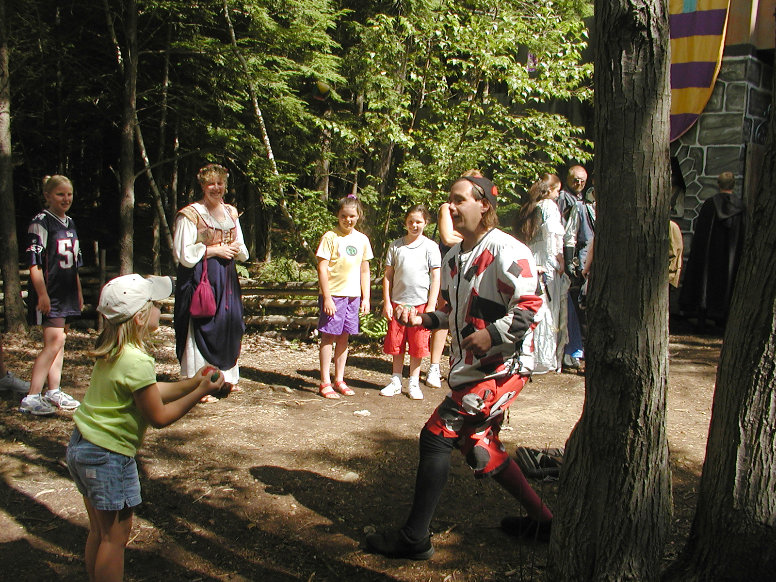 Picture #8: Faire folk Small: 600x823, 87,315 bytes (86K), (html file) Large: 1200x1600, 1,169,592 bytes (1.1M), (html file) Copyright, Michael Meissner 2004, All rights reserved Olympus C-2100UZ camera f/2.8, ISO 100, 1/160 sec, 14.7mm, auto mode, SHQ, sunny, matrix metering 35mm equivalent focal length 82.0mm Extra equipment used: Promaster 5750DX flash Taken by Michael Meissner on July 11, 2004 10:22:57 Last modified on July 14, 2004 at 23:12 This is picture MERF-2004-CAST-02. |