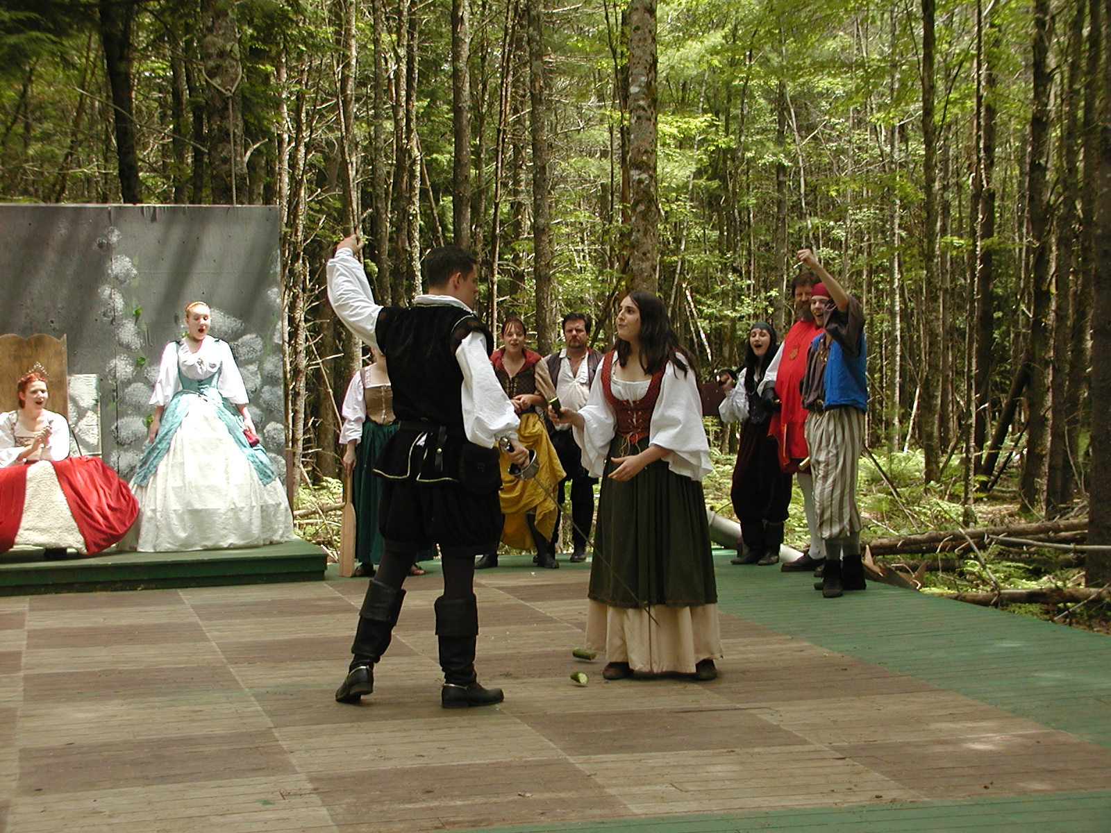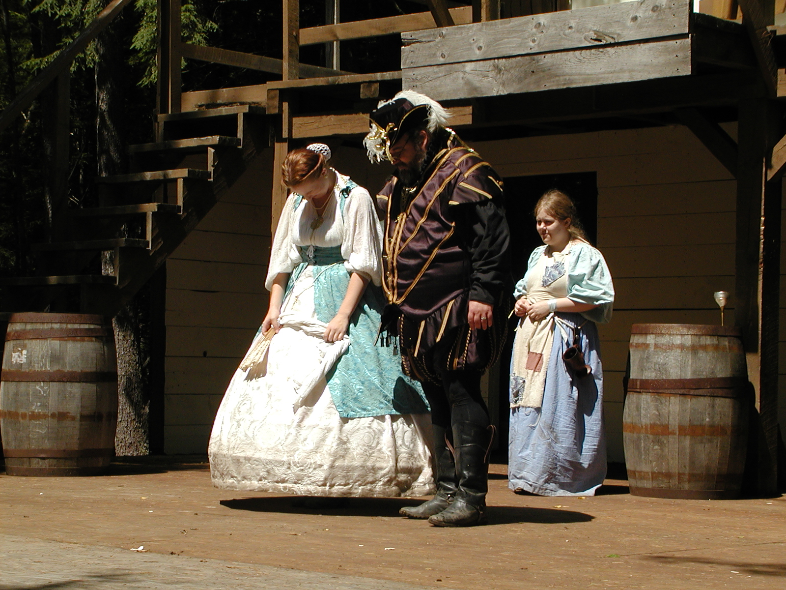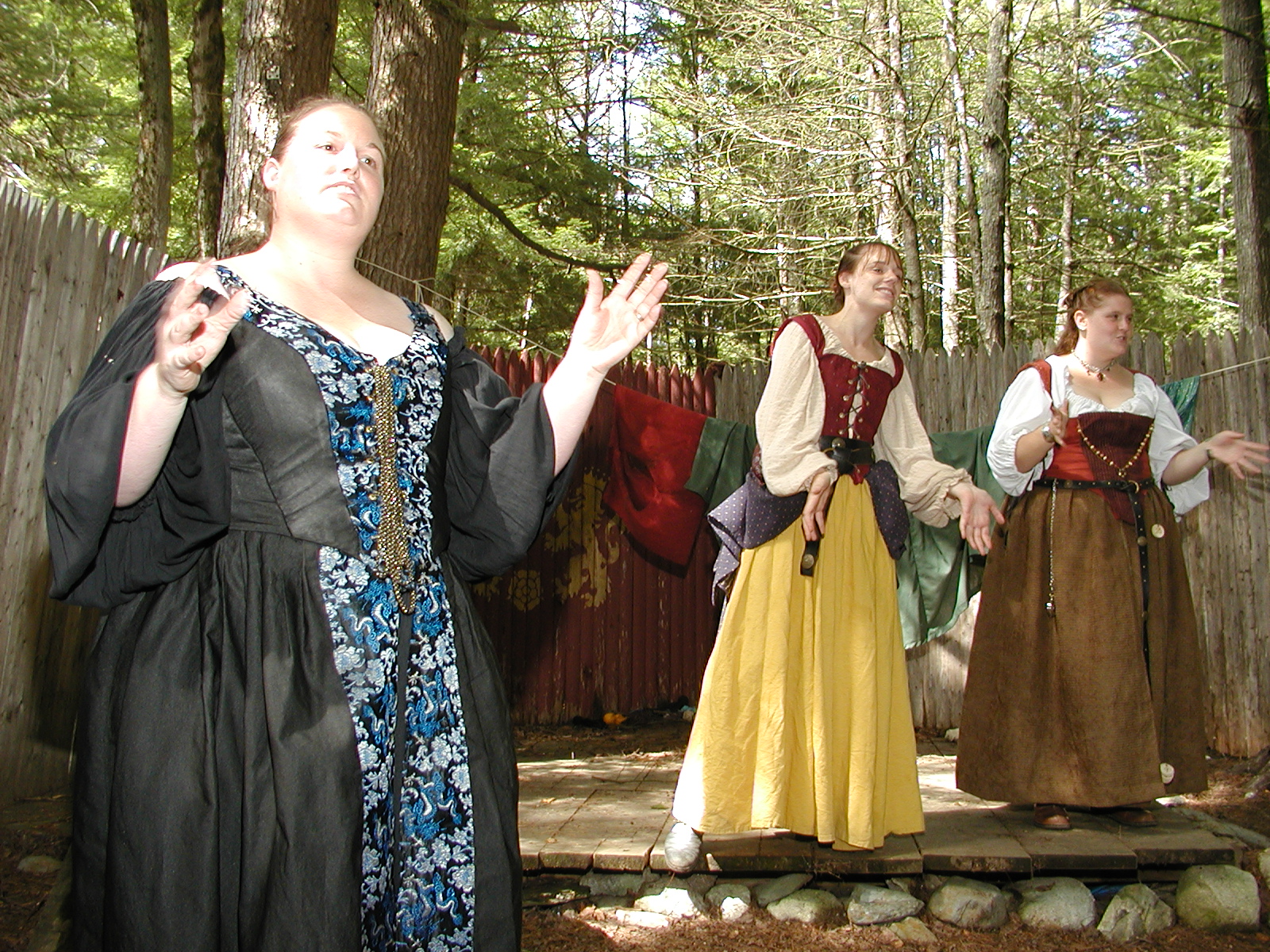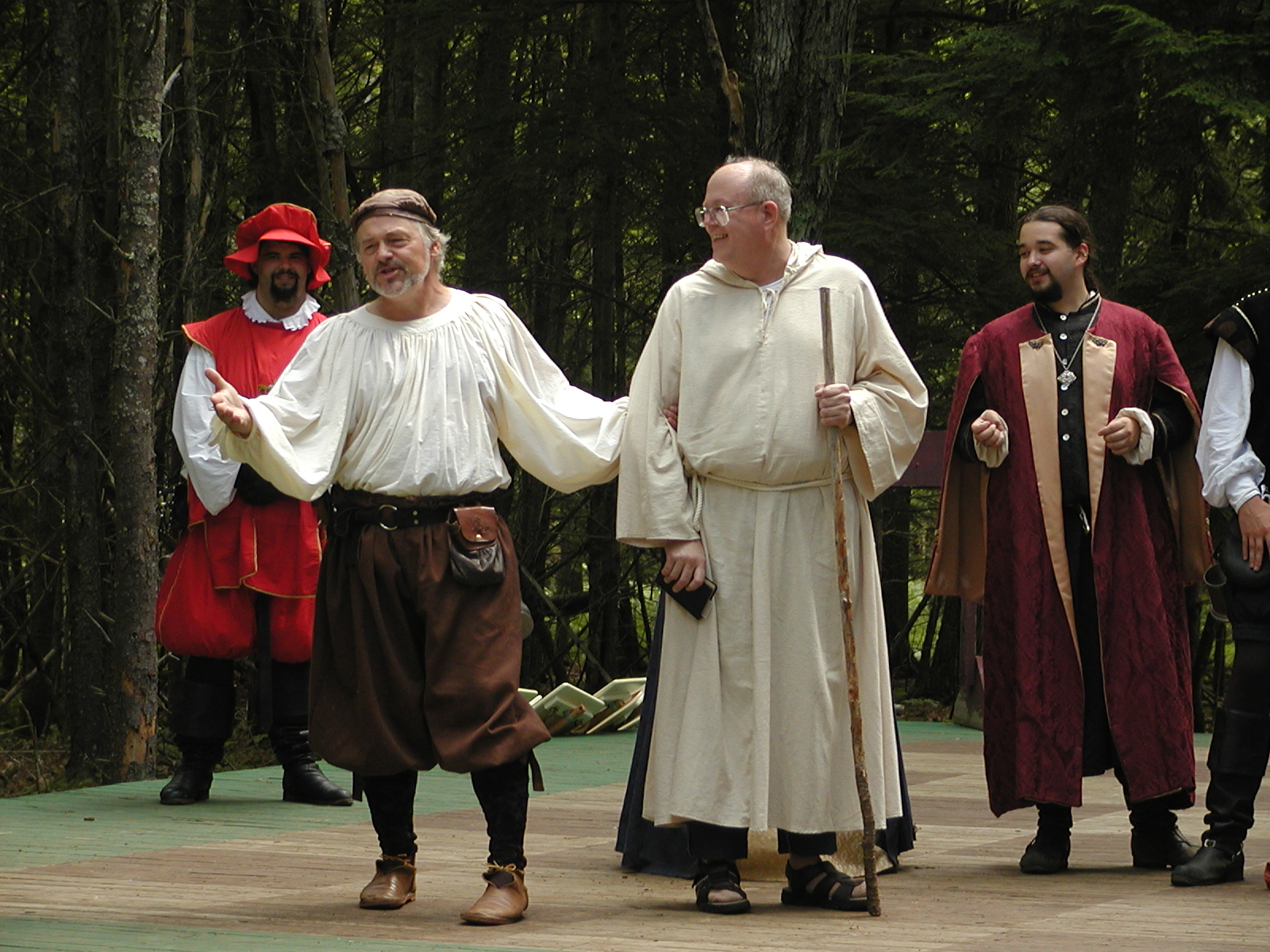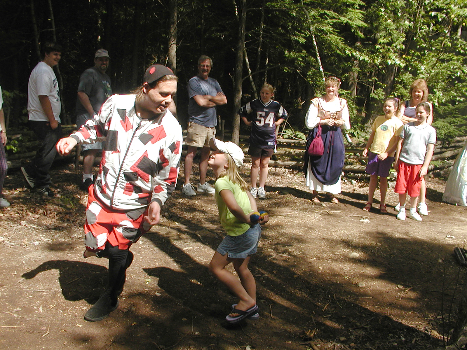 Picture #8: Faire folk Small: 600x823, 87,315 bytes (86K), (html file) Large: 1200x1600, 1,169,592 bytes (1.1M), (html file) Copyright, Michael Meissner 2004, All rights reserved Olympus C-2100UZ camera f/2.8, ISO 100, 1/160 sec, 14.7mm, auto mode, SHQ, sunny, matrix metering 35mm equivalent focal length 82.0mm Extra equipment used: Promaster 5750DX flash Taken by Michael Meissner on July 11, 2004 10:22:57 Last modified on July 14, 2004 at 23:12 This is picture MERF-2004-CAST-02. |