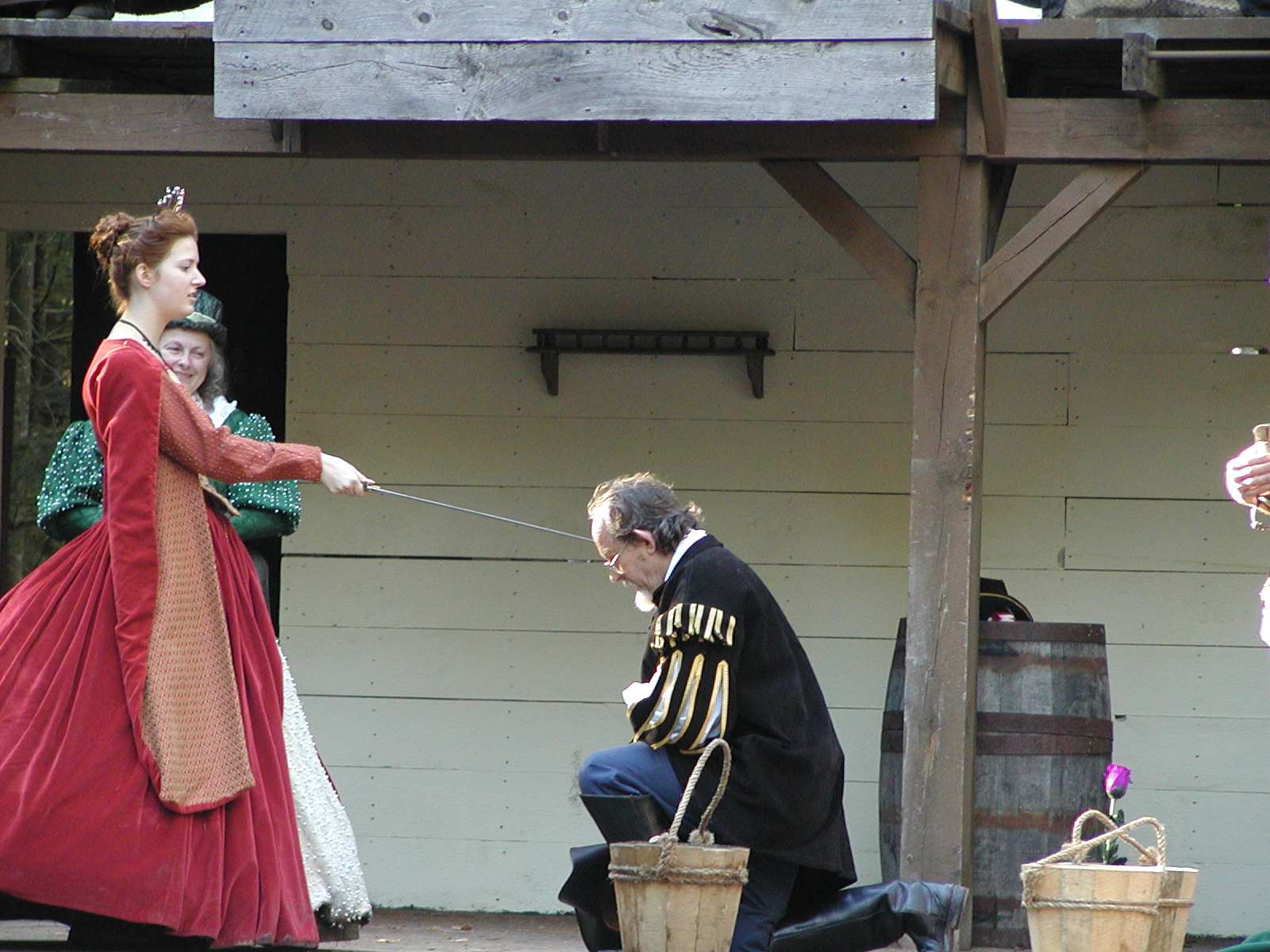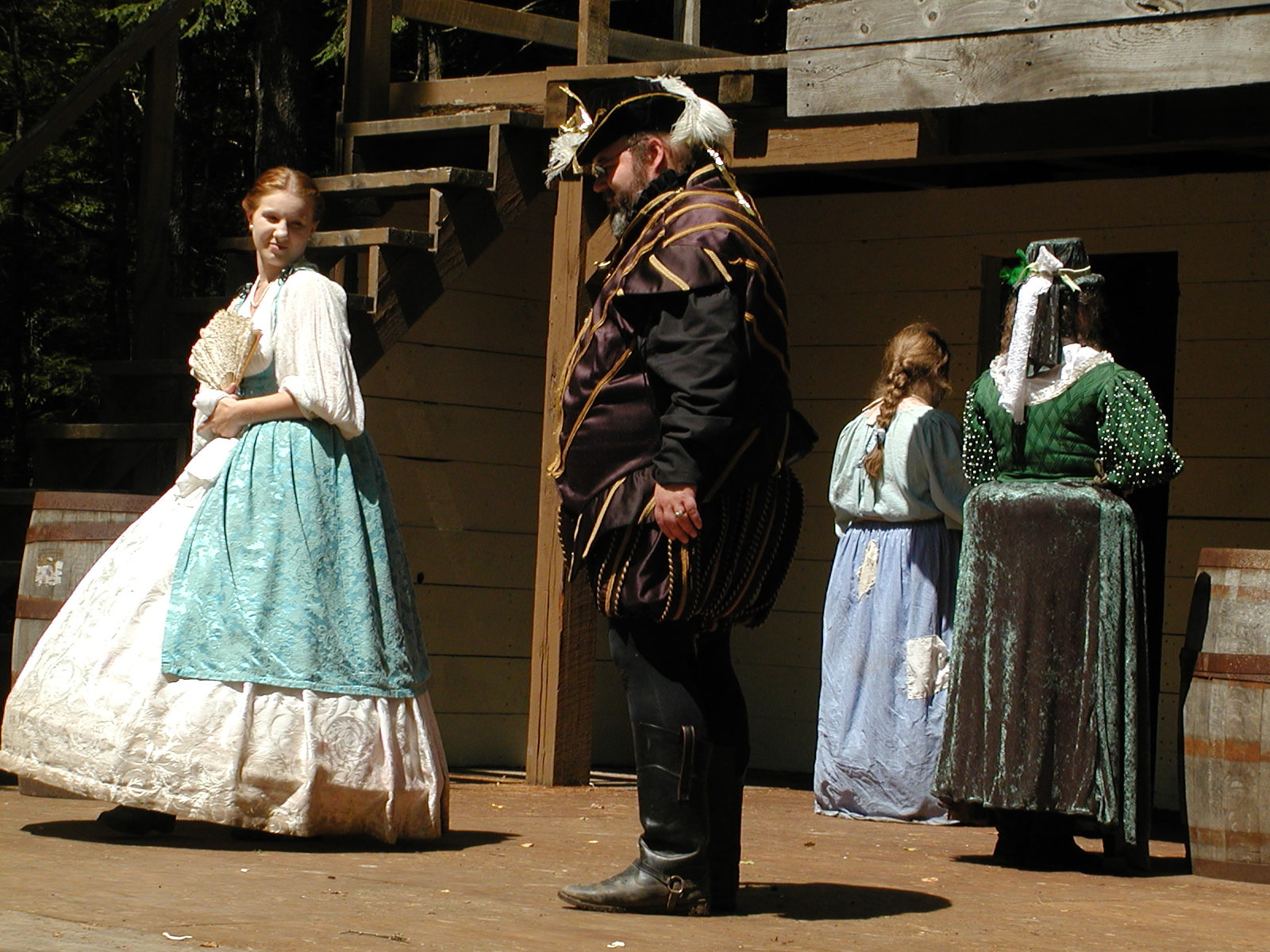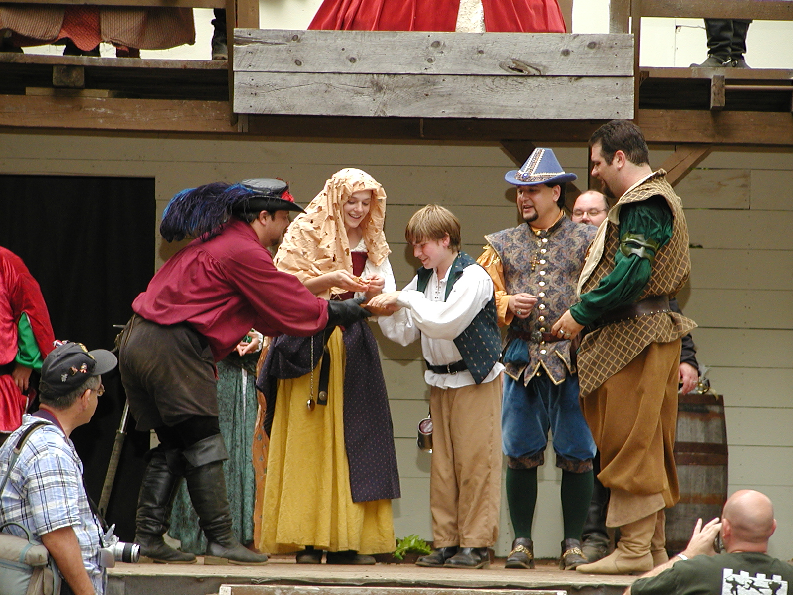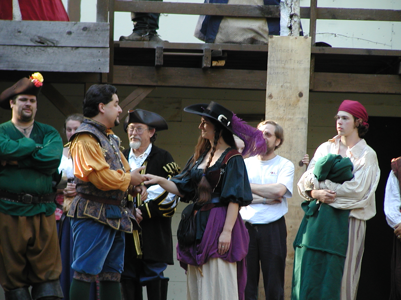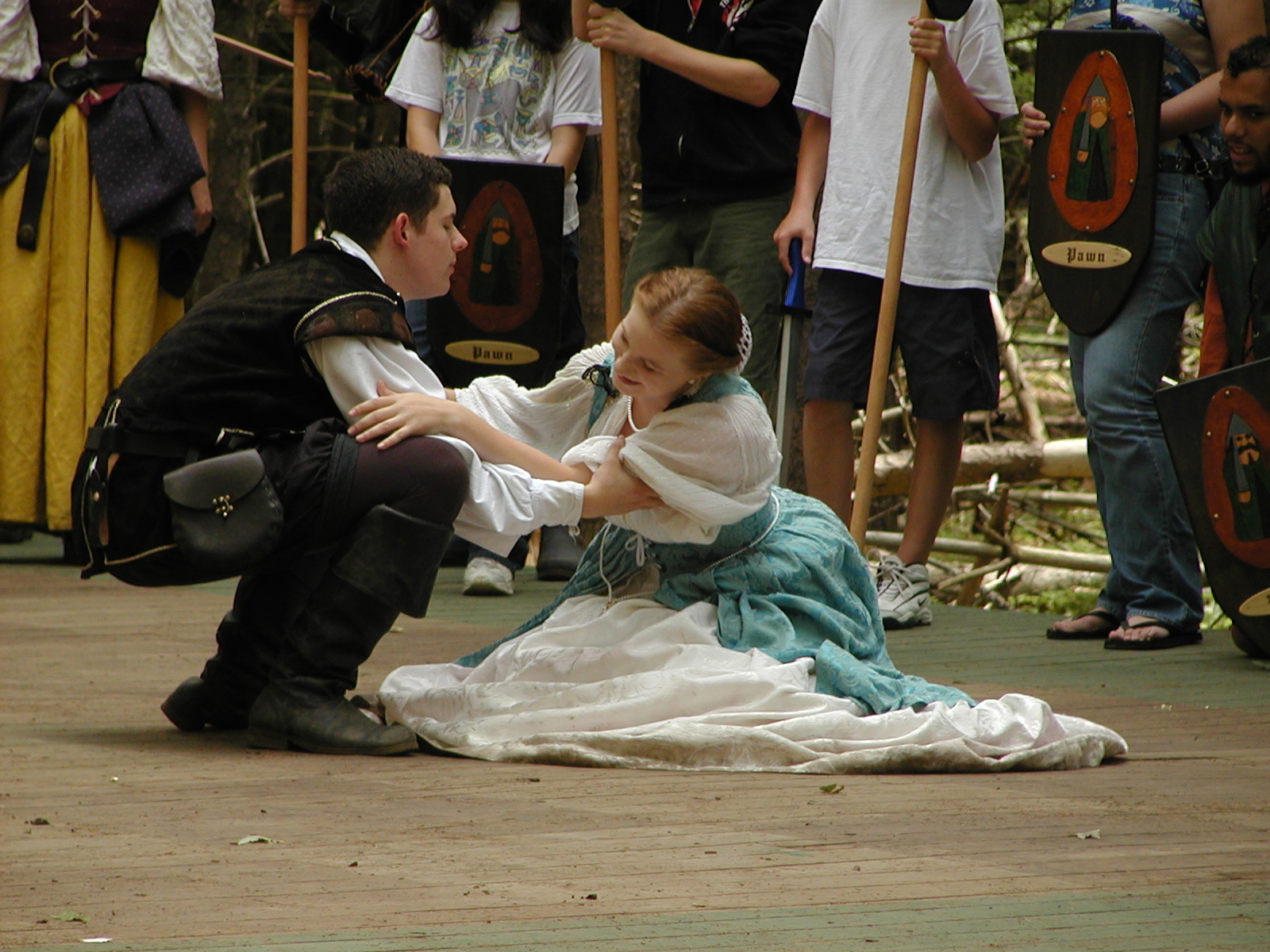 Picture #8: Faire folk Small: 600x823, 87,315 bytes (86K), (html file) Large: 1200x1600, 1,169,592 bytes (1.1M), (html file) Copyright, Michael Meissner 2004, All rights reserved Olympus C-2100UZ camera f/2.8, ISO 100, 1/160 sec, 14.7mm, auto mode, SHQ, sunny, matrix metering 35mm equivalent focal length 82.0mm Extra equipment used: Promaster 5750DX flash Taken by Michael Meissner on July 11, 2004 10:22:57 Last modified on July 14, 2004 at 23:12 This is picture MERF-2004-CAST-02. |