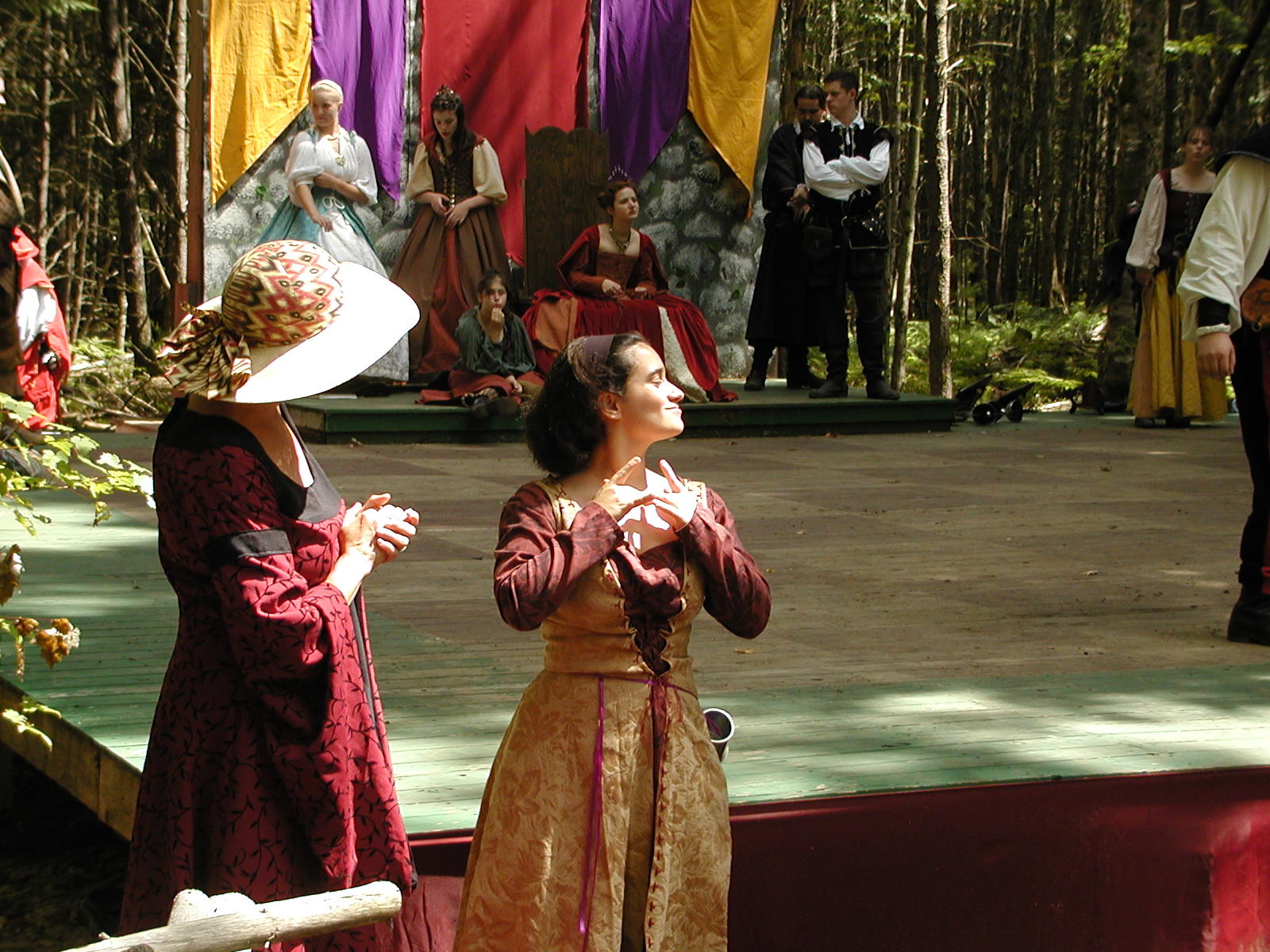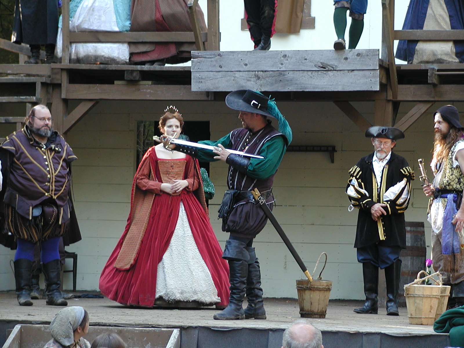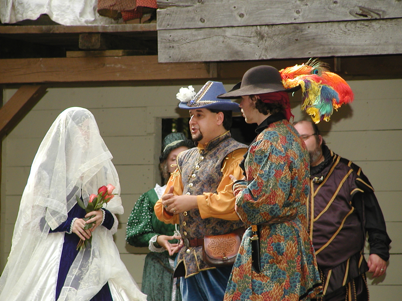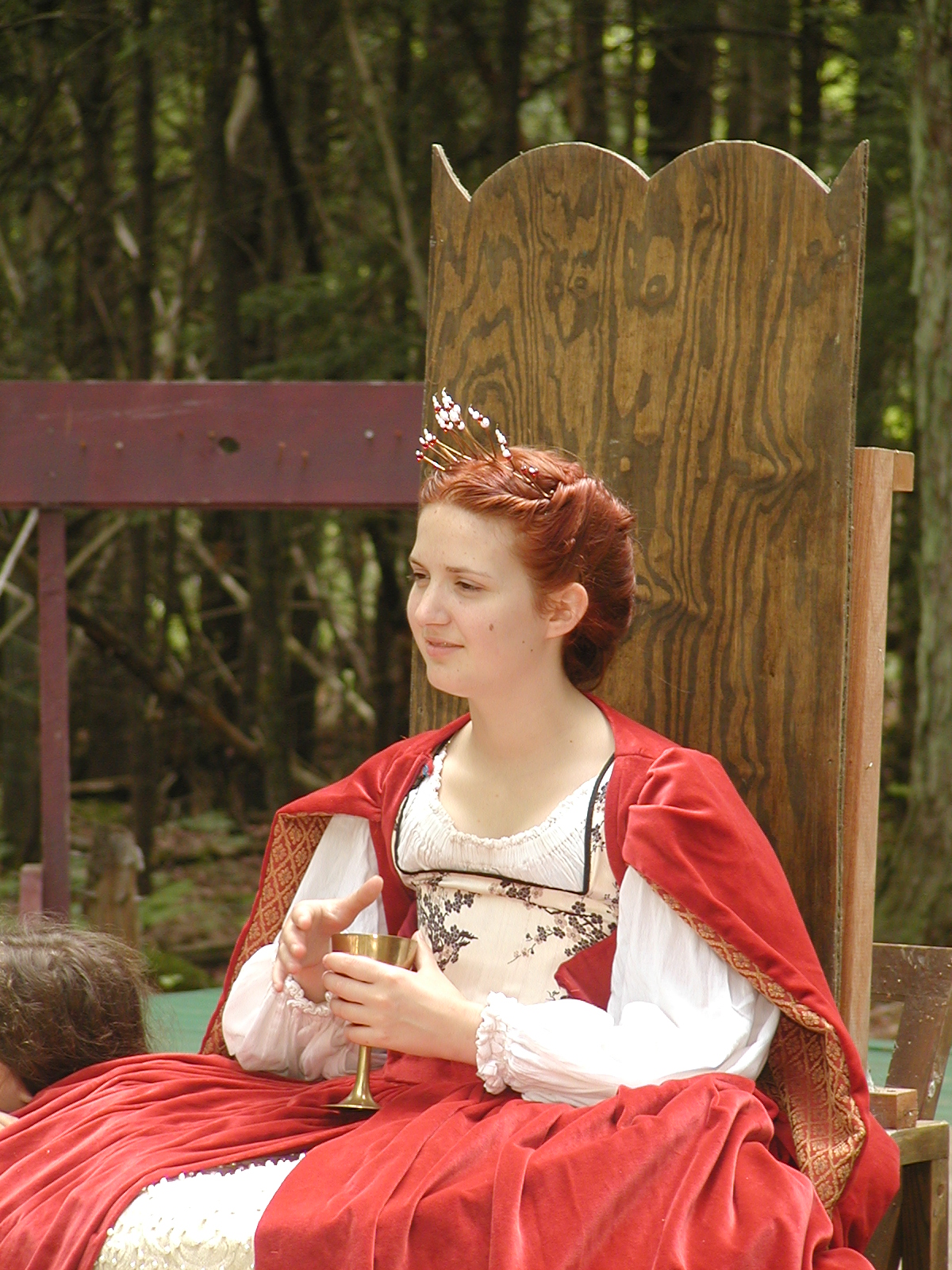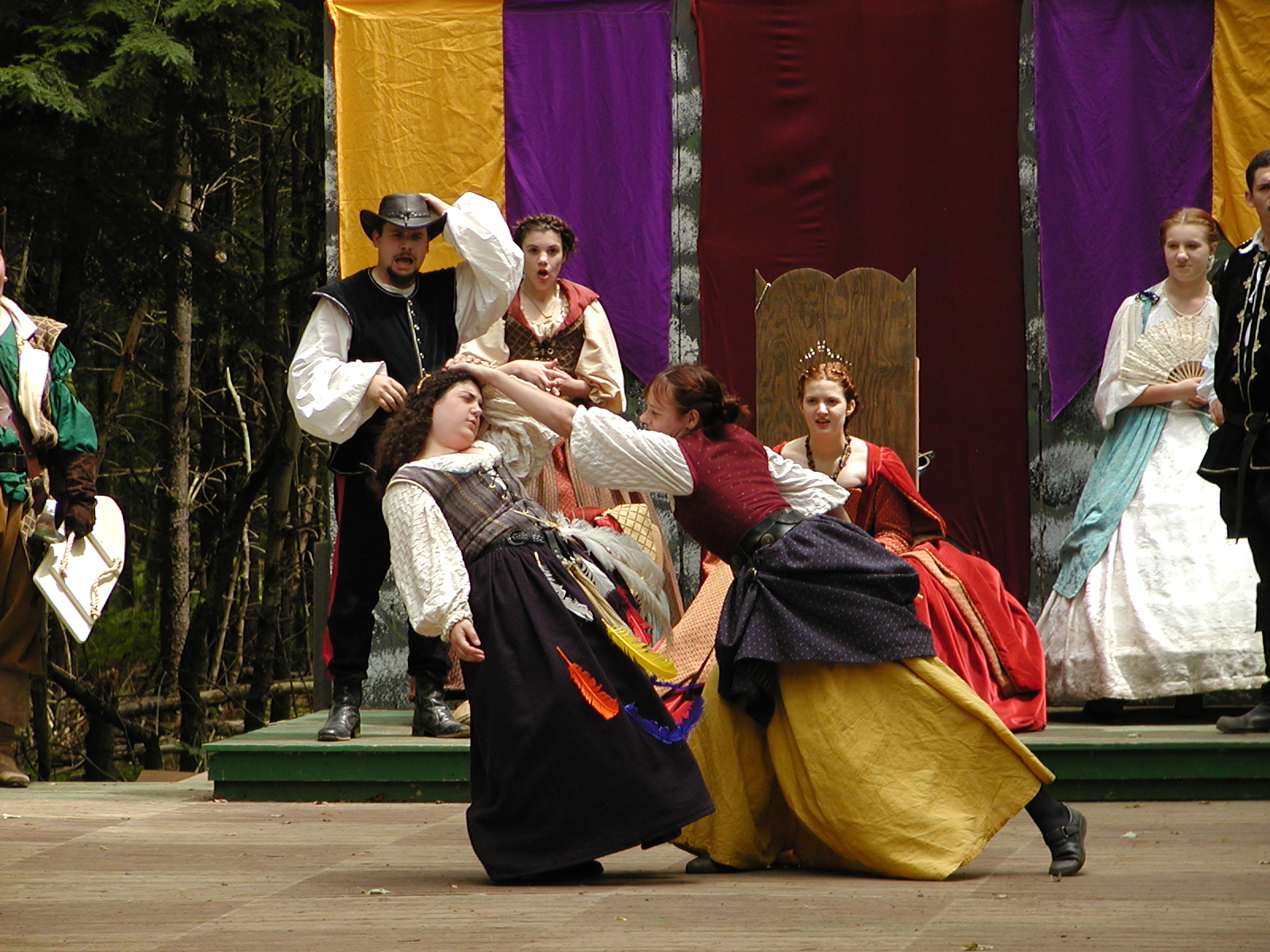 Picture #8: Faire folk Small: 600x823, 87,315 bytes (86K), (html file) Large: 1200x1600, 1,169,592 bytes (1.1M), (html file) Copyright, Michael Meissner 2004, All rights reserved Olympus C-2100UZ camera f/2.8, ISO 100, 1/160 sec, 14.7mm, auto mode, SHQ, sunny, matrix metering 35mm equivalent focal length 82.0mm Extra equipment used: Promaster 5750DX flash Taken by Michael Meissner on July 11, 2004 10:22:57 Last modified on July 14, 2004 at 23:12 This is picture MERF-2004-CAST-02. |