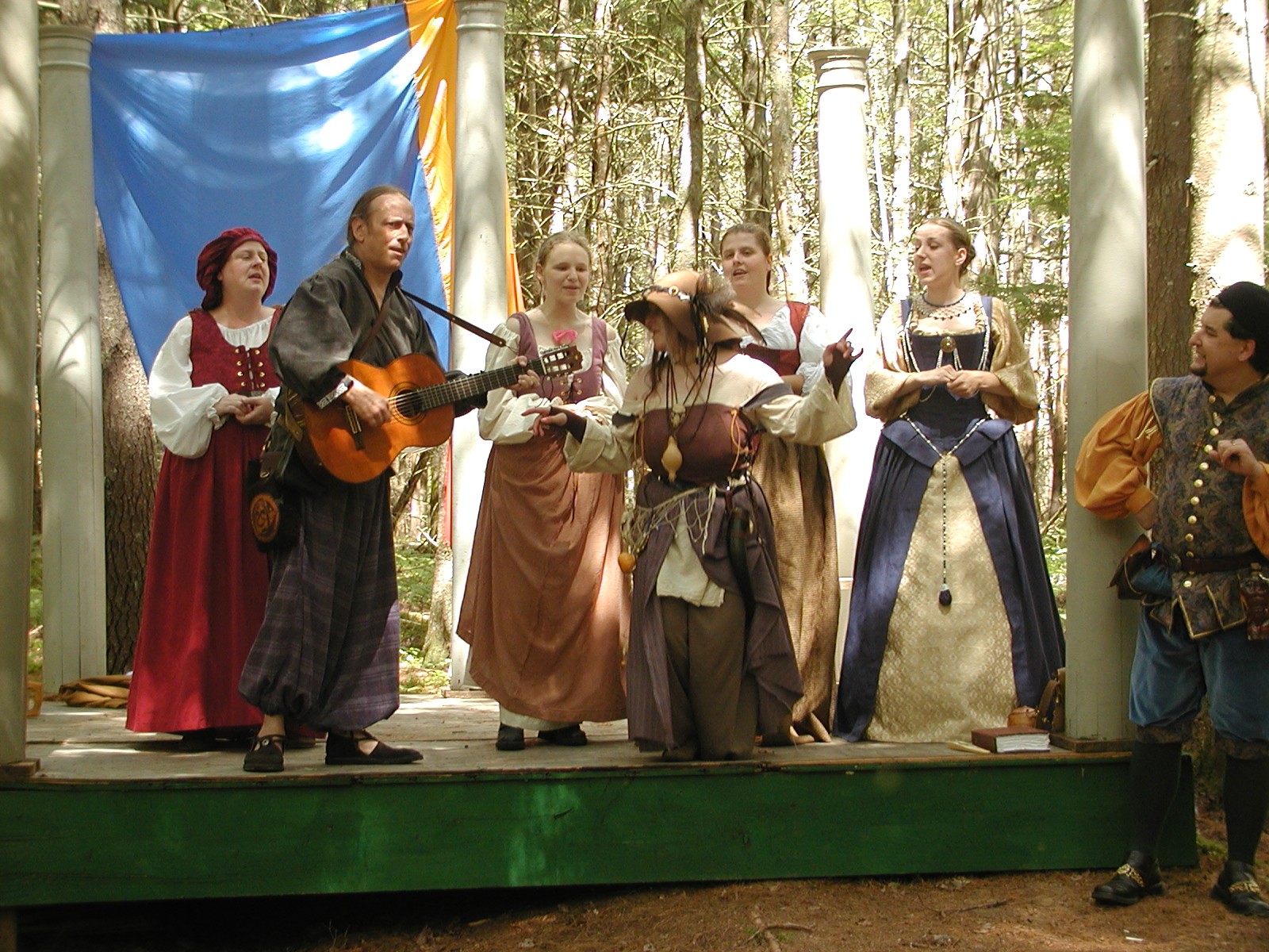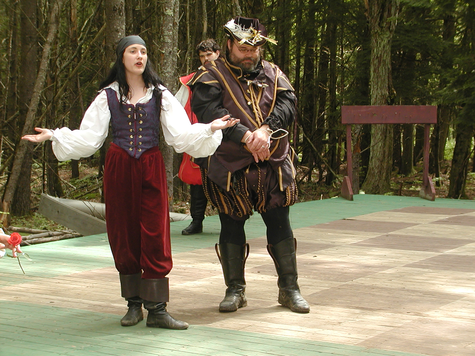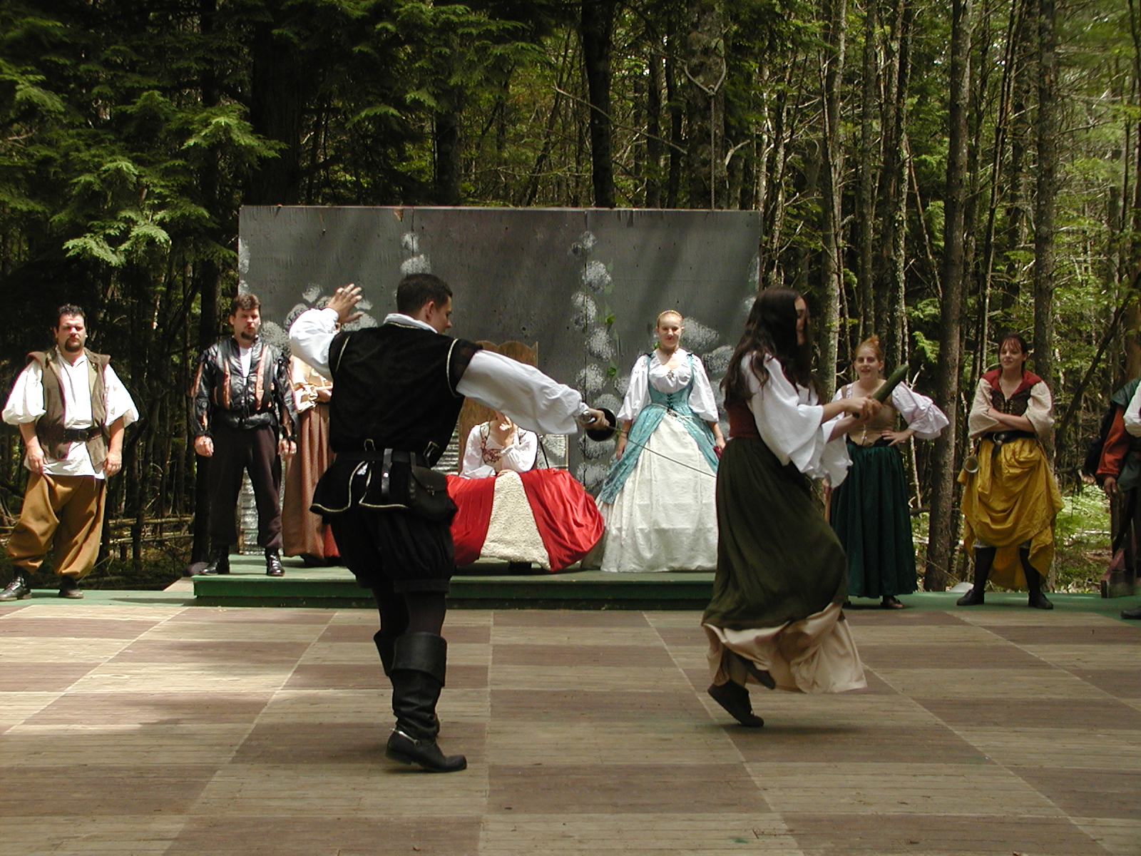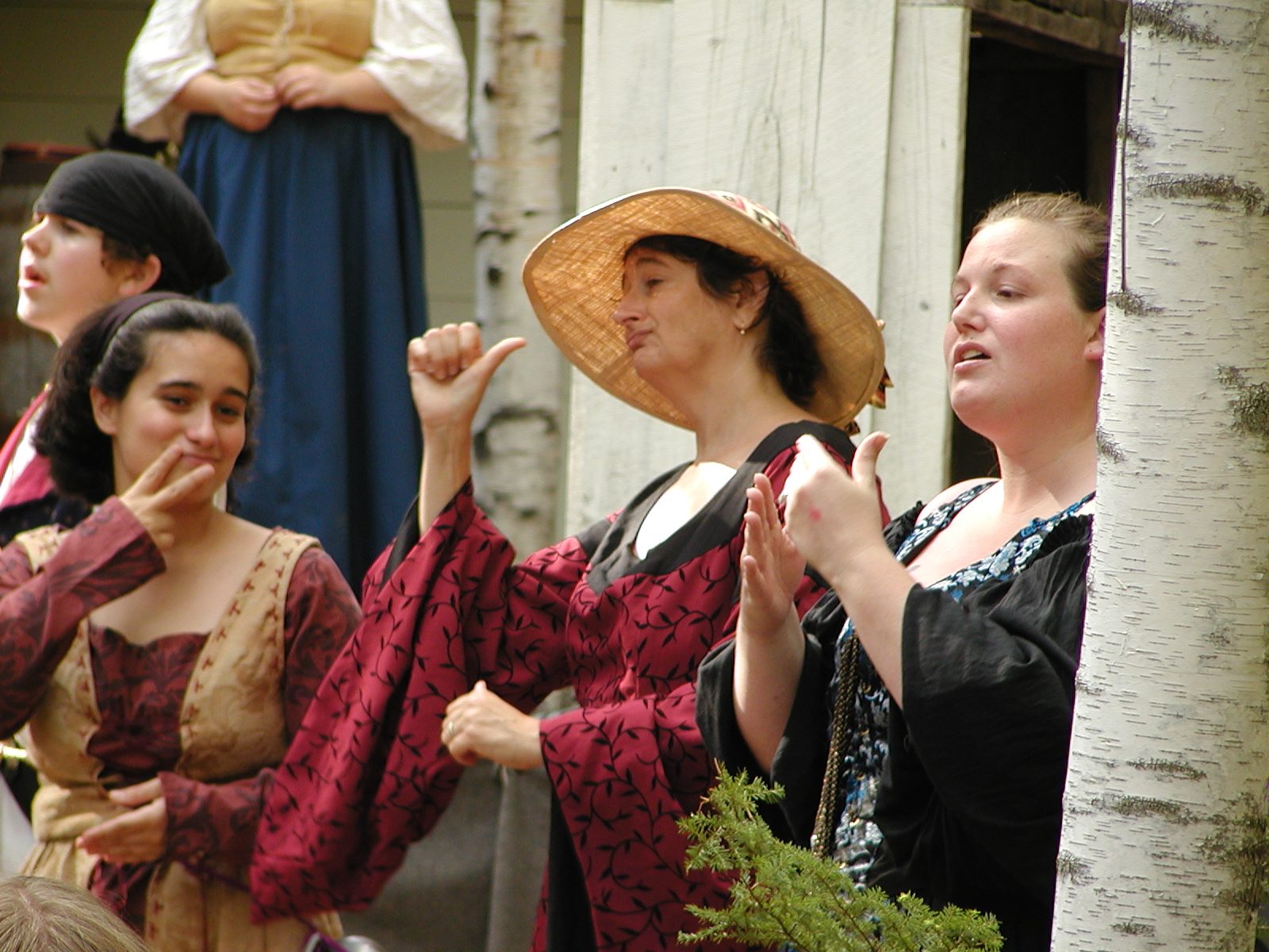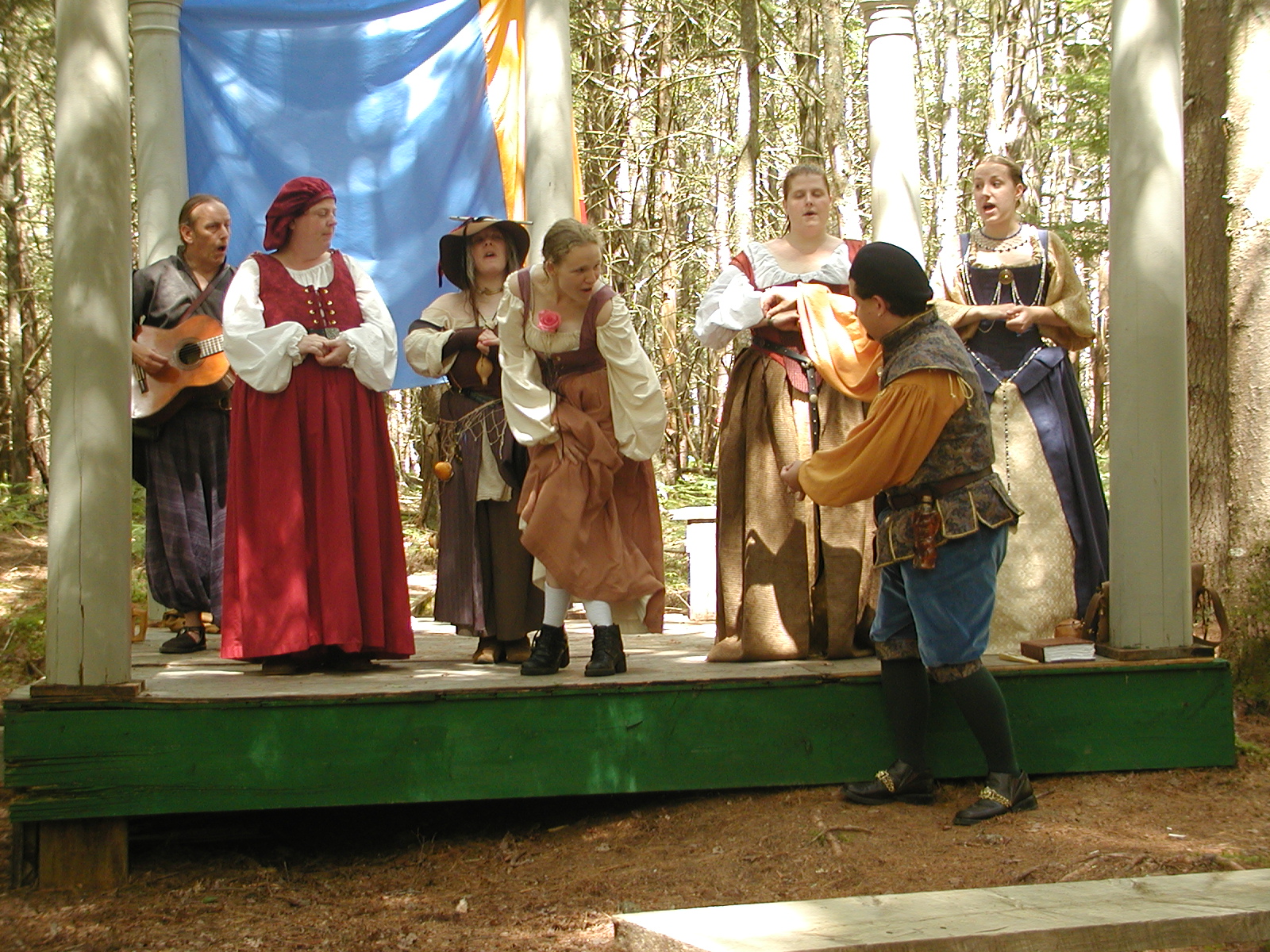 Picture #8: Faire folk Small: 600x823, 87,315 bytes (86K), (html file) Large: 1200x1600, 1,169,592 bytes (1.1M), (html file) Copyright, Michael Meissner 2004, All rights reserved Olympus C-2100UZ camera f/2.8, ISO 100, 1/160 sec, 14.7mm, auto mode, SHQ, sunny, matrix metering 35mm equivalent focal length 82.0mm Extra equipment used: Promaster 5750DX flash Taken by Michael Meissner on July 11, 2004 10:22:57 Last modified on July 14, 2004 at 23:12 This is picture MERF-2004-CAST-02. |