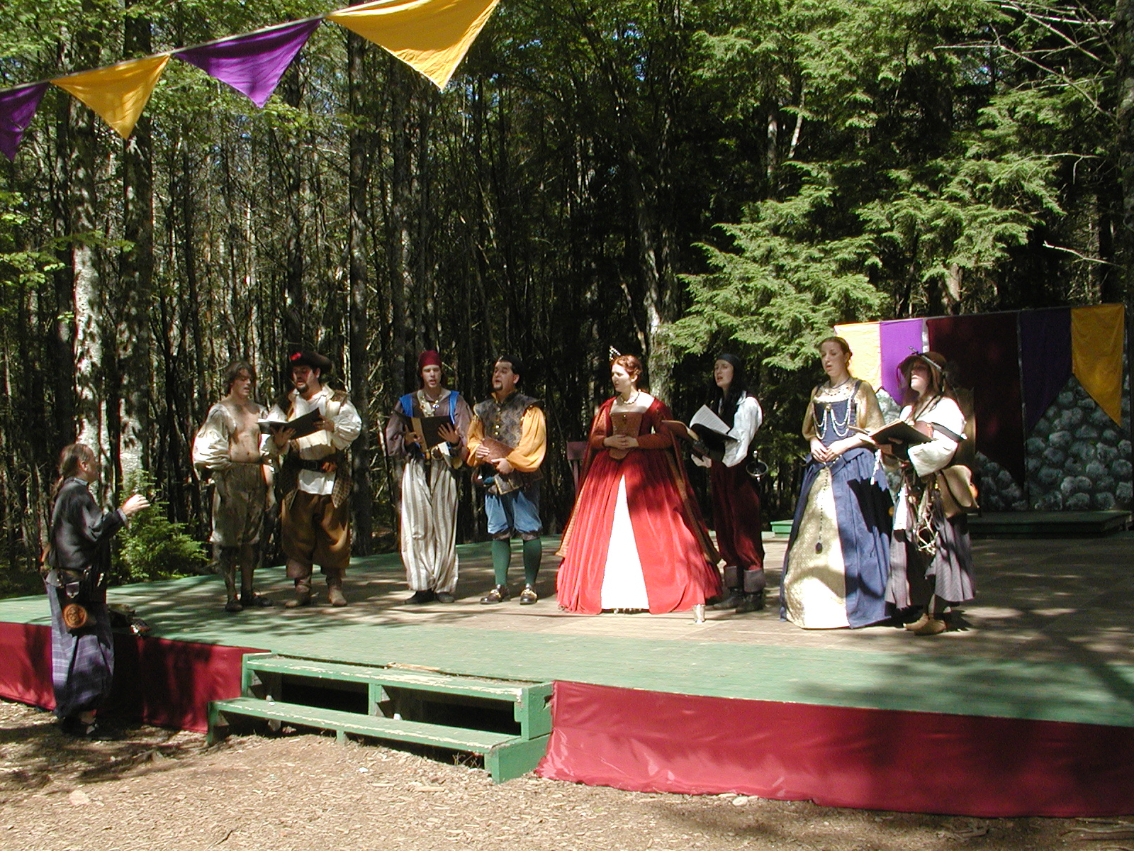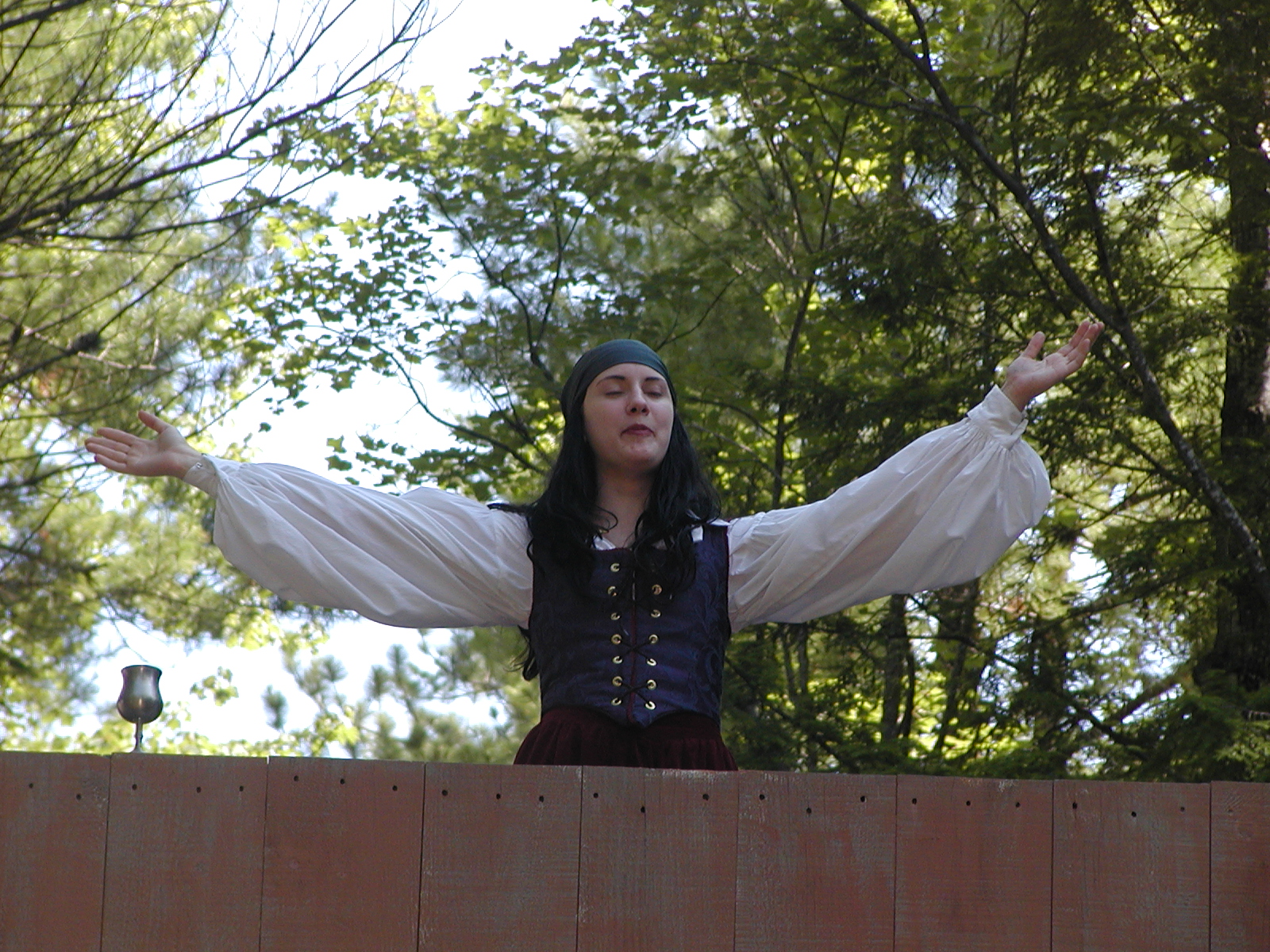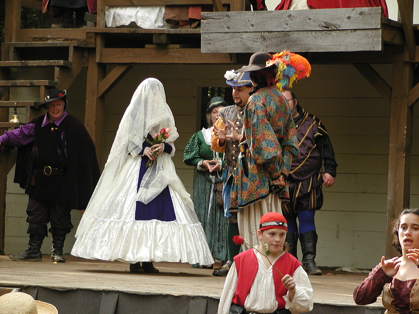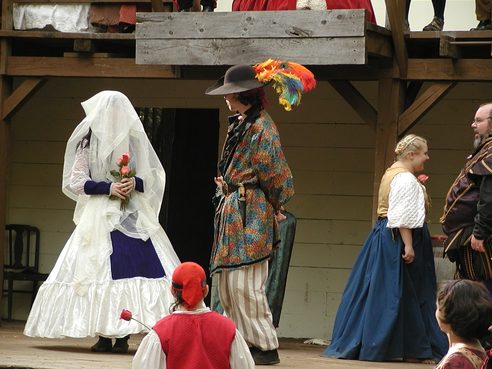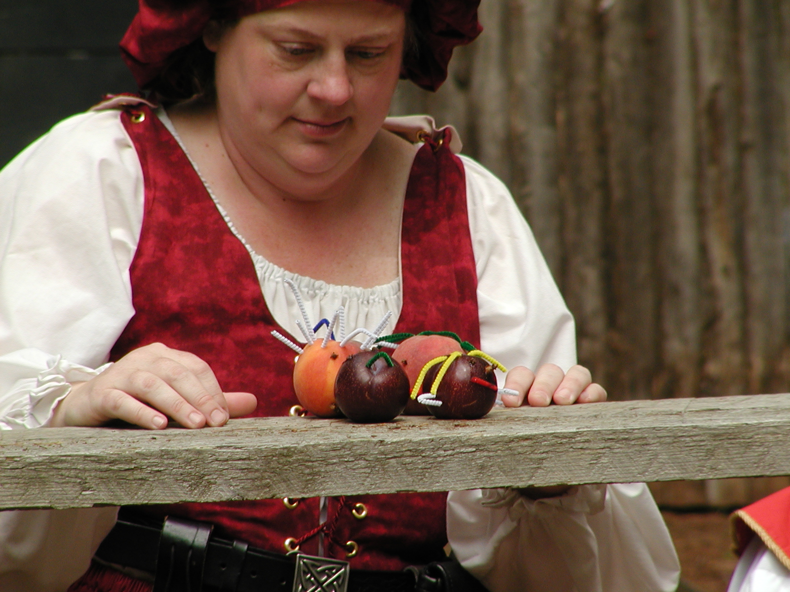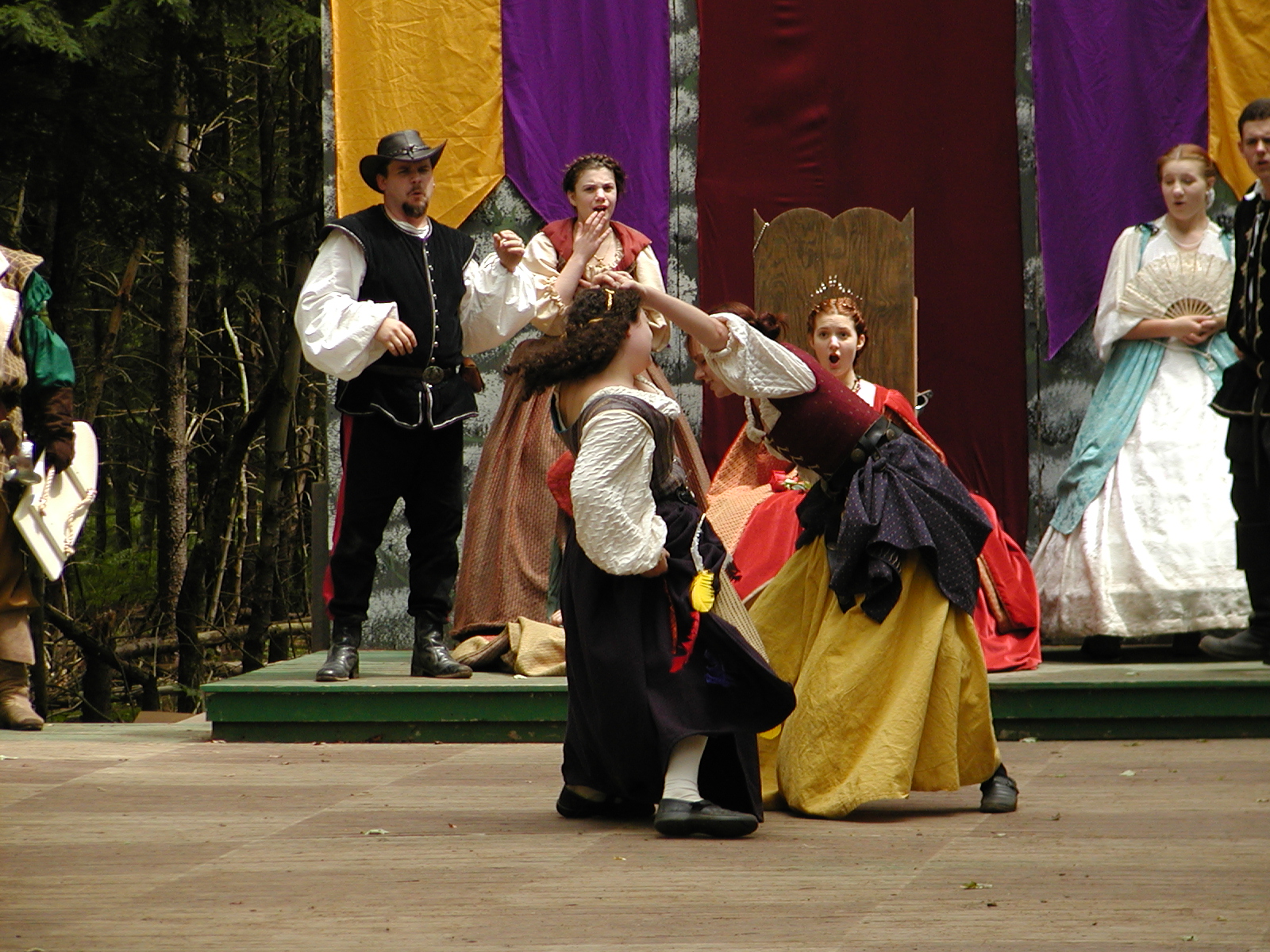 Picture #8: Faire folk Small: 600x823, 87,315 bytes (86K), (html file) Large: 1200x1600, 1,169,592 bytes (1.1M), (html file) Copyright, Michael Meissner 2004, All rights reserved Olympus C-2100UZ camera f/2.8, ISO 100, 1/160 sec, 14.7mm, auto mode, SHQ, sunny, matrix metering 35mm equivalent focal length 82.0mm Extra equipment used: Promaster 5750DX flash Taken by Michael Meissner on July 11, 2004 10:22:57 Last modified on July 14, 2004 at 23:12 This is picture MERF-2004-CAST-02. |