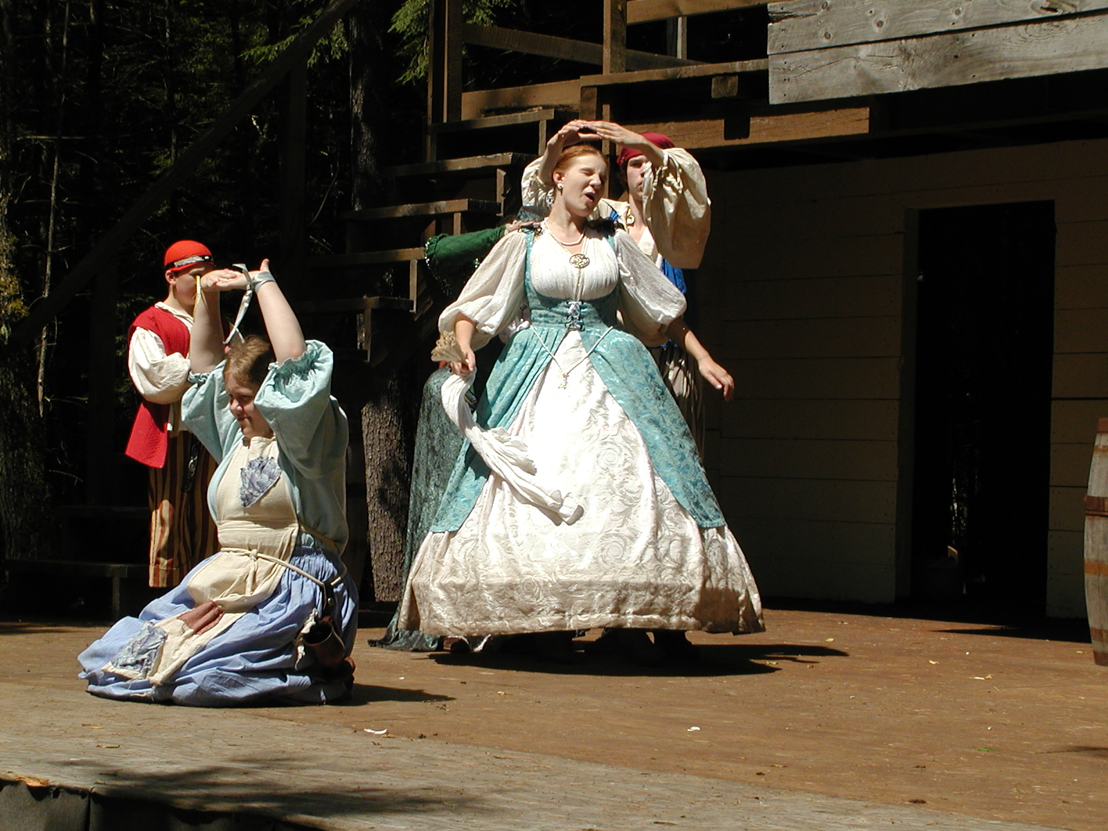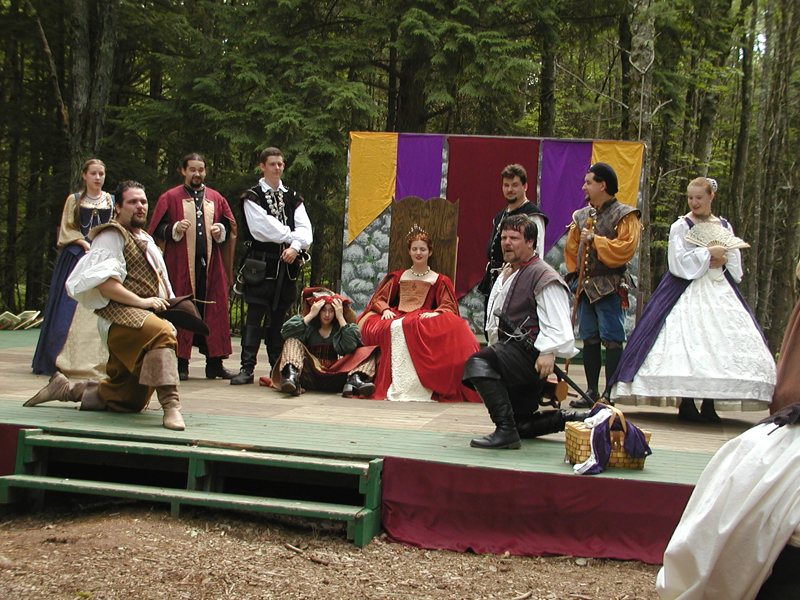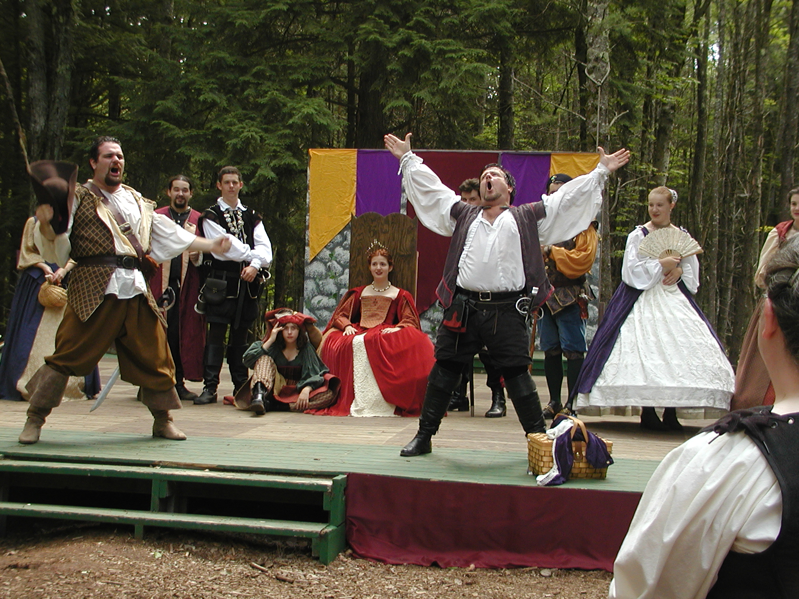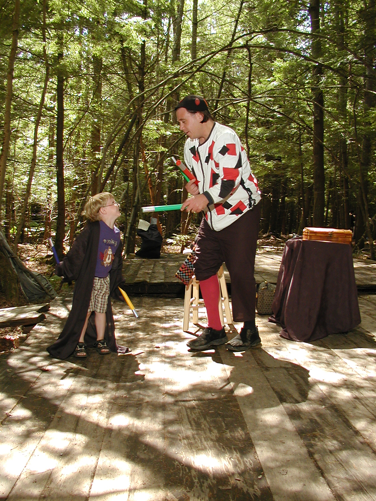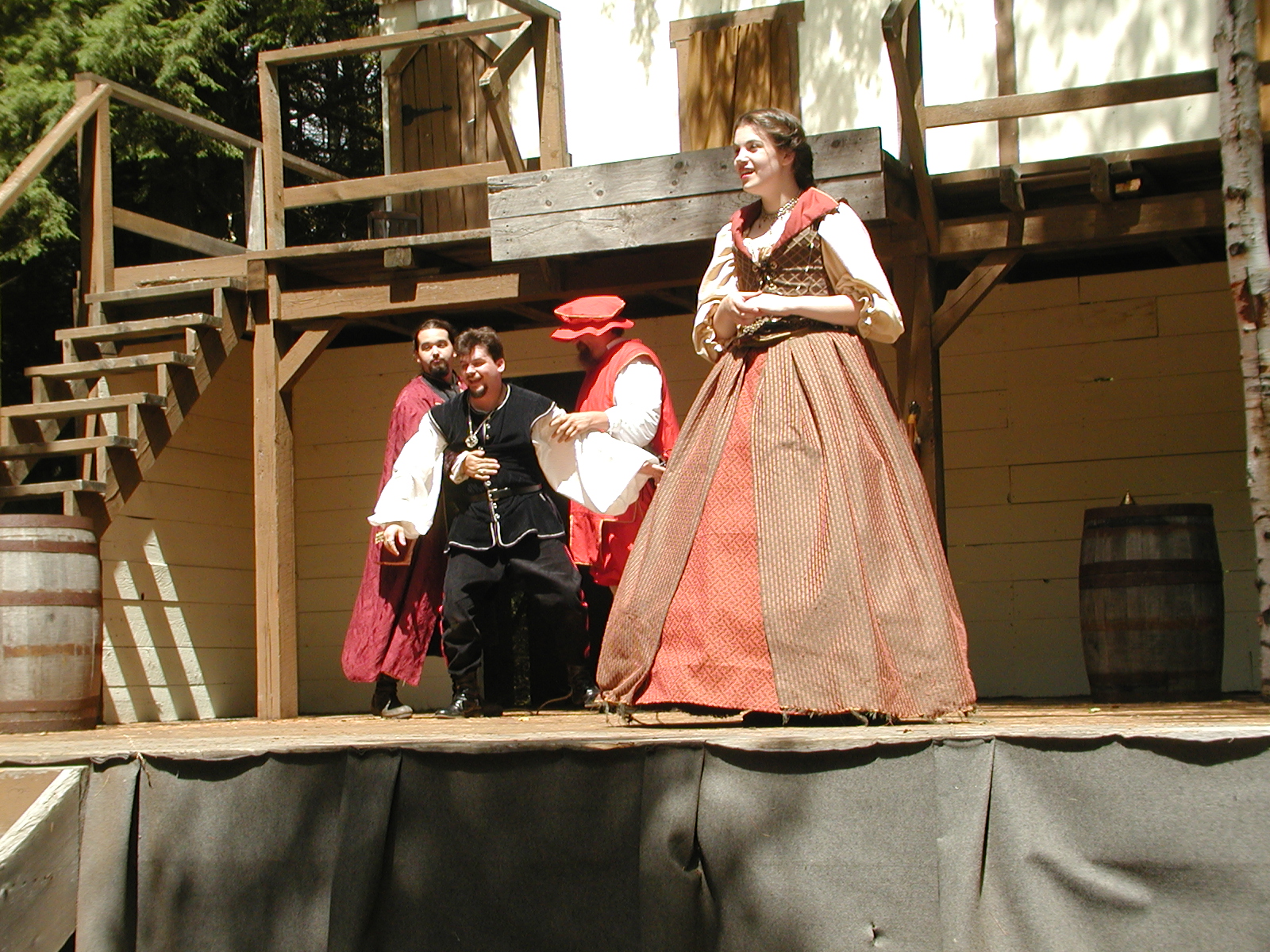 Picture #8: Faire folk Small: 600x823, 87,315 bytes (86K), (html file) Large: 1200x1600, 1,169,592 bytes (1.1M), (html file) Copyright, Michael Meissner 2004, All rights reserved Olympus C-2100UZ camera f/2.8, ISO 100, 1/160 sec, 14.7mm, auto mode, SHQ, sunny, matrix metering 35mm equivalent focal length 82.0mm Extra equipment used: Promaster 5750DX flash Taken by Michael Meissner on July 11, 2004 10:22:57 Last modified on July 14, 2004 at 23:12 This is picture MERF-2004-CAST-02. |