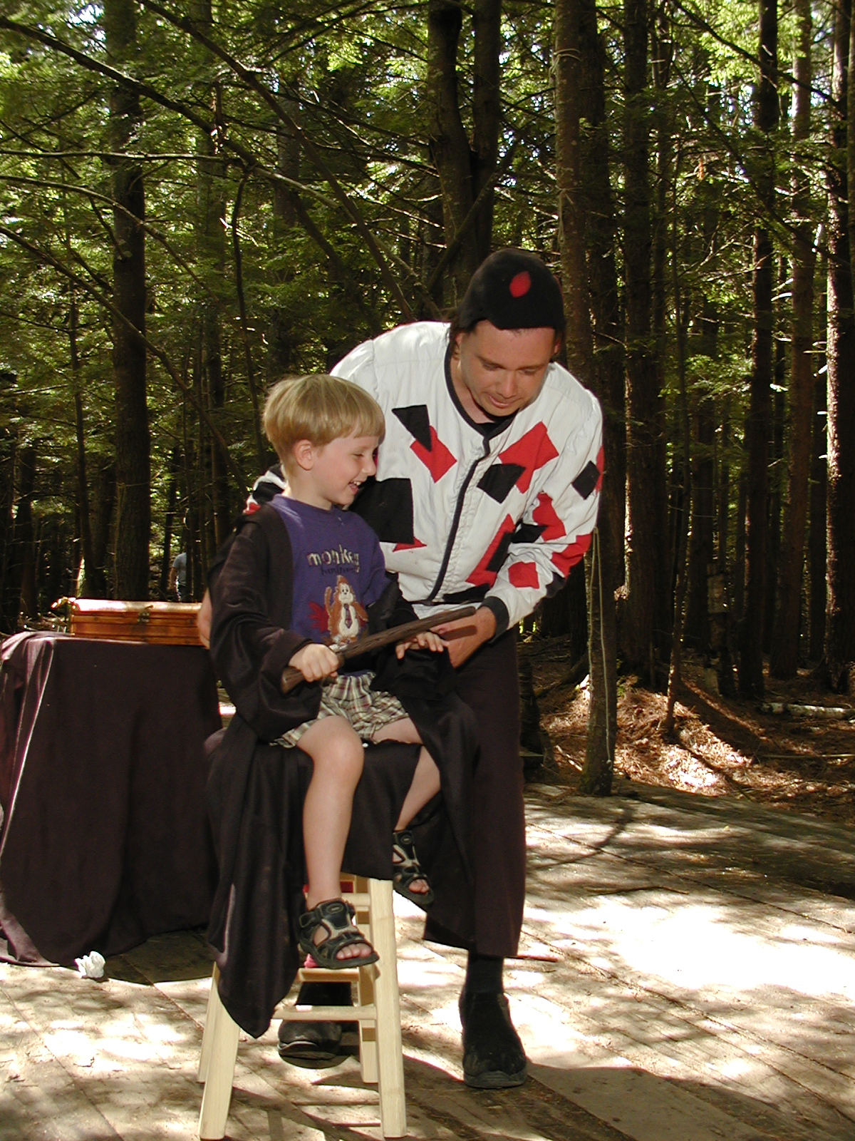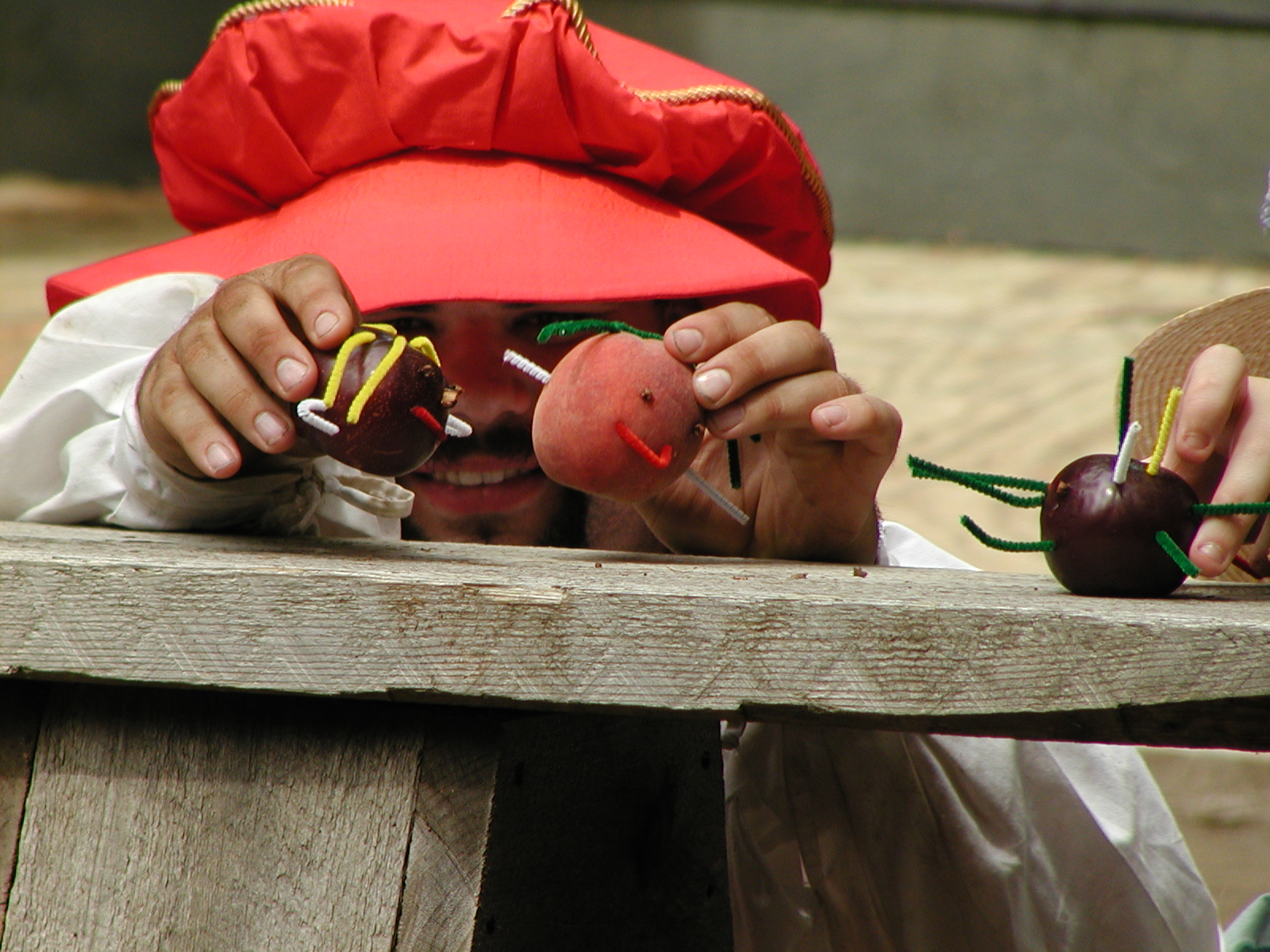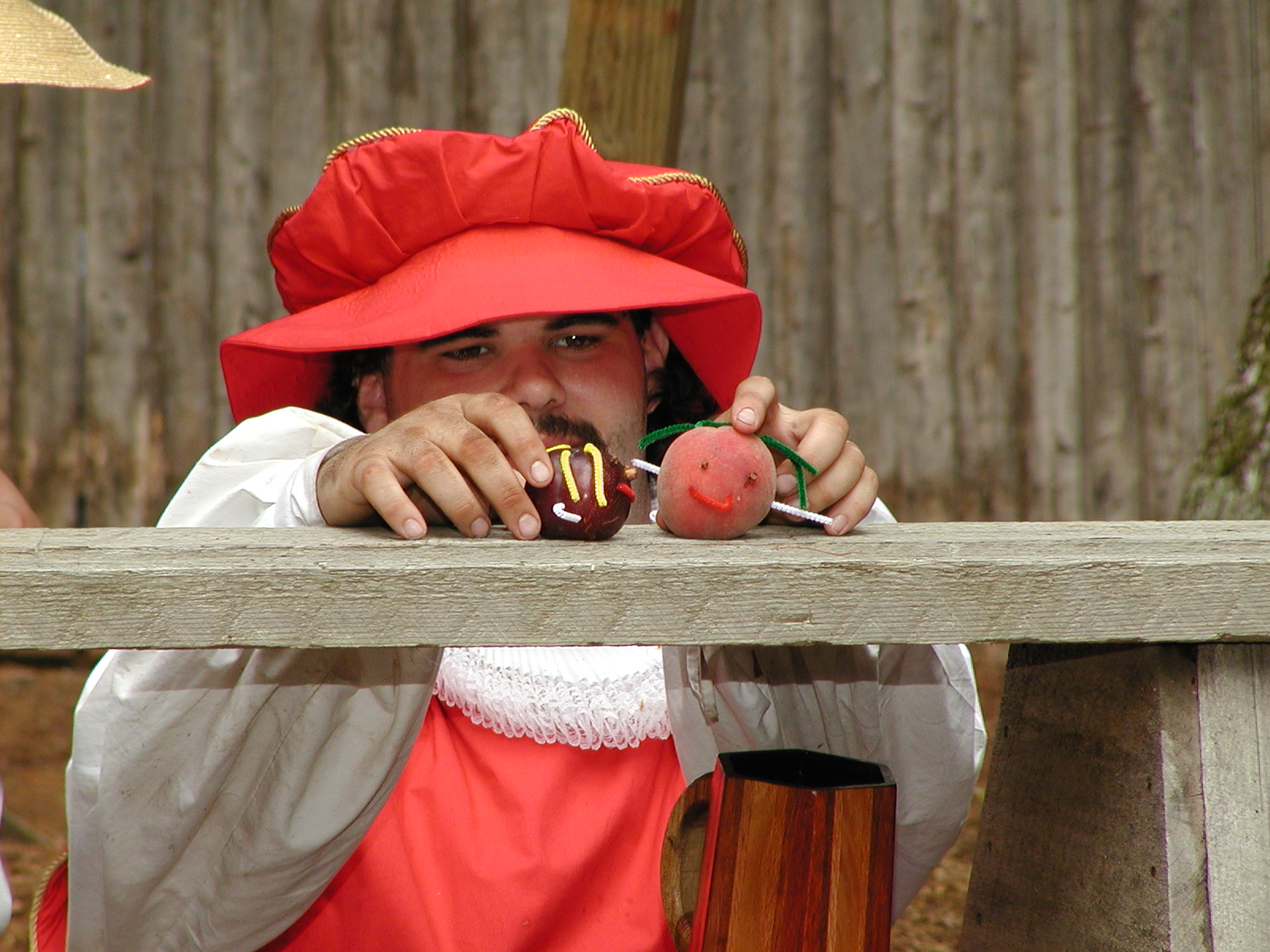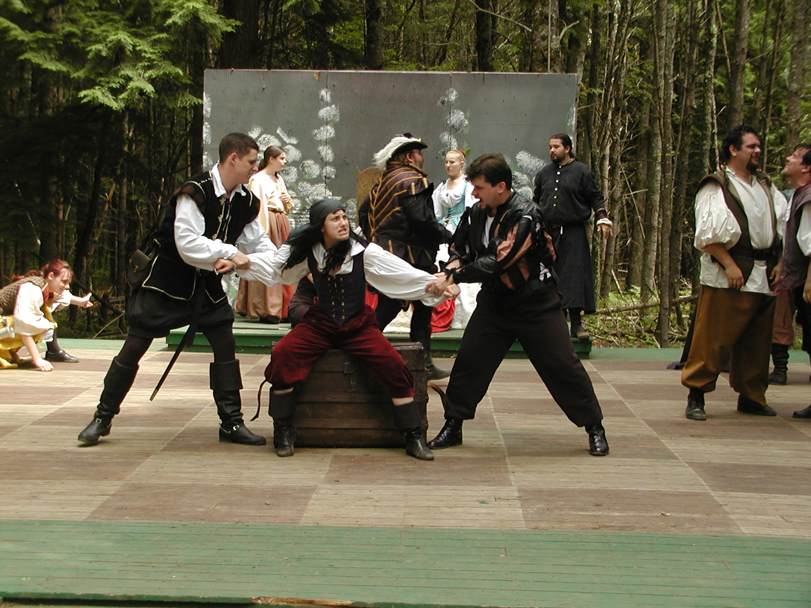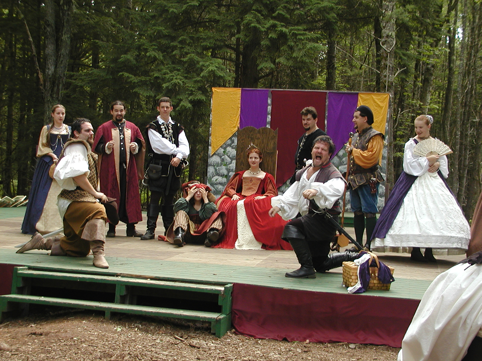 Picture #8: Faire folk Small: 600x823, 87,315 bytes (86K), (html file) Large: 1200x1600, 1,169,592 bytes (1.1M), (html file) Copyright, Michael Meissner 2004, All rights reserved Olympus C-2100UZ camera f/2.8, ISO 100, 1/160 sec, 14.7mm, auto mode, SHQ, sunny, matrix metering 35mm equivalent focal length 82.0mm Extra equipment used: Promaster 5750DX flash Taken by Michael Meissner on July 11, 2004 10:22:57 Last modified on July 14, 2004 at 23:12 This is picture MERF-2004-CAST-02. |