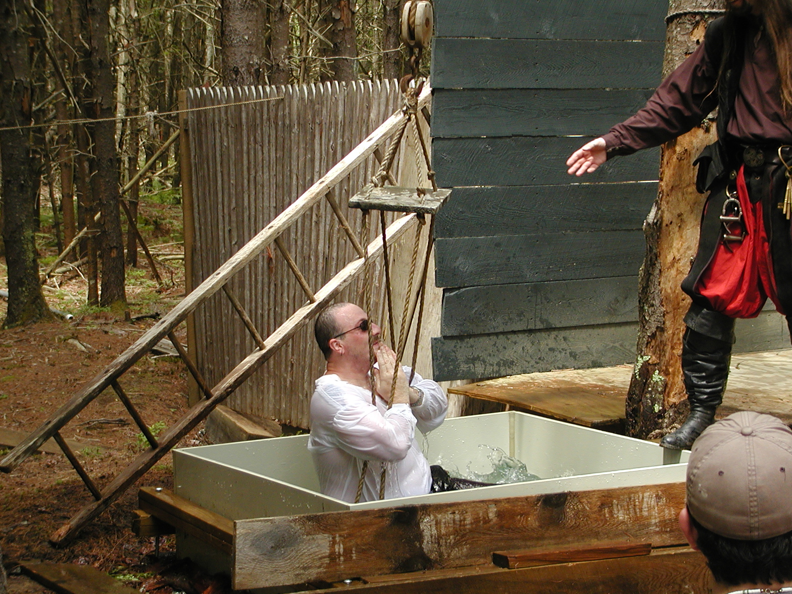 Picture #20: Signing at the wet and slippery (washer wench) show Small: 800x623, 145,769 bytes (143K), (html file) Large: 1600x1200, 1,615,167 bytes (1.5M), (html file) Copyright, Michael Meissner 2004, All rights reserved Olympus C-2100UZ camera f/2.8, ISO 100, 1/60 sec, 7.0mm, auto mode, SHQ, cloudy, matrix metering 35mm equivalent focal length 39.0mm Extra equipment used: Promaster 5750DX flash Taken by Michael Meissner on August 14, 2004 14:36:48 Last modified on August 17, 2004 at 15:58 |
