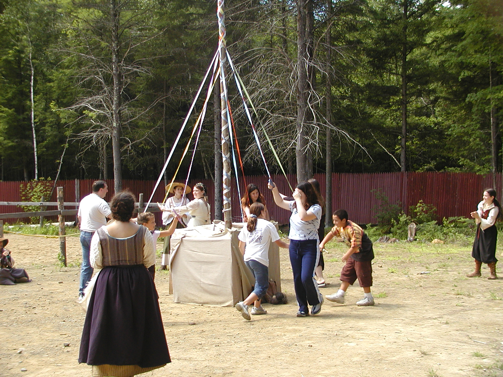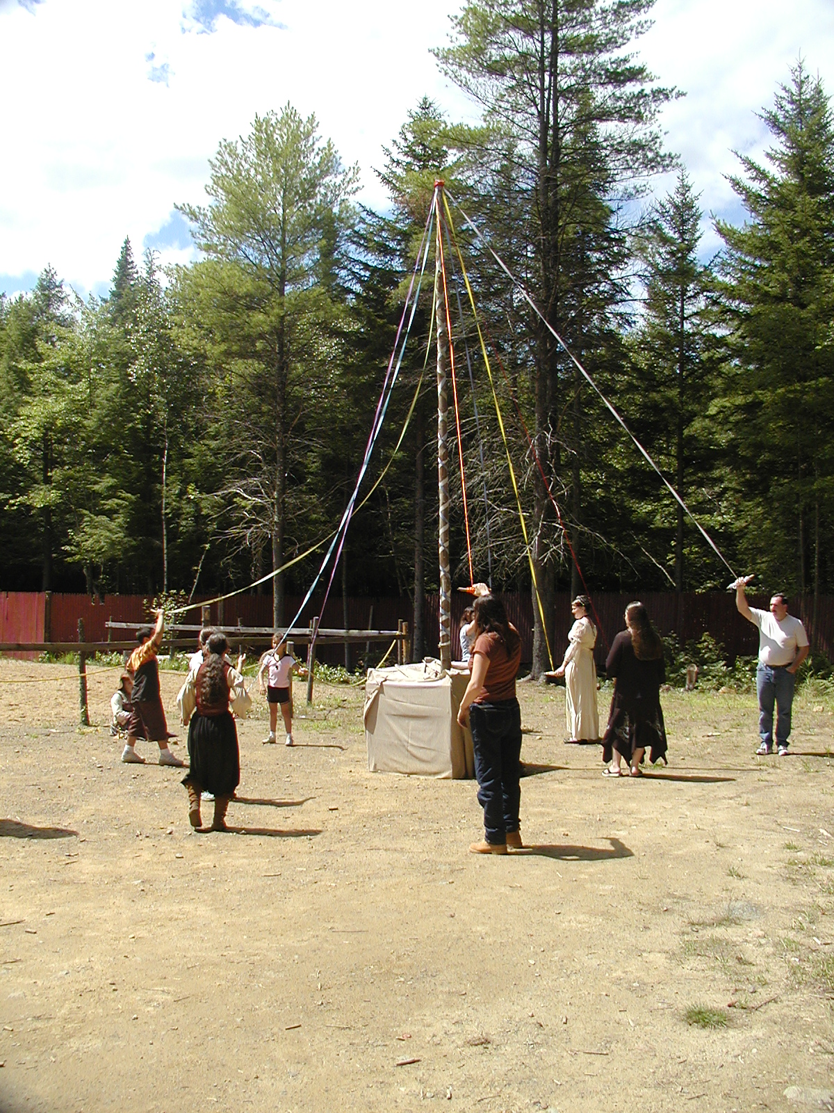 Picture #5: Maypole #5 Small: 800x623, 137,404 bytes (135K), (html file) Large: 1600x1200, 1,334,572 bytes (1.3M), (html file) Copyright, Michael Meissner 2004, All rights reserved Olympus C-2100UZ camera f/2.8, ISO 100, 1/125 sec, 10.7mm, auto mode, SHQ, cloudy, matrix metering 35mm equivalent focal length 59.0mm Extra equipment used: Polarizer Taken by Michael Meissner on August 08, 2004 13:42:35 Last modified on September 29, 2004 at 08:40 Shutter speed of 1/125 or 1/250 may indicate use of flash |
