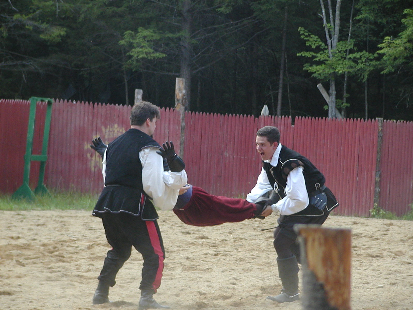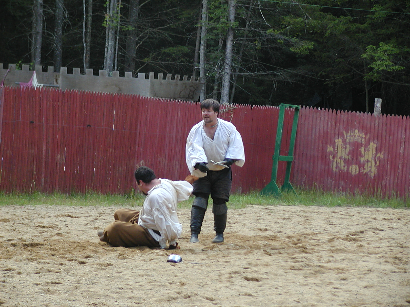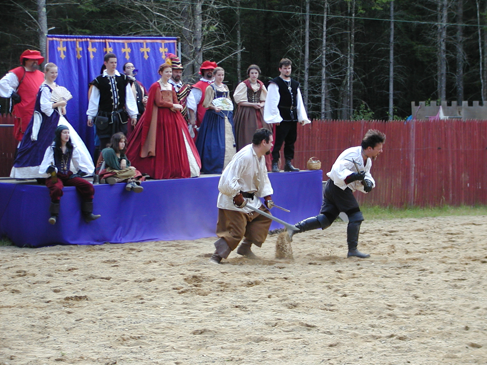Picture #1: Peasant Jousting at the Royal Pagent Small: 800x623, 119,497 bytes (117K), (html file) Large: 1600x1200, 1,226,566 bytes (1.2M), (html file) Copyright, Michael Meissner 2004, All rights reserved Olympus C-2100UZ camera f/2.8, ISO 100, 1/250 sec, 18.6mm, auto mode, SHQ, sunny, matrix metering 35mm equivalent focal length 103.0mm Taken by Michael Meissner on July 17, 2004 16:15:21 Last modified on September 29, 2004 at 17:46 Shutter speed of 1/125 or 1/250 may indicate use of flash |