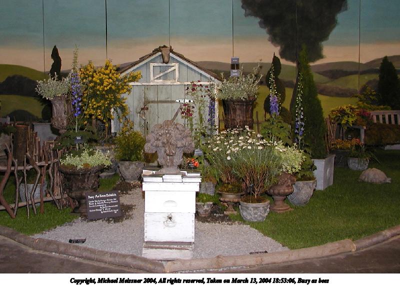 Picture #1: Busy as bees 800x570, 93,880 bytes (92K), (html file) Copyright, Michael Meissner 2004, All rights reserved Olympus C-2100UZ camera f/2.8, ISO 100, 1/250 sec, 8.4mm, shutter priority, SHQ, matrix metering 35mm equivalent focal length 47.0mm Taken by Michael Meissner on March 13, 2004 18:53:06 Last modified on March 28, 2004 at 20:40 Shutter speed of 1/125 or 1/250 may indicate use of flash |