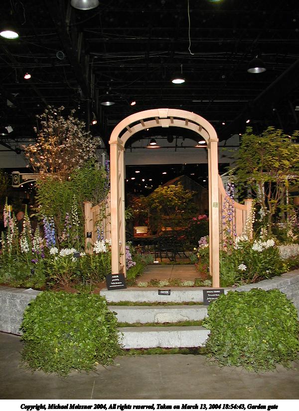 Picture #3: Garden gate 600x823, 122,557 bytes (120K), (html file) Copyright, Michael Meissner 2004, All rights reserved Olympus C-2100UZ camera f/2.8, ISO 100, 1/125 sec, 7.0mm, shutter priority, SHQ, cloudy, matrix metering 35mm equivalent focal length 39.0mm Taken by Michael Meissner on March 13, 2004 18:54:43 Last modified on March 28, 2004 at 20:41 Shutter speed of 1/125 or 1/250 may indicate use of flash |